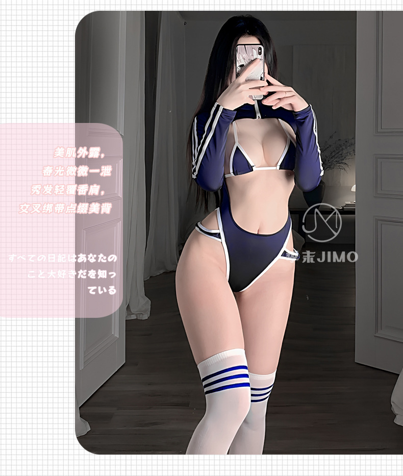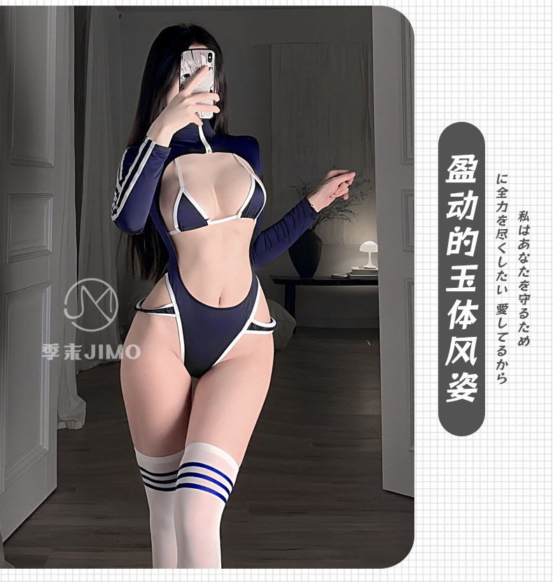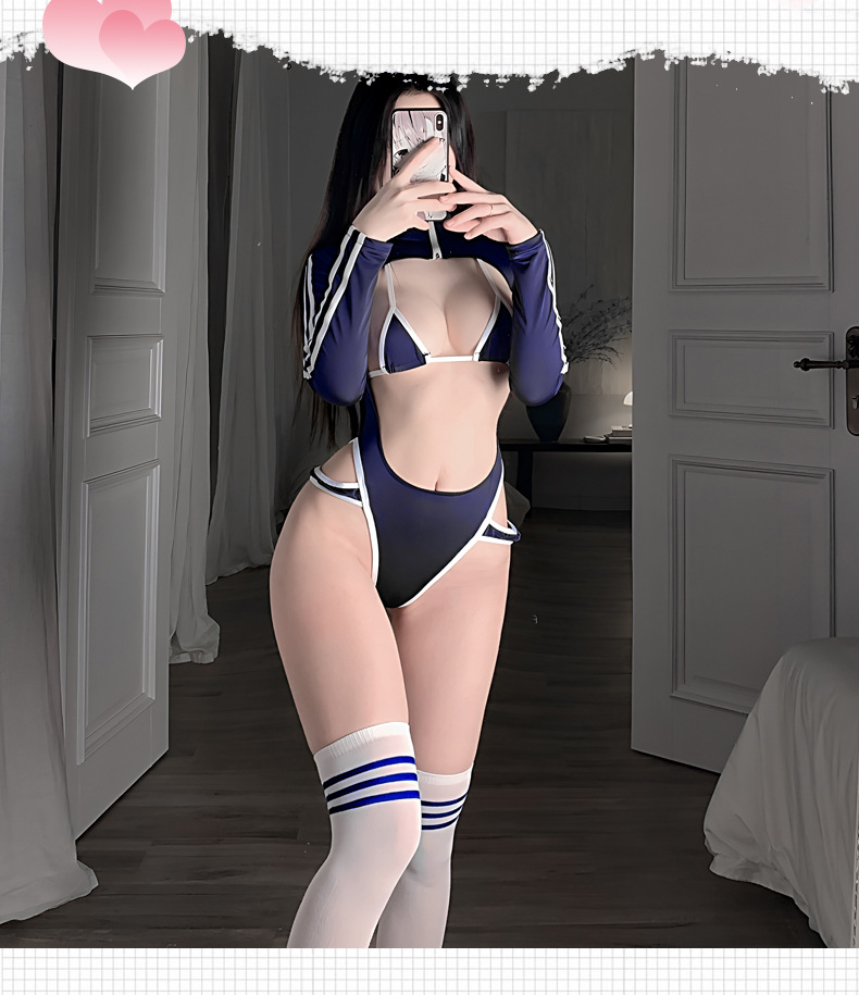 Lingerie seksi gadis seksi Jepang gaya kuliah membentuk Tubuh pakaian dalam satu potong seksi belahan tinggi pakaian senam ujung terbuka untuk wanita