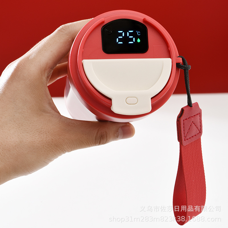 咖啡杯智能测温保温杯高颜值316不锈钢咖啡杯提绳便携手提杯