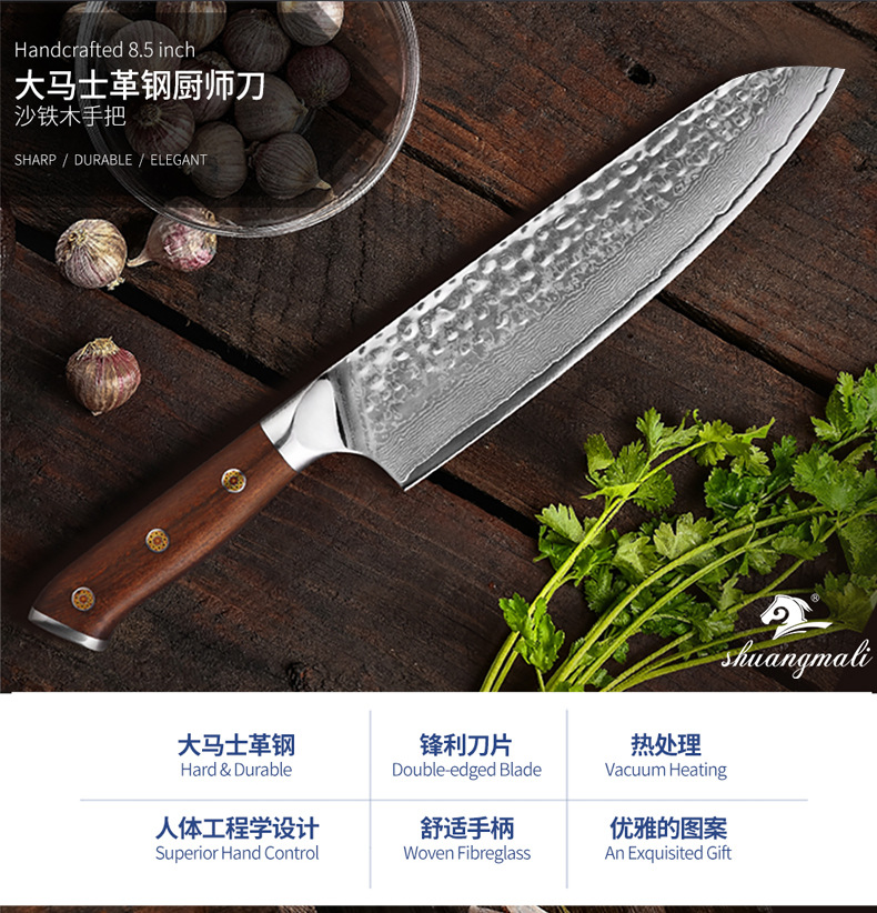 Pisau baja Damaskus 8 inci pasir besi pegangan kayu ruang memasak pisau koki lintas batas eksklusif untuk persetujuan