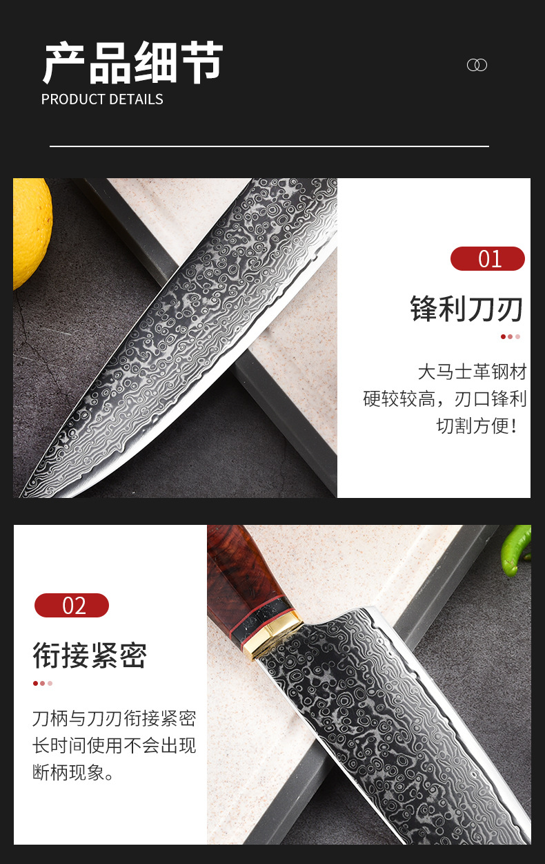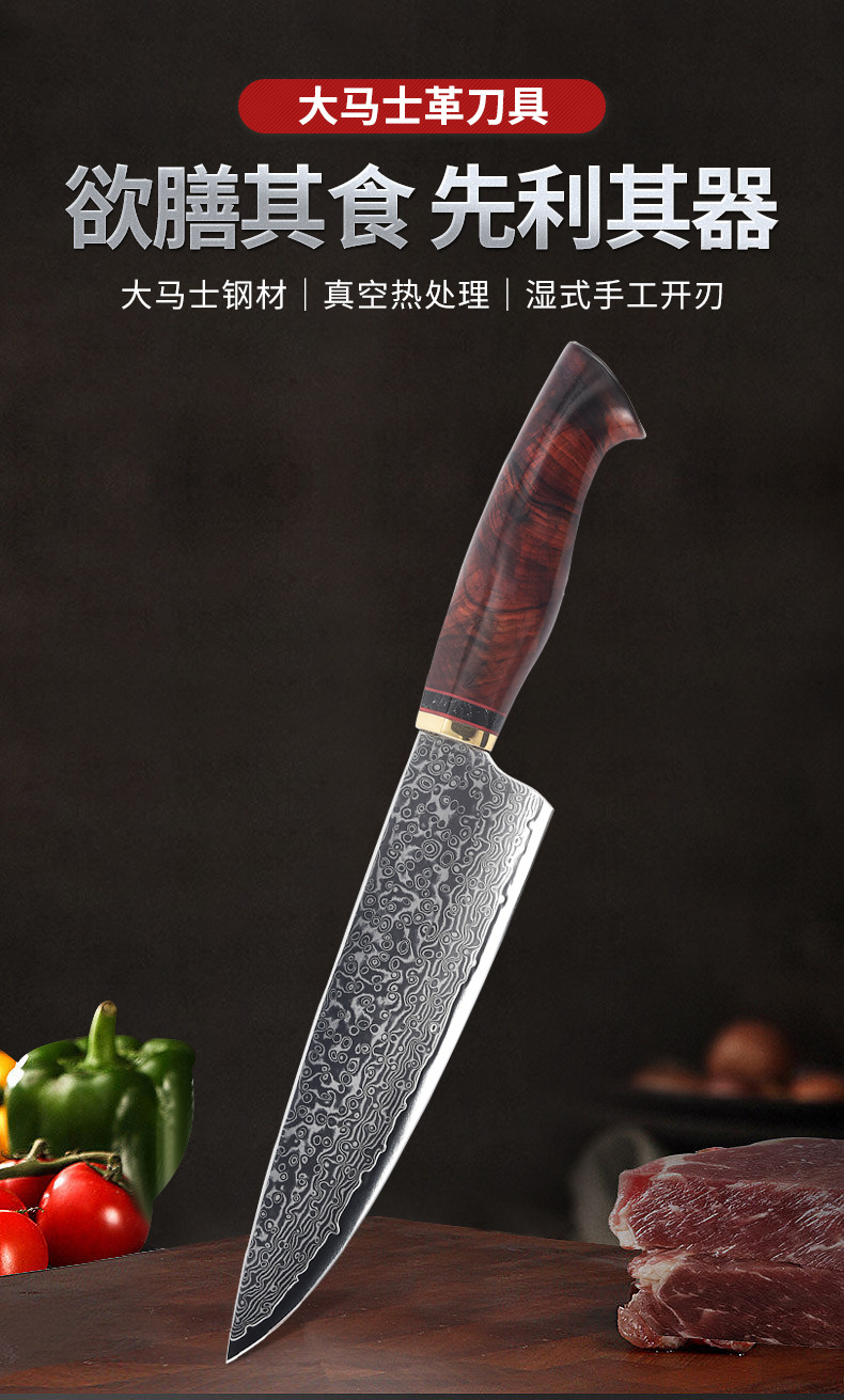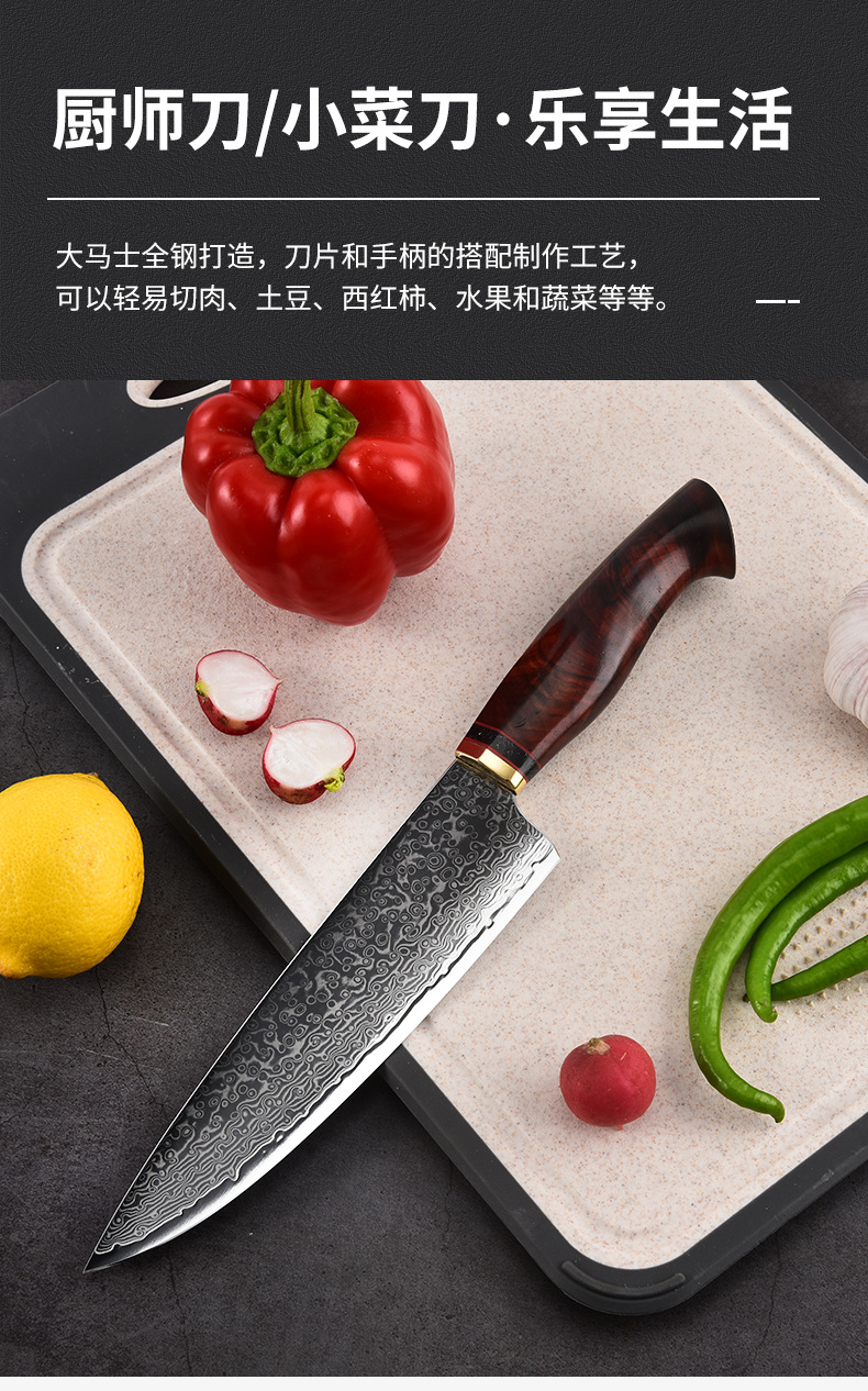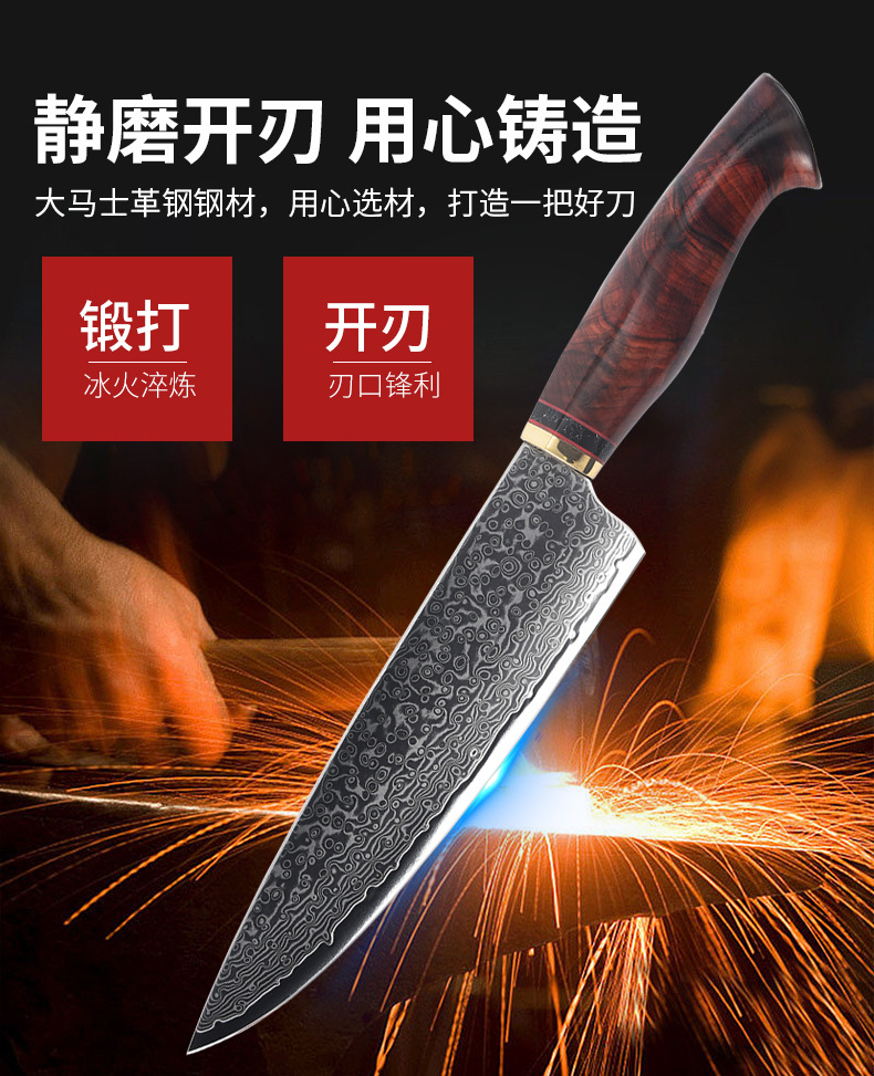 批发大马士革钢厨师刀鱼鳞纹厨刀锋利切菜刀切肉刀不锈钢菜刀厂家