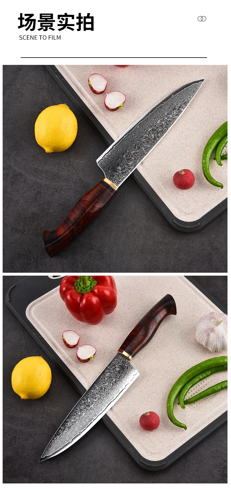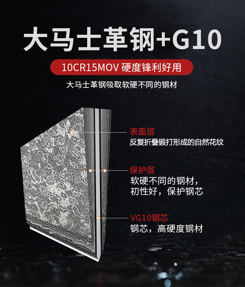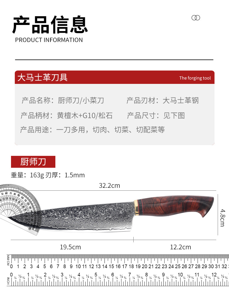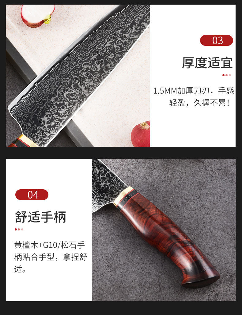 批发大马士革钢厨师刀鱼鳞纹厨刀锋利切菜刀切肉刀不锈钢菜刀厂家