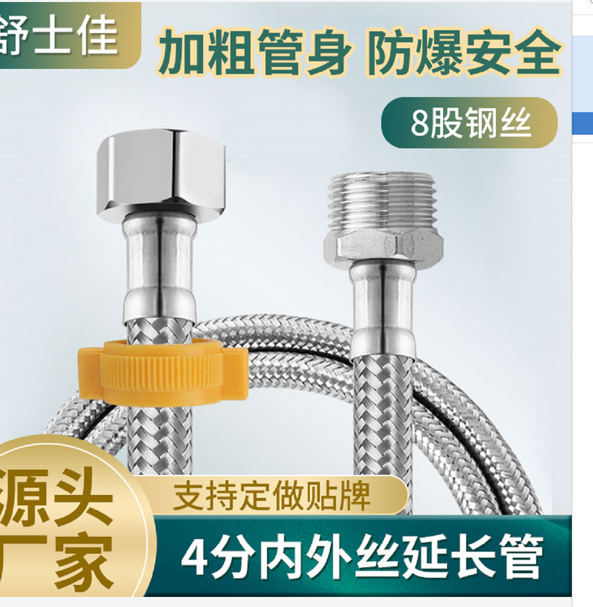 马桶热水器冷热进水管连接头304不锈钢软管内外丝加长软管延长管
