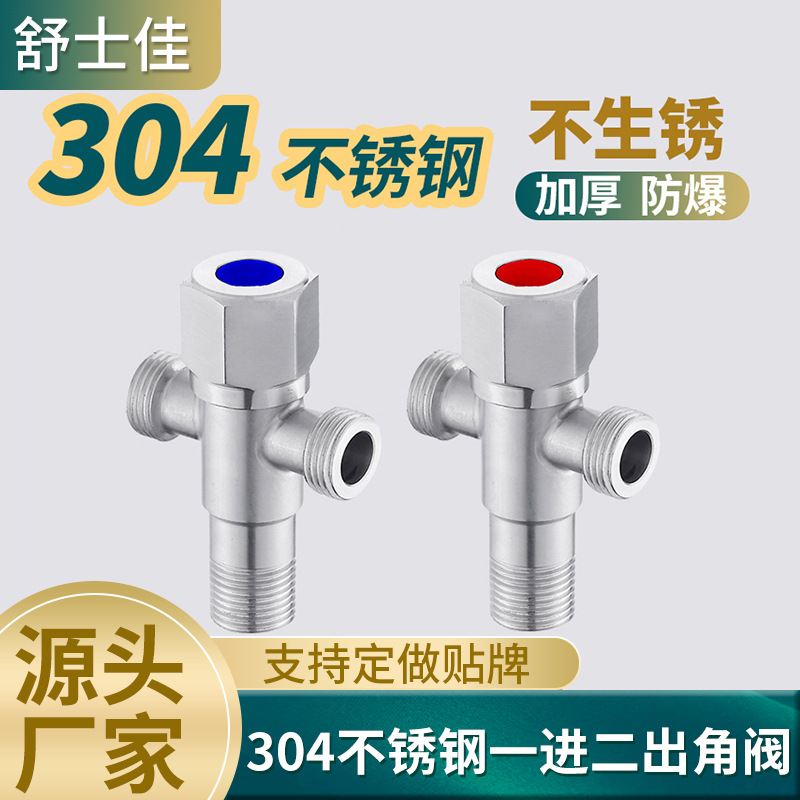 304不锈钢三角阀冷热水一进一出加厚防爆4分热水器止水阀