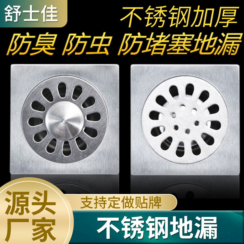 不锈钢地漏加厚防臭大排量浴室方形防虫卫生间厨房阳台洗衣机可用
