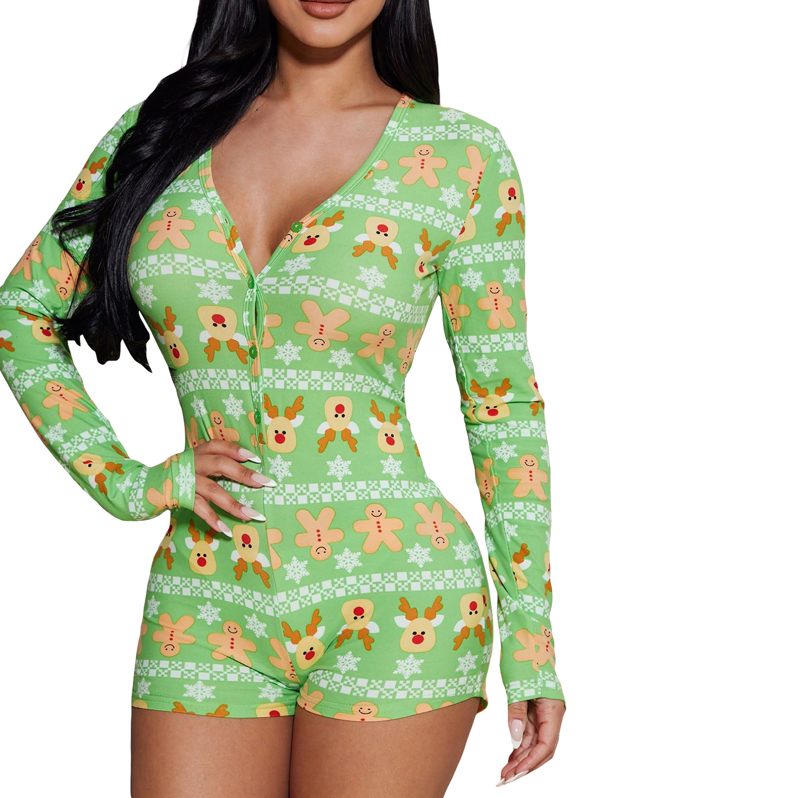 Kardigan lengan panjang wanita, jumpsuit wanita Eropa dan Amerika baru Gambar Natal 2023