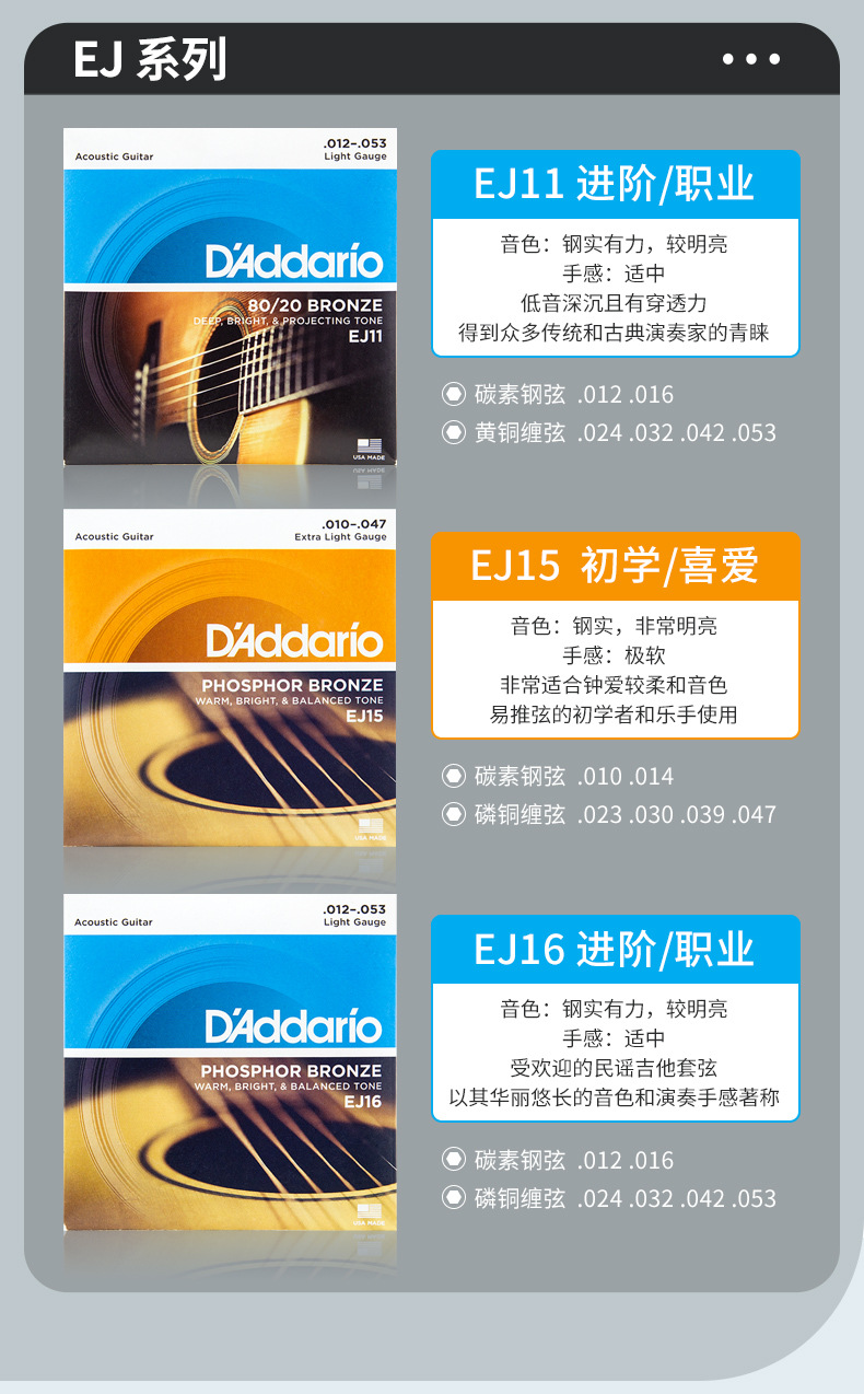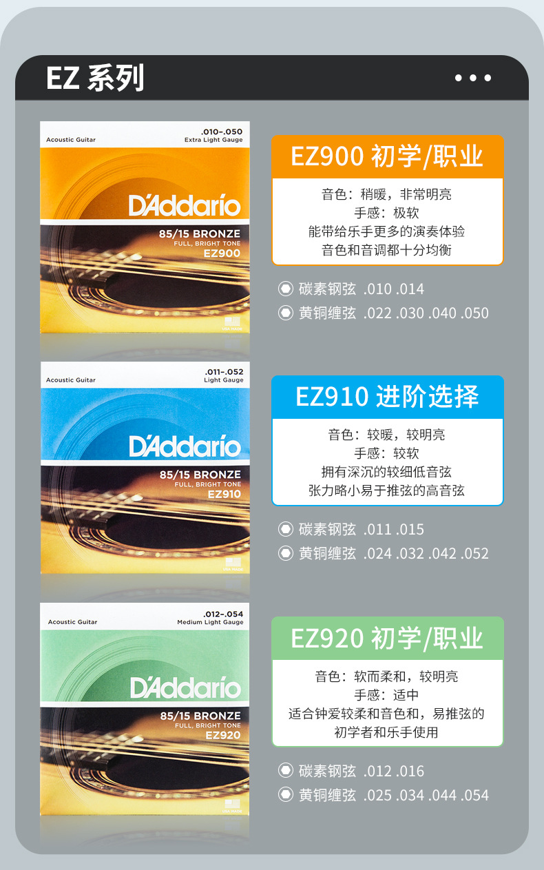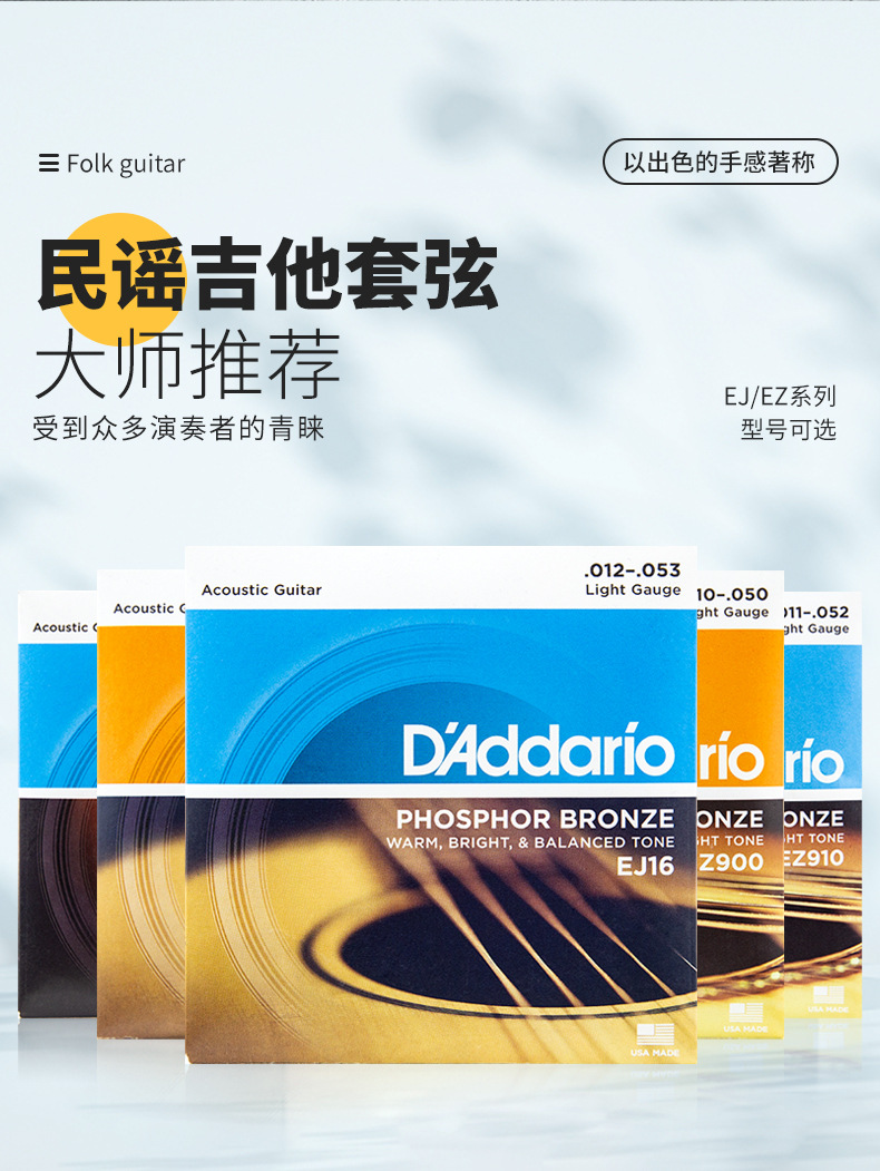 Senar gitar folk Dario buatan Amerika EZ900 910 EJ16 15 senar gitar kayu senar set senar gitar
