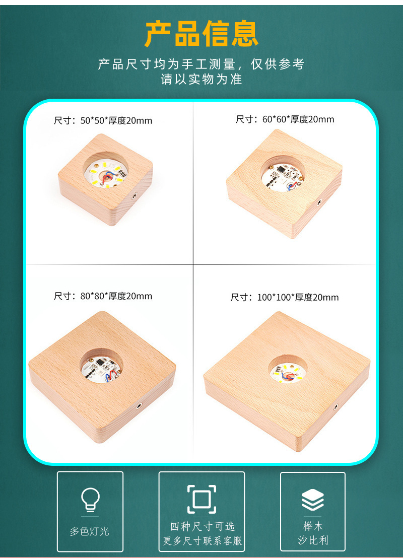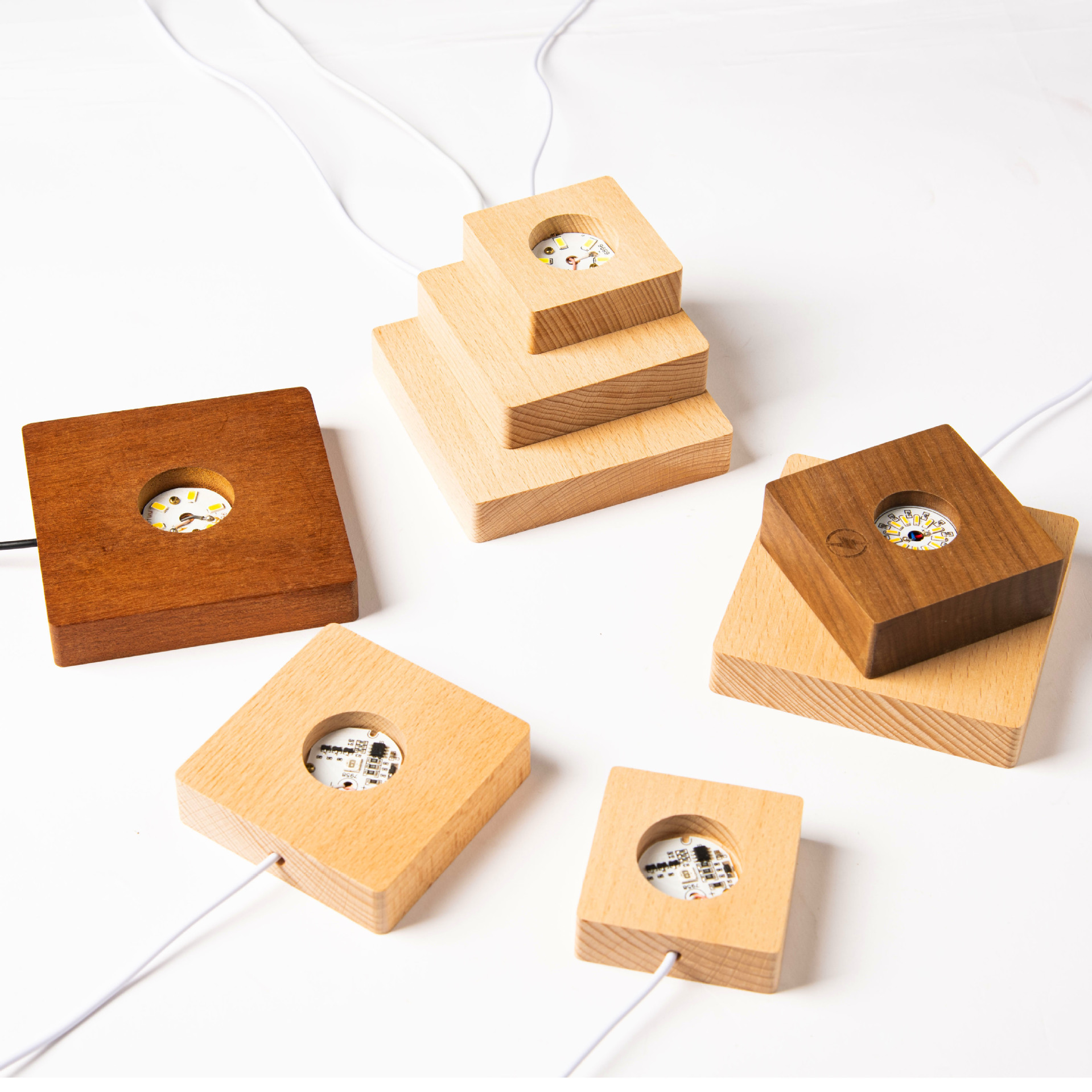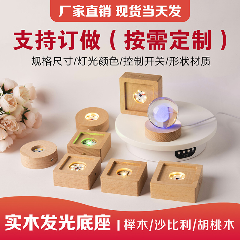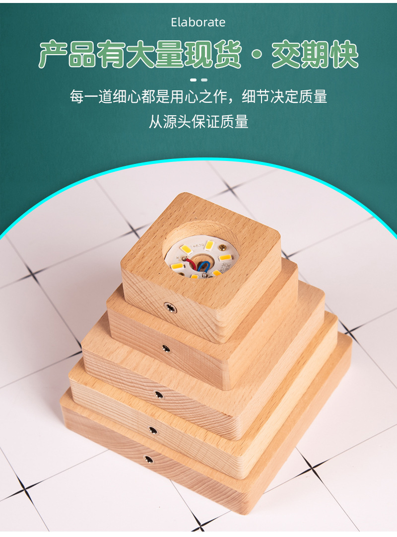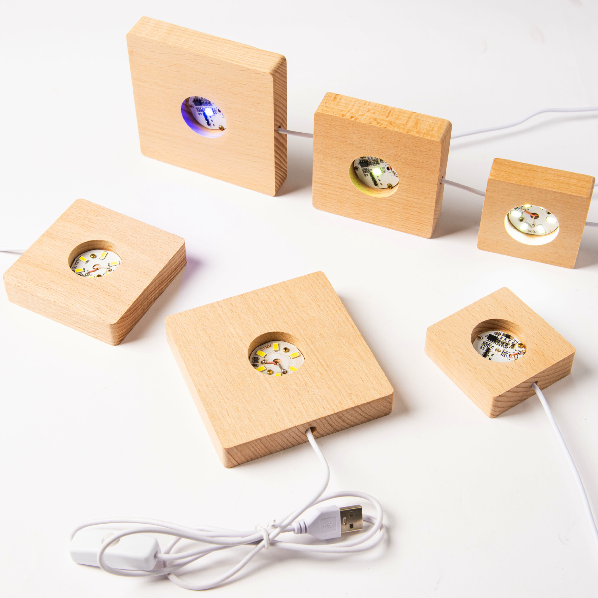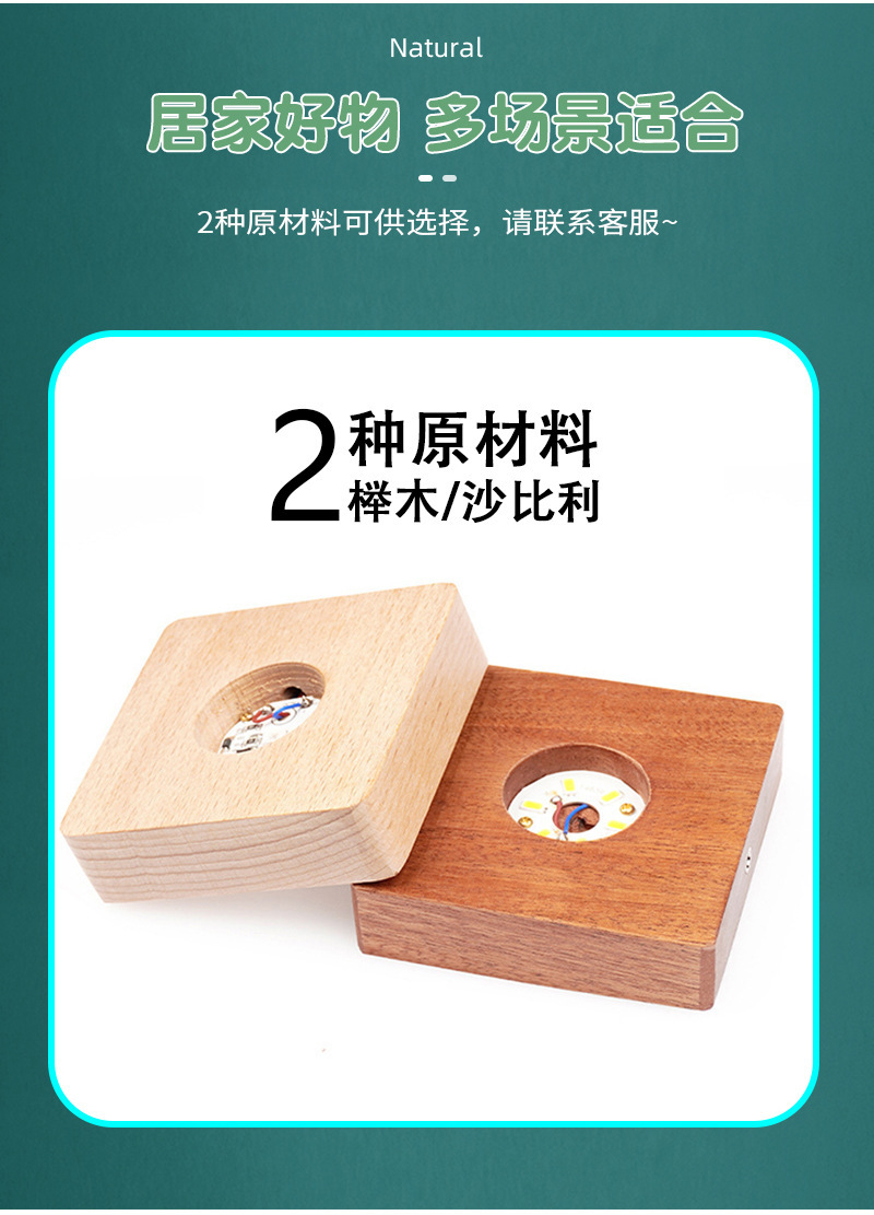 Lampu malam LED kayu padat Beech dasar bercahaya kristal stok lampu pemegang produk kayu Dekorasi Grosir Pabrik