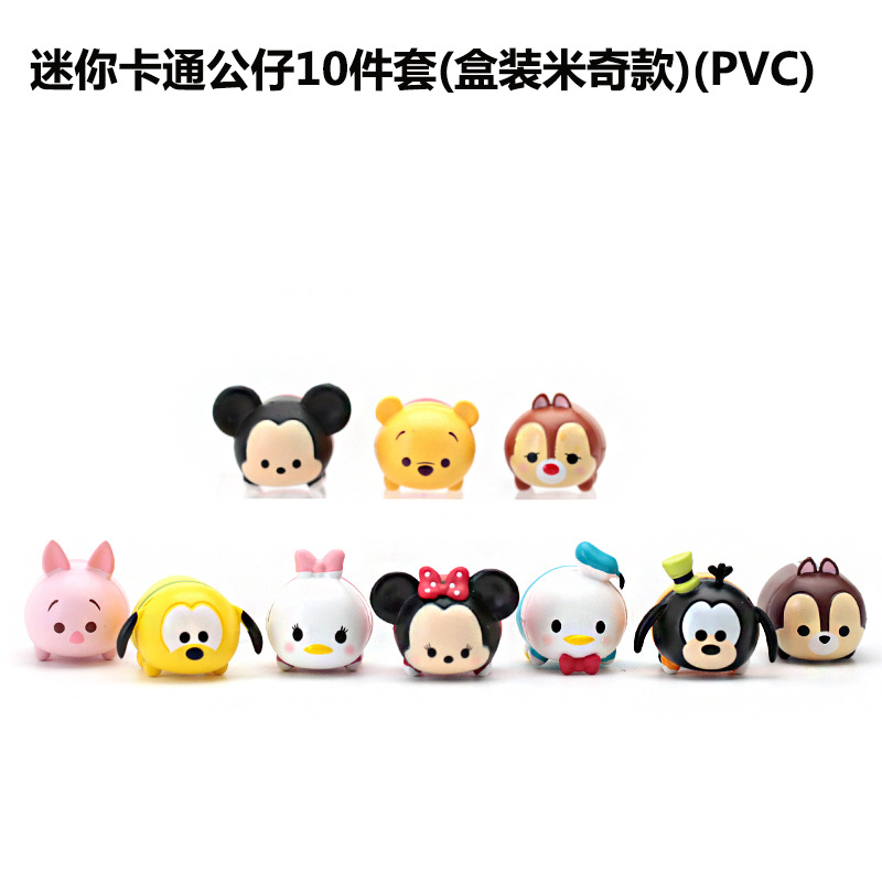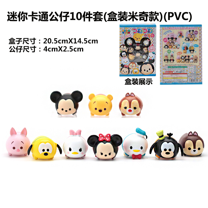 Jengle tsum tsum 10 mainan dekorasi boneka, kotak Mickey Minnie Donald bebek kulit babi Pooh