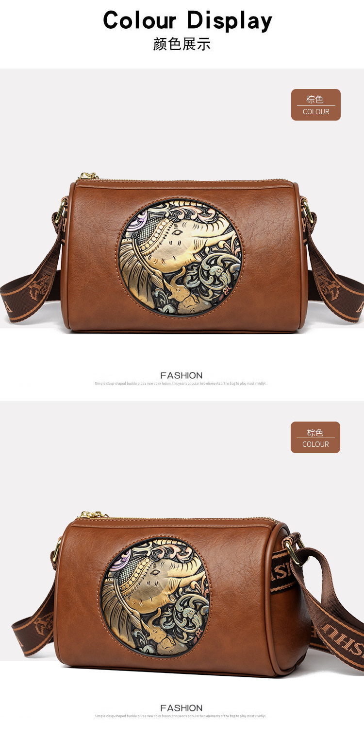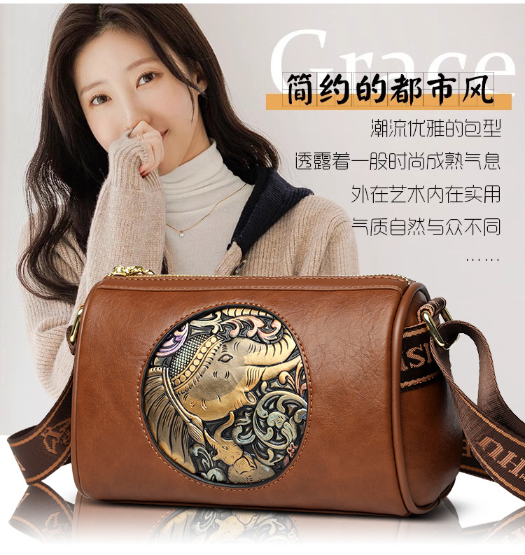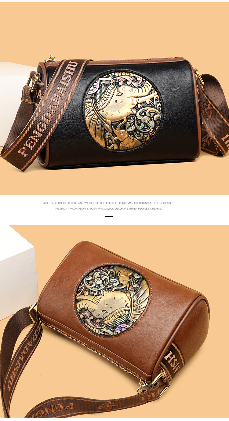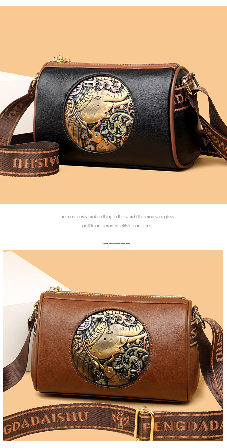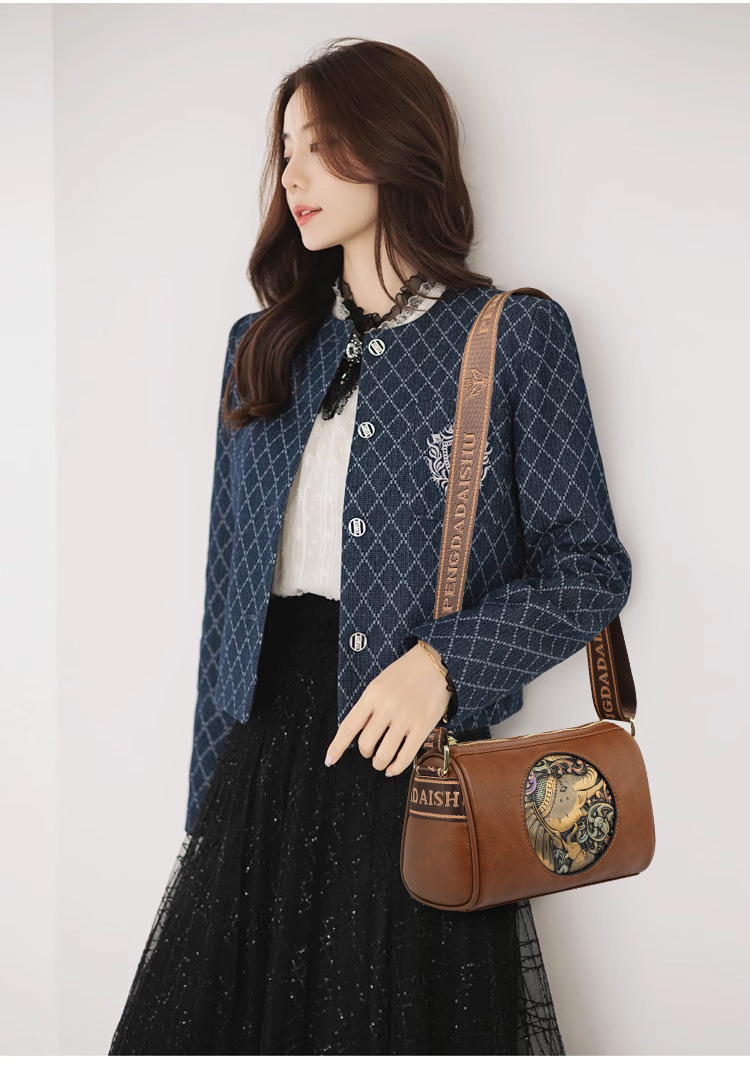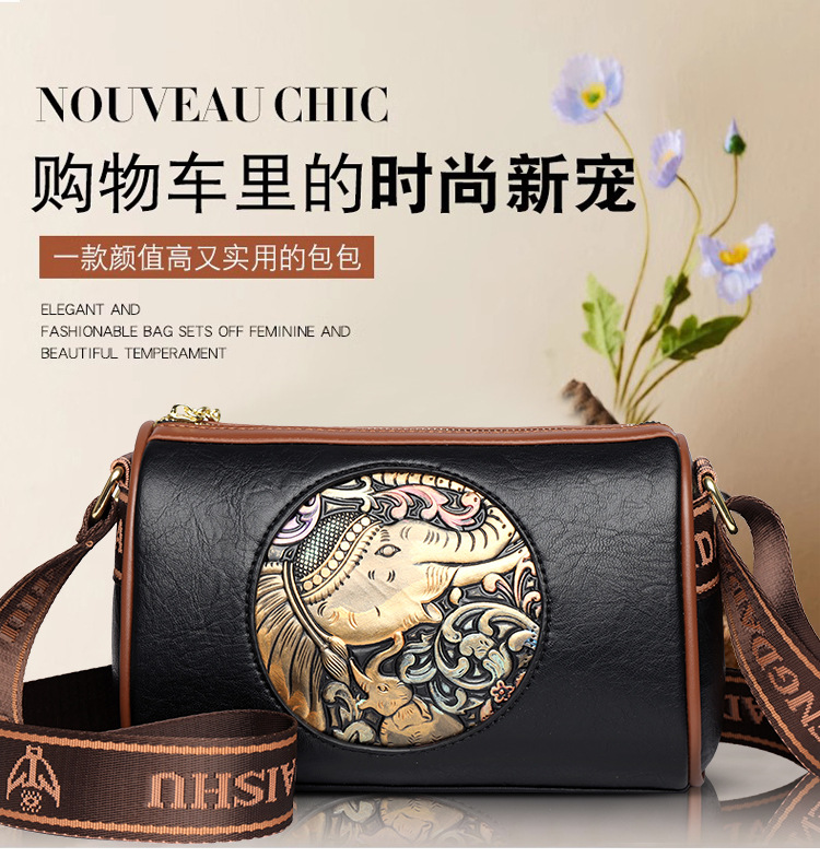 Tas selempang modis untuk wanita, tas kurir Motif timbul bergaya nasional artistik baru, tas bahu rasa tinggi, tas kurir elegan untuk wanita