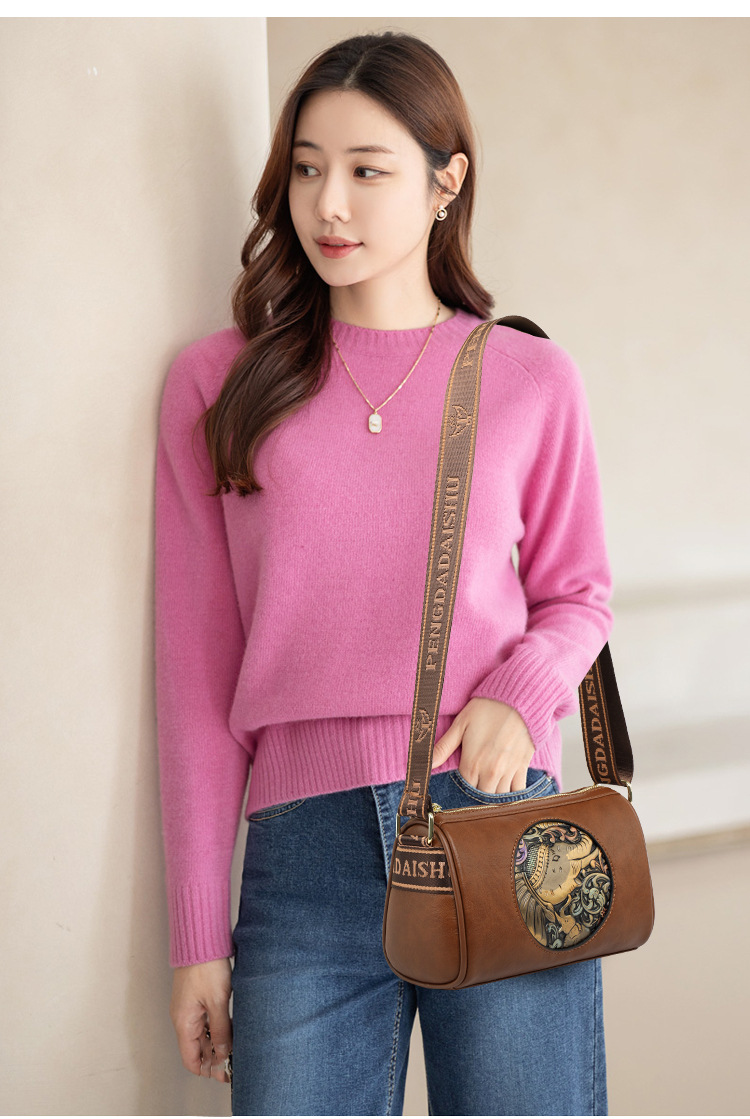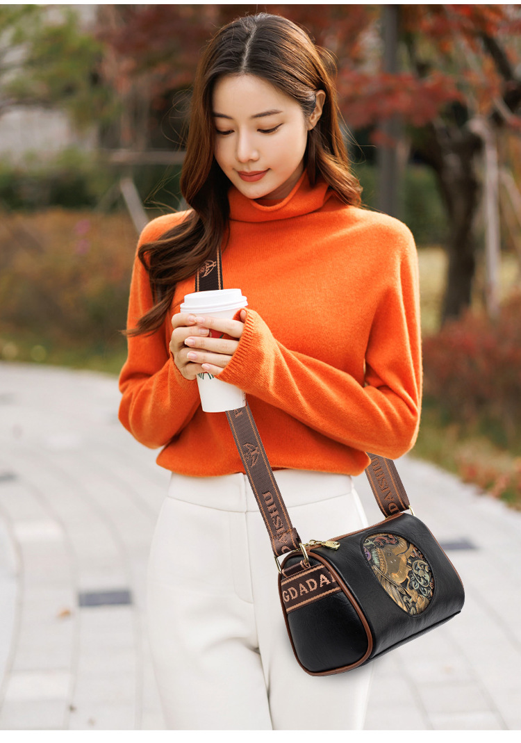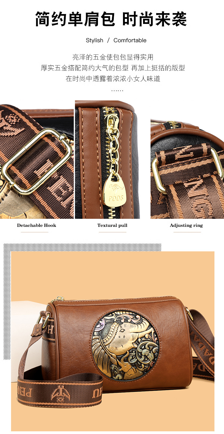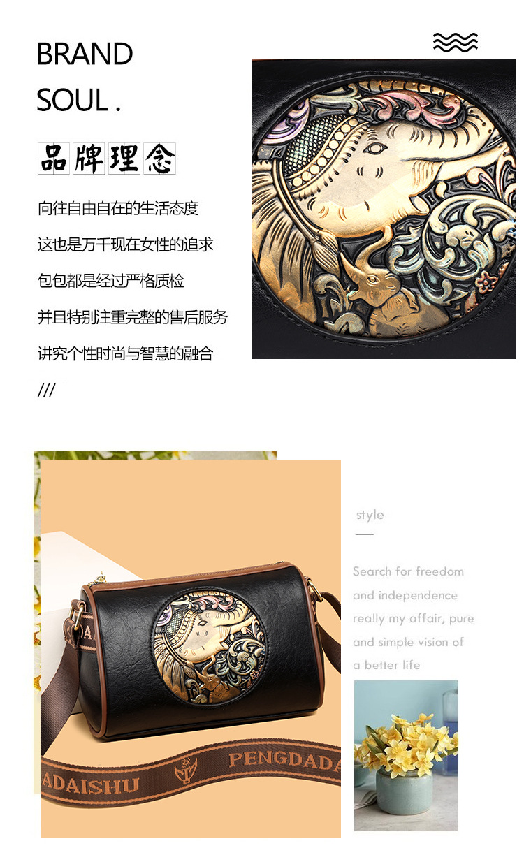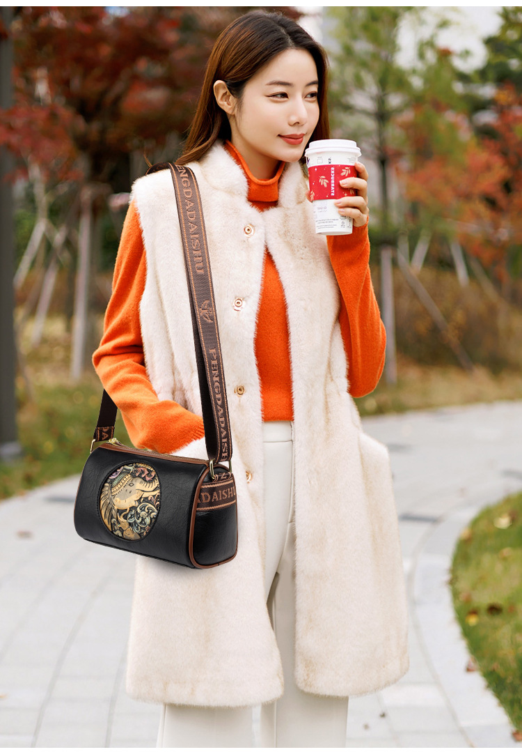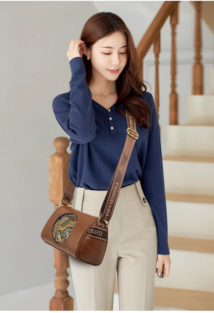Tas selempang modis untuk wanita, tas kurir Motif timbul bergaya nasional artistik baru, tas bahu rasa tinggi, tas kurir elegan untuk wanita