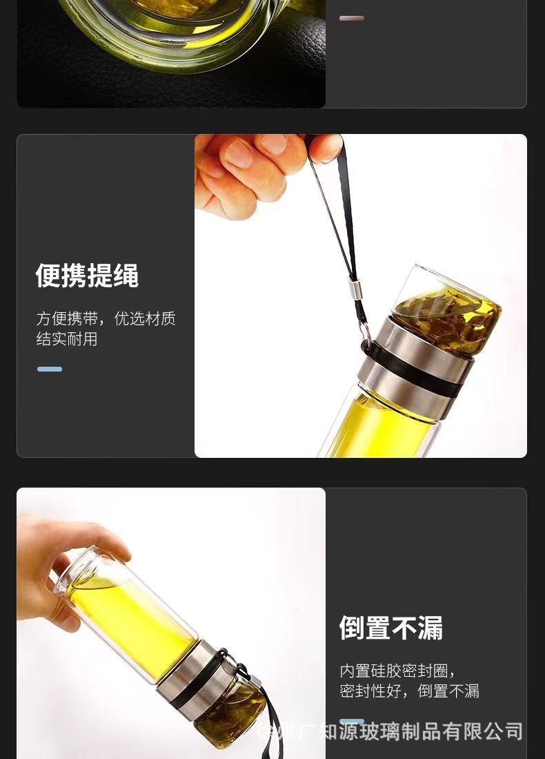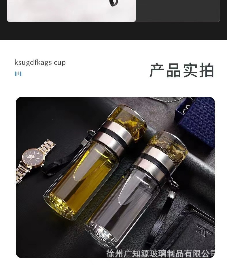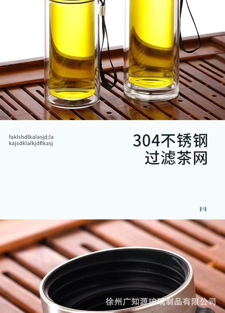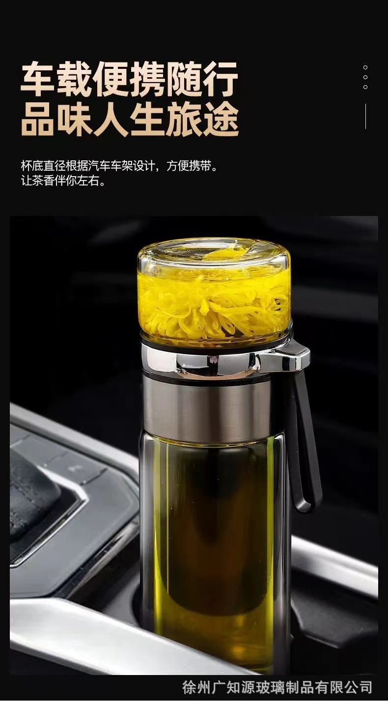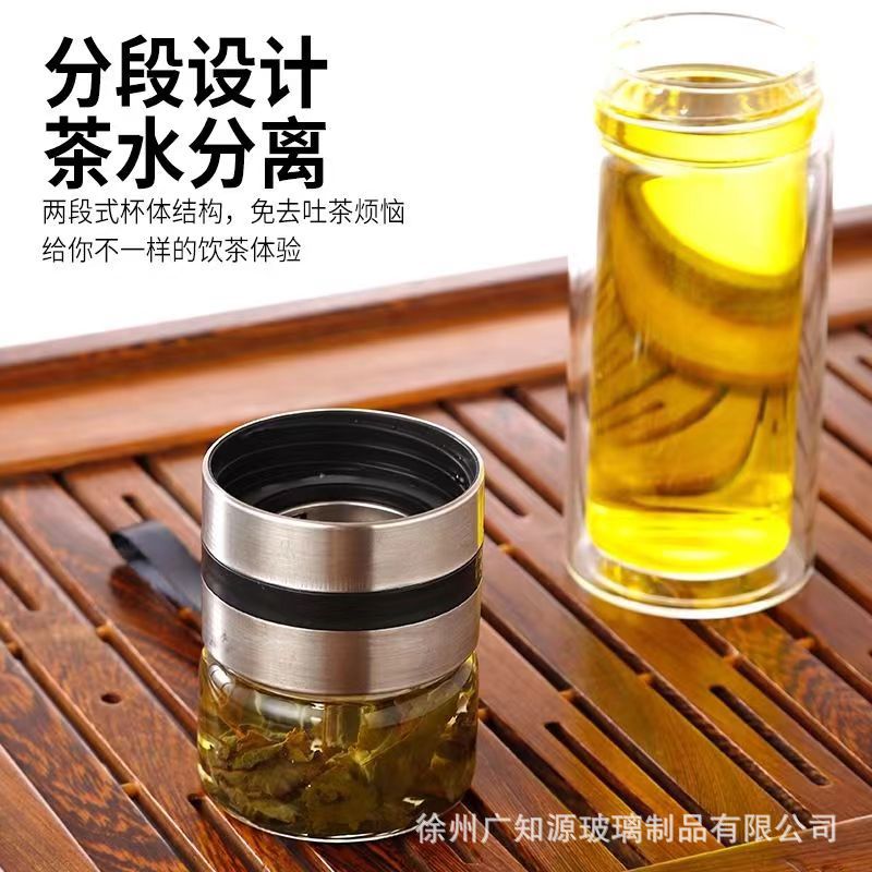 茶水分离水杯便携杯子礼品广告茶杯批发泡茶师商务双层保温玻璃杯