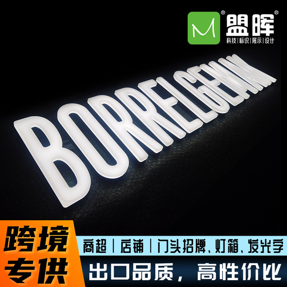 跨境led亚克力不锈钢面发光字门头招牌迷你背发光电镀字INS霓虹灯