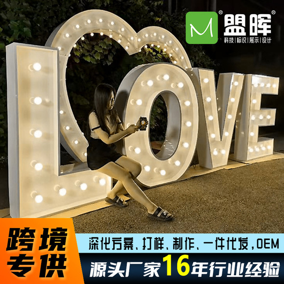 盟晖® 跨境专供led不锈钢造型球泡字点发光字婚礼生日商业场景
