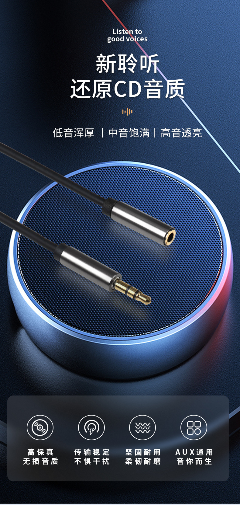 Kabel audio stereo AUX3.5 mm langsung kabel ekstensi audio putih jantan ke publik kabel audio ponsel