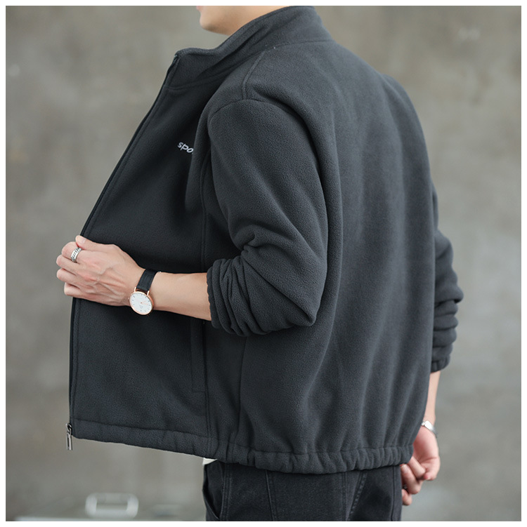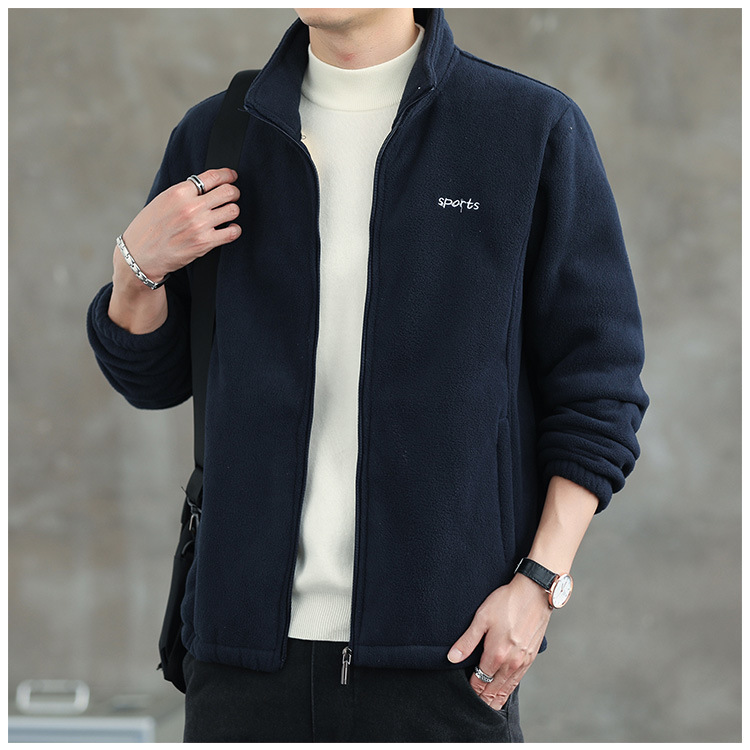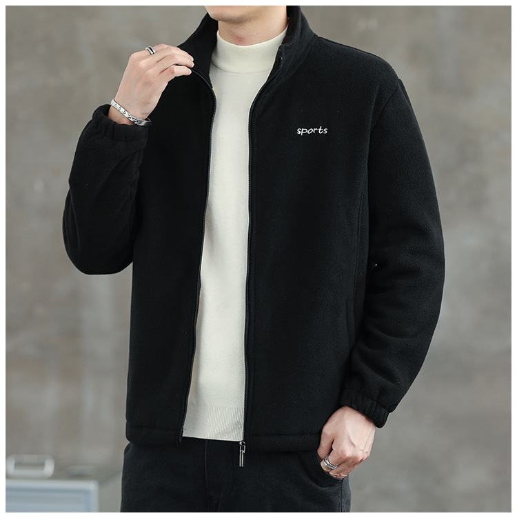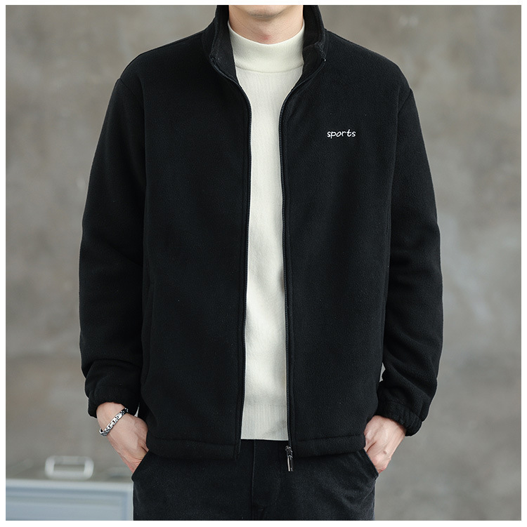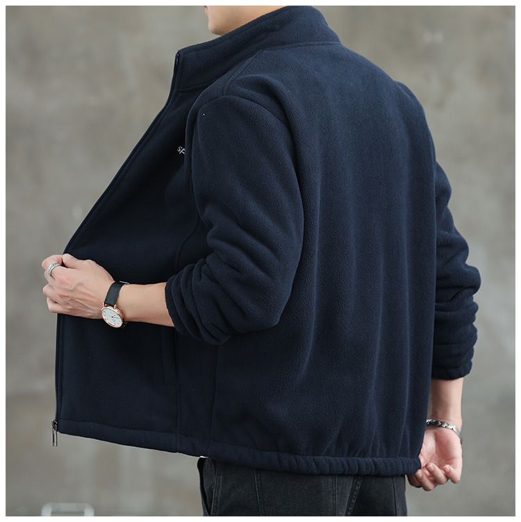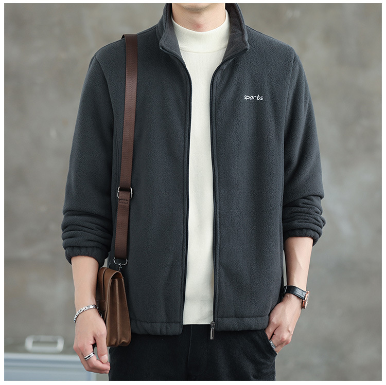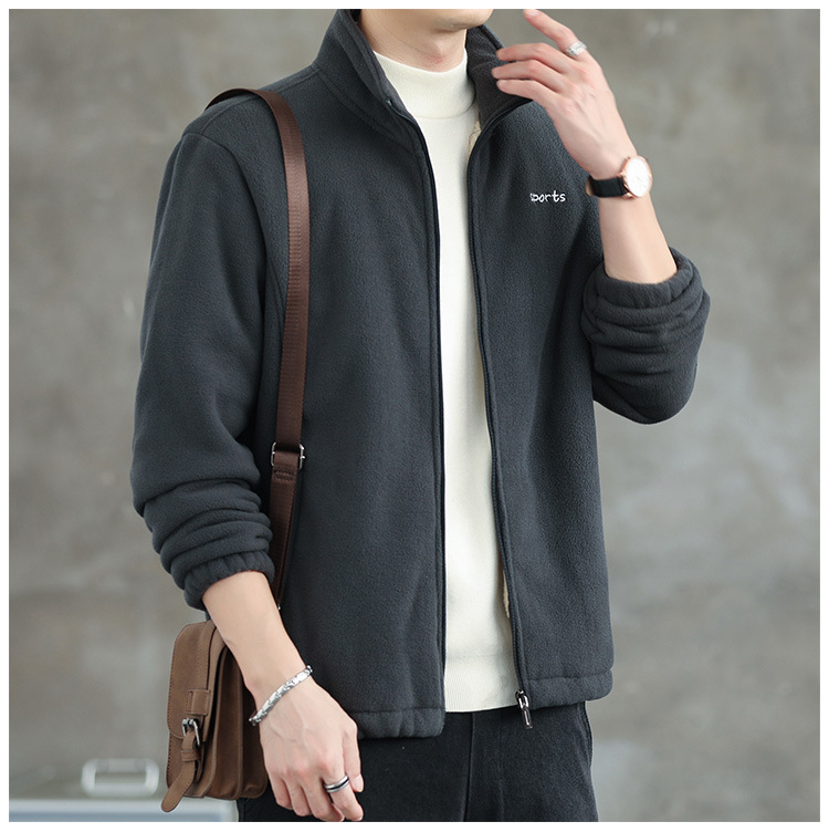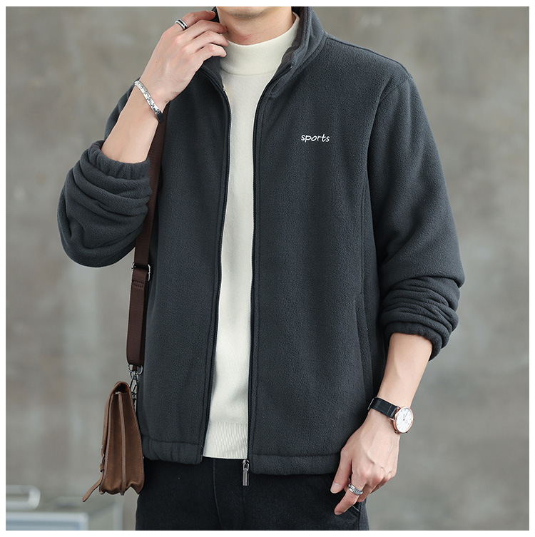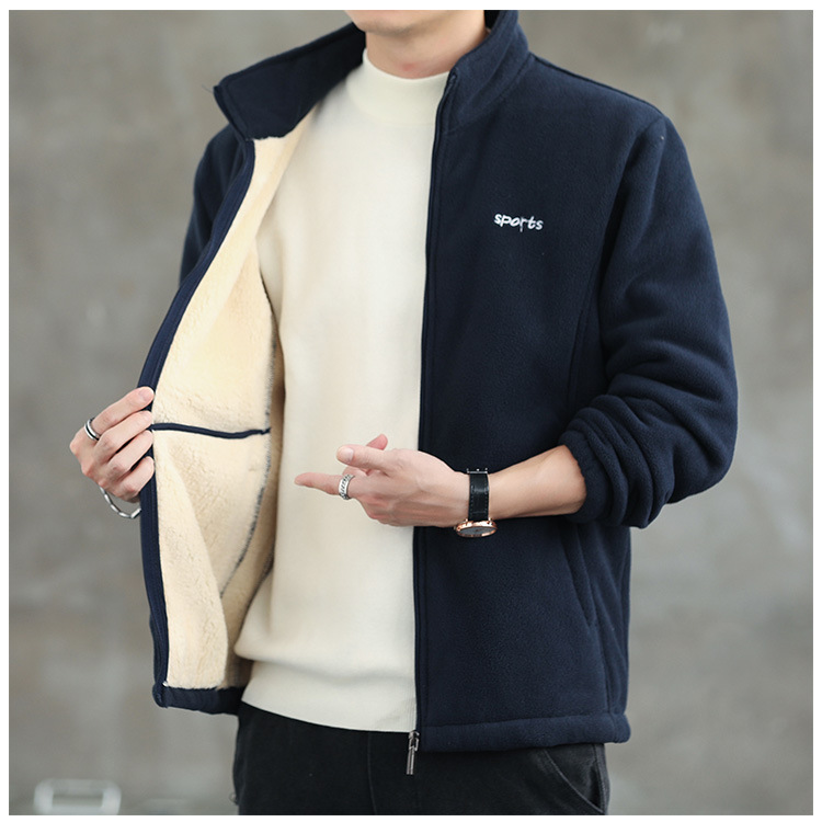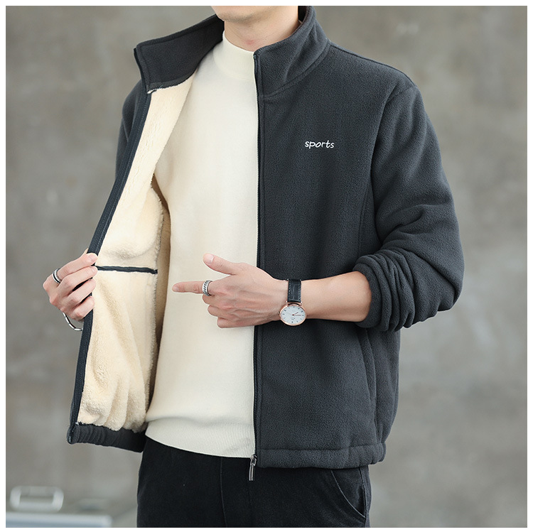 Jaket bulu Polar pria, atasan hangat wol domba serba guna Musim Semi dan Gugur musim dingin kerah berdiri