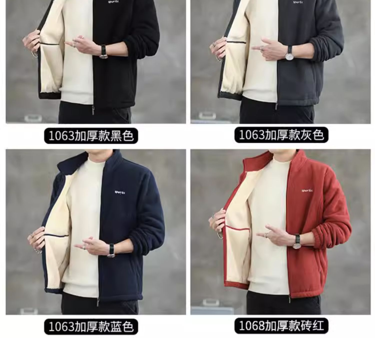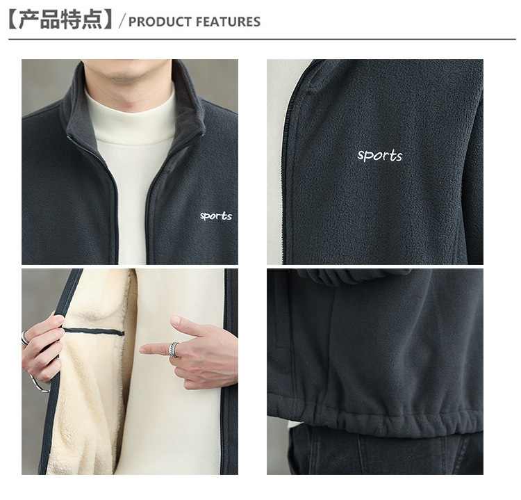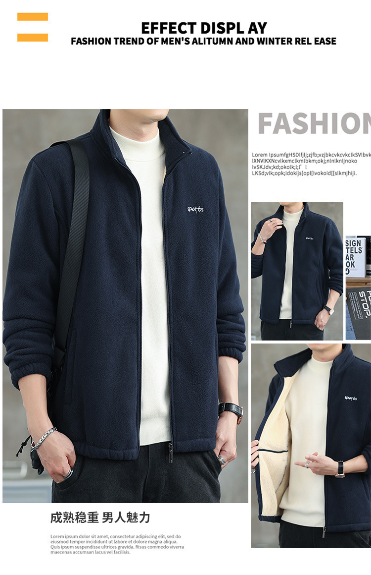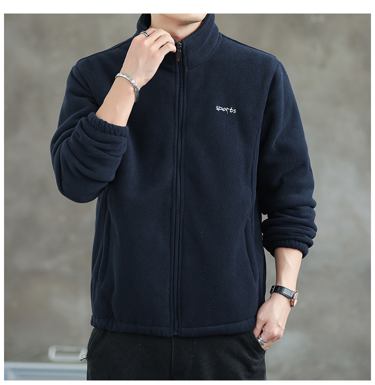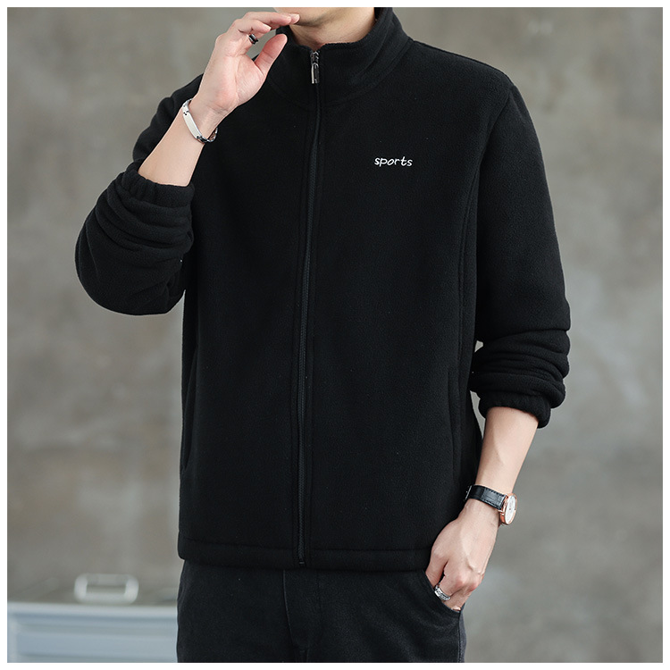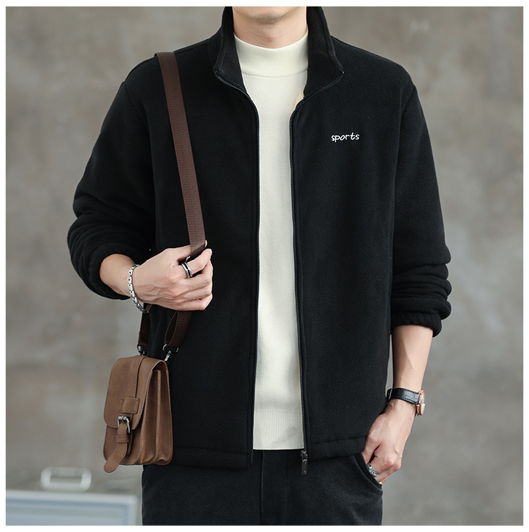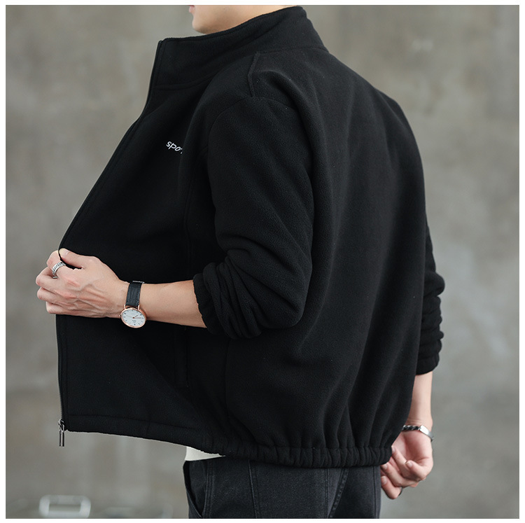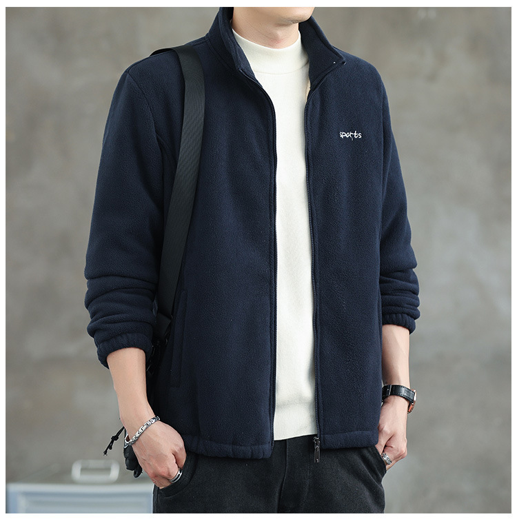 Jaket bulu Polar pria, atasan hangat wol domba serba guna Musim Semi dan Gugur musim dingin kerah berdiri