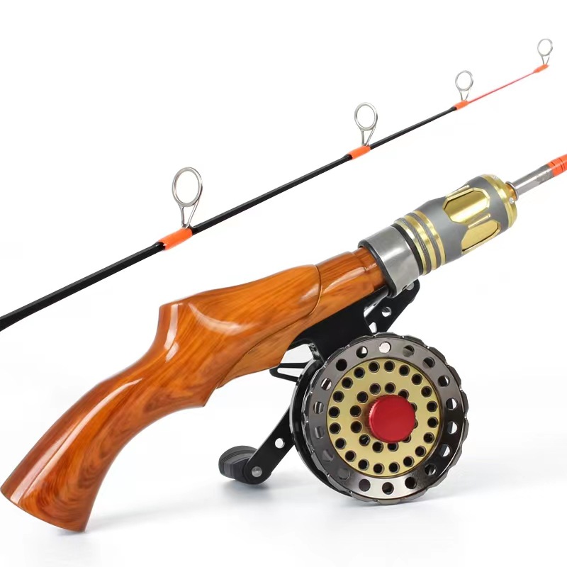 Tongkat pancing Luya, joran pancing mata datar ekor es portabel kecil untuk memancing di laut musim dingin