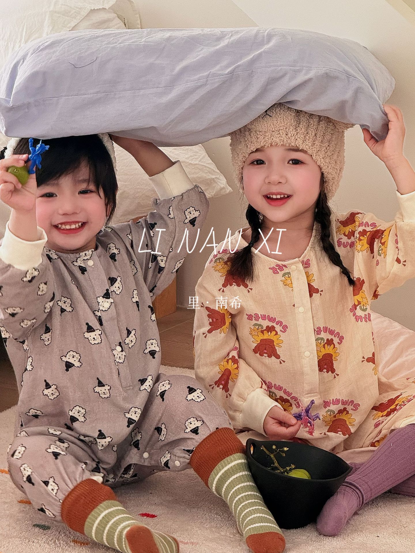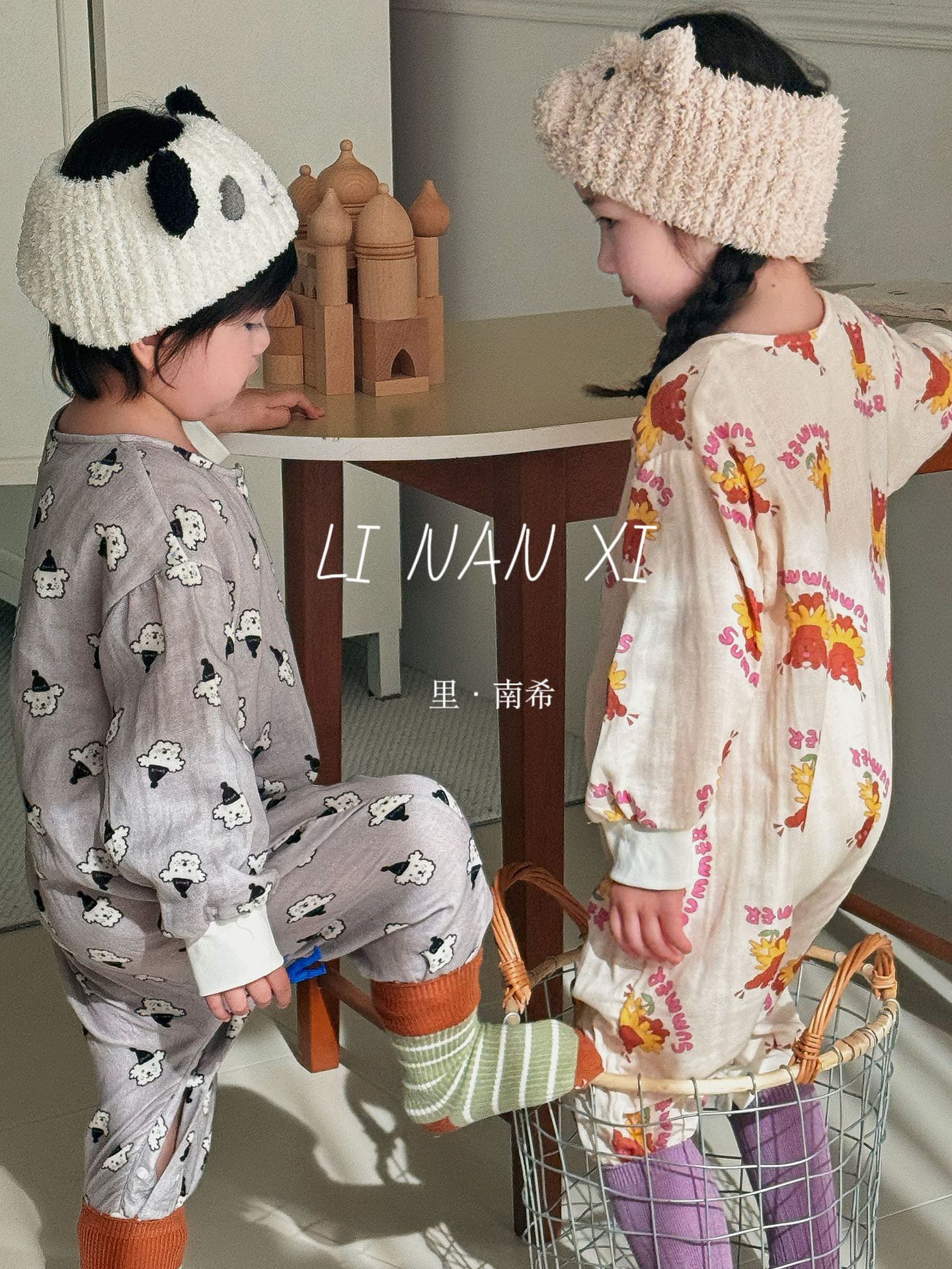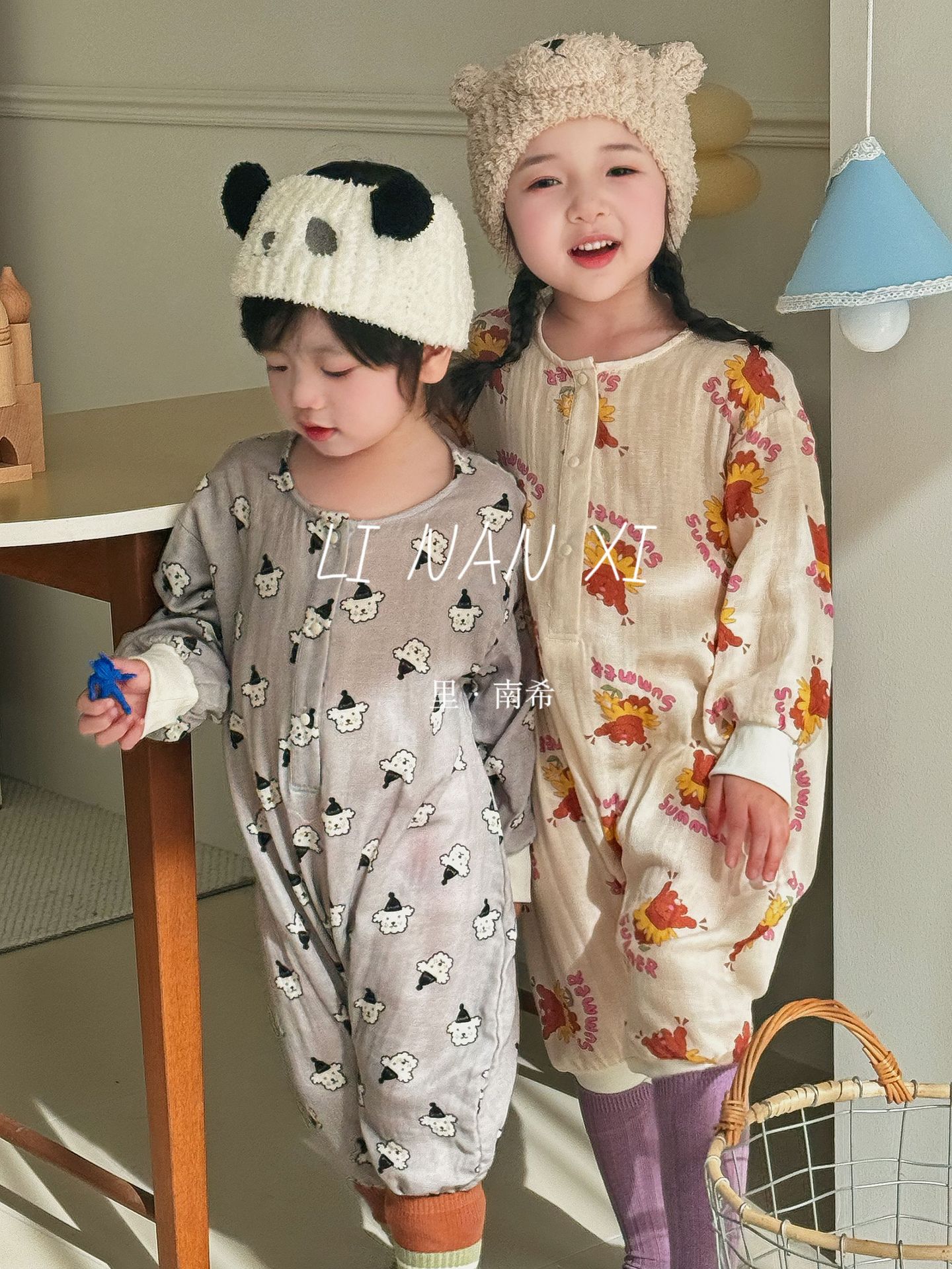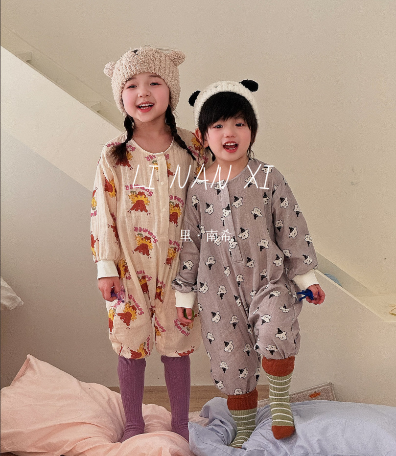 Piyama satu potong katun murni anak-anak Liananxi, romper katun kepadatan tinggi dengan cetakan digital baru musim semi 2026, kelas A.