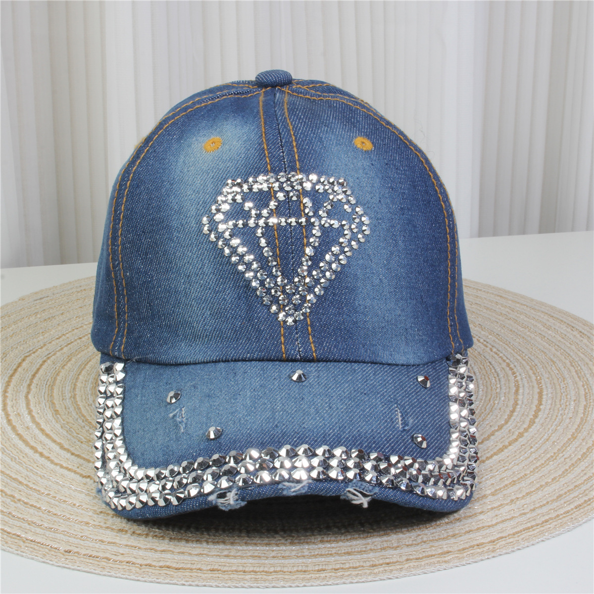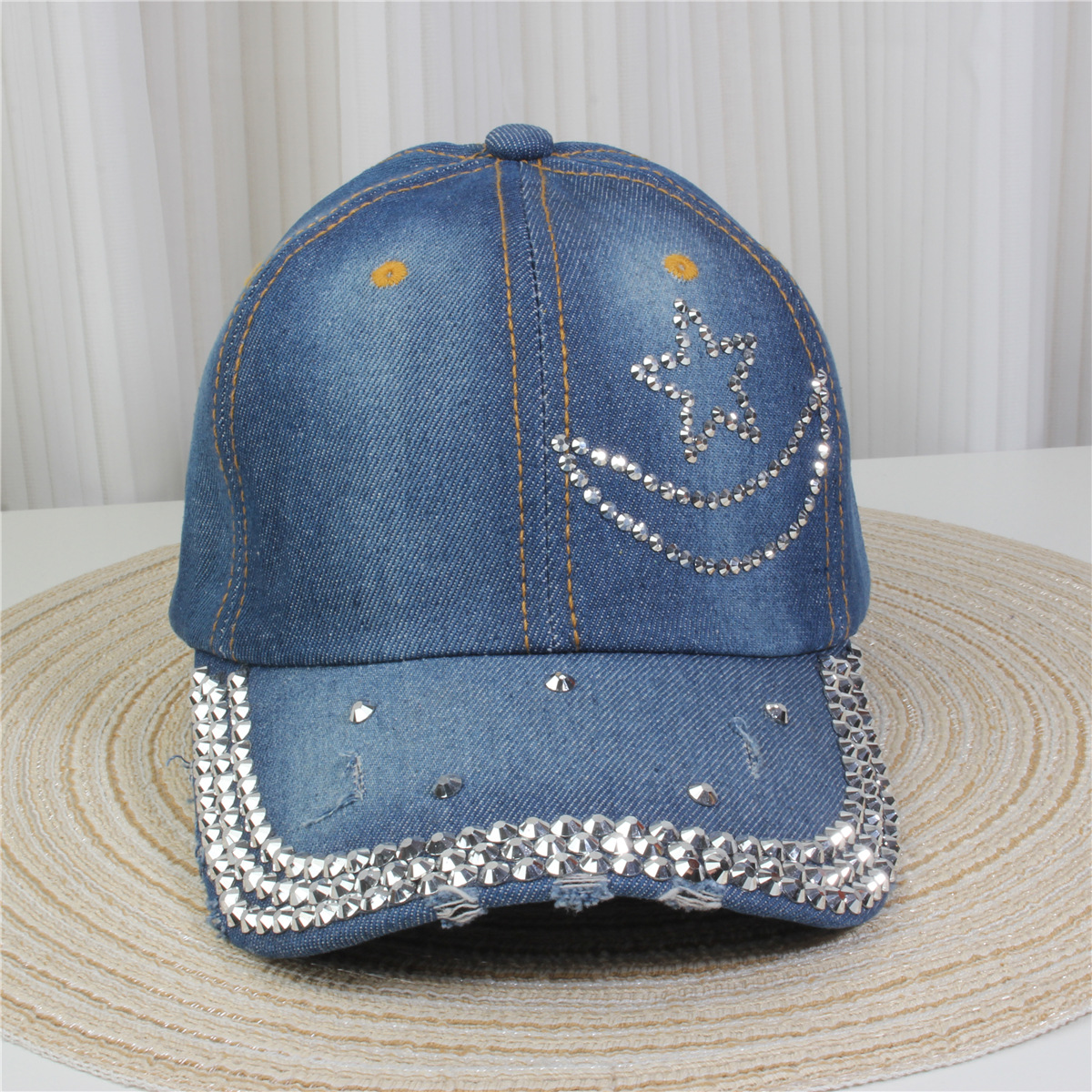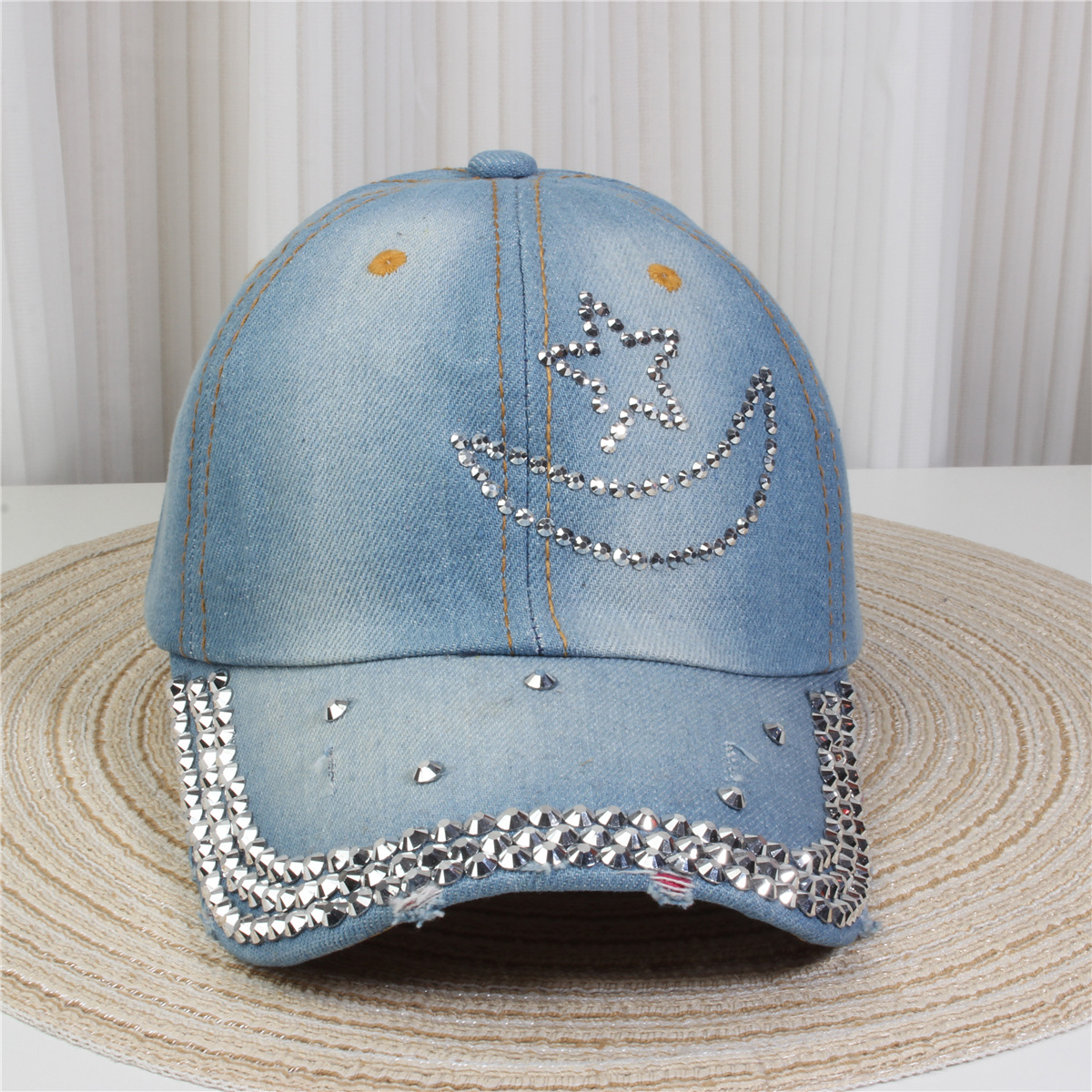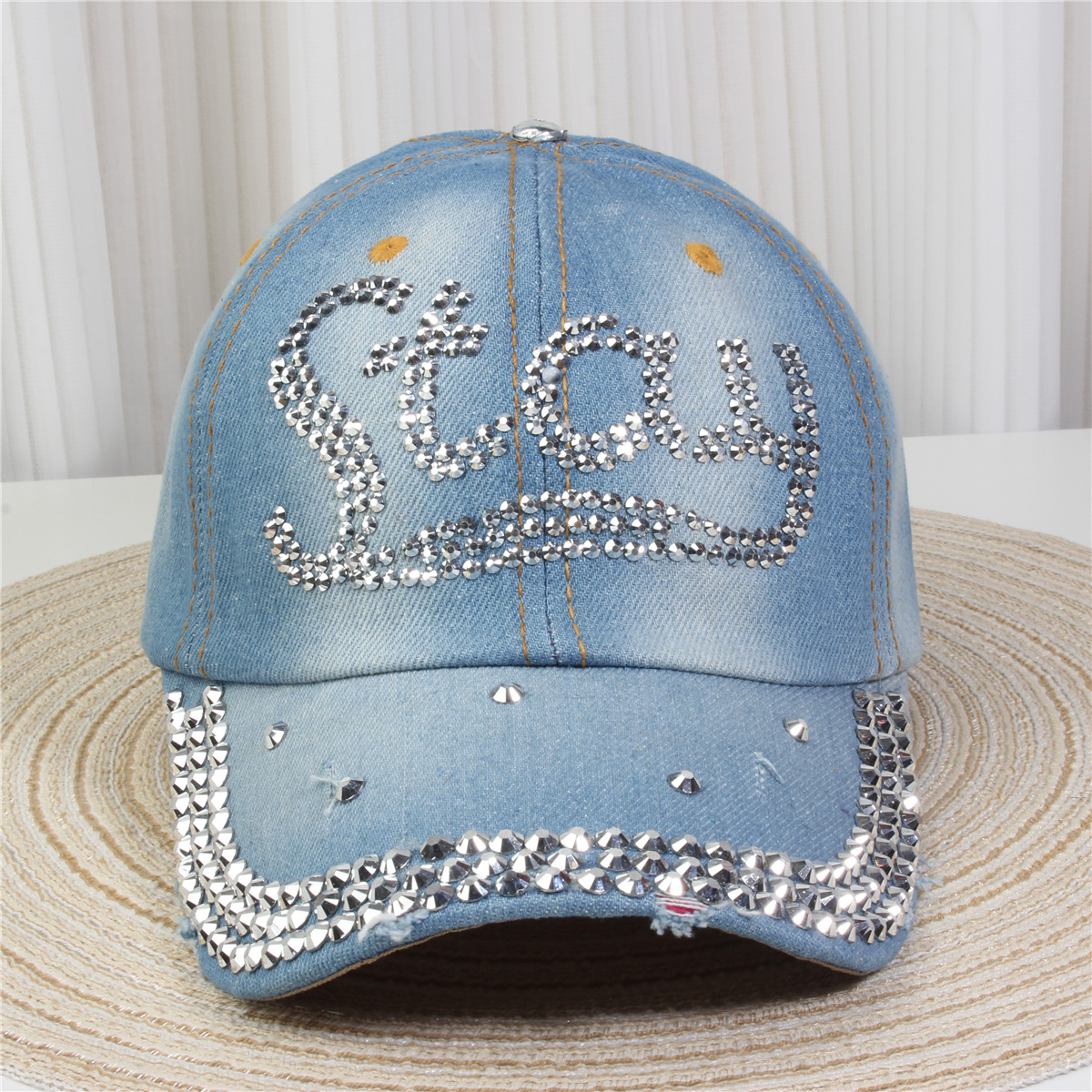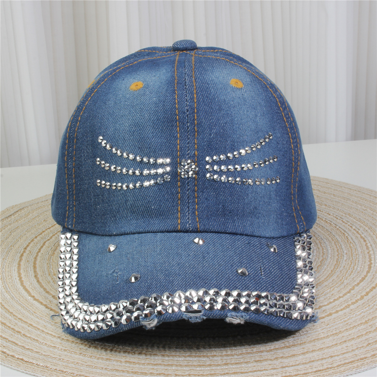 2024 baru topi bisbol gaya Barat modis denim berlian imitasi wanita topi bisbol dewasa kecil terlihat wajah kasual