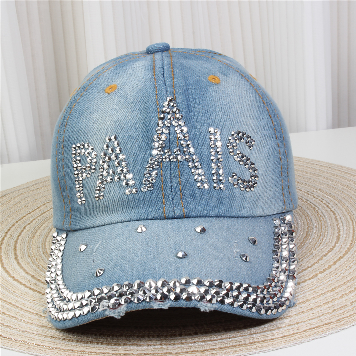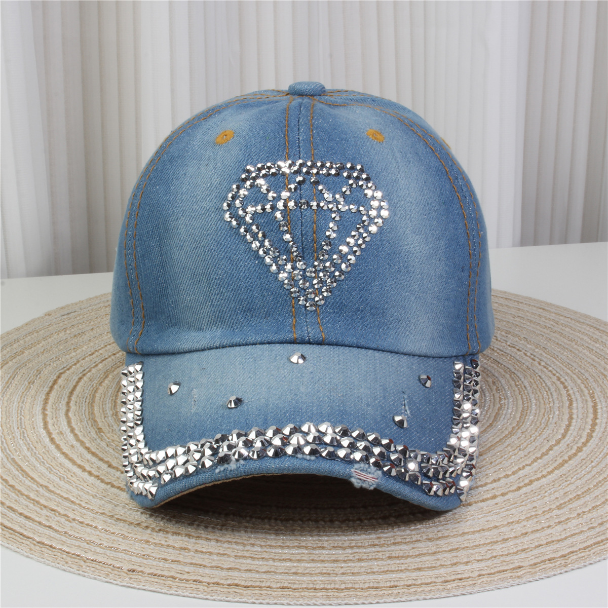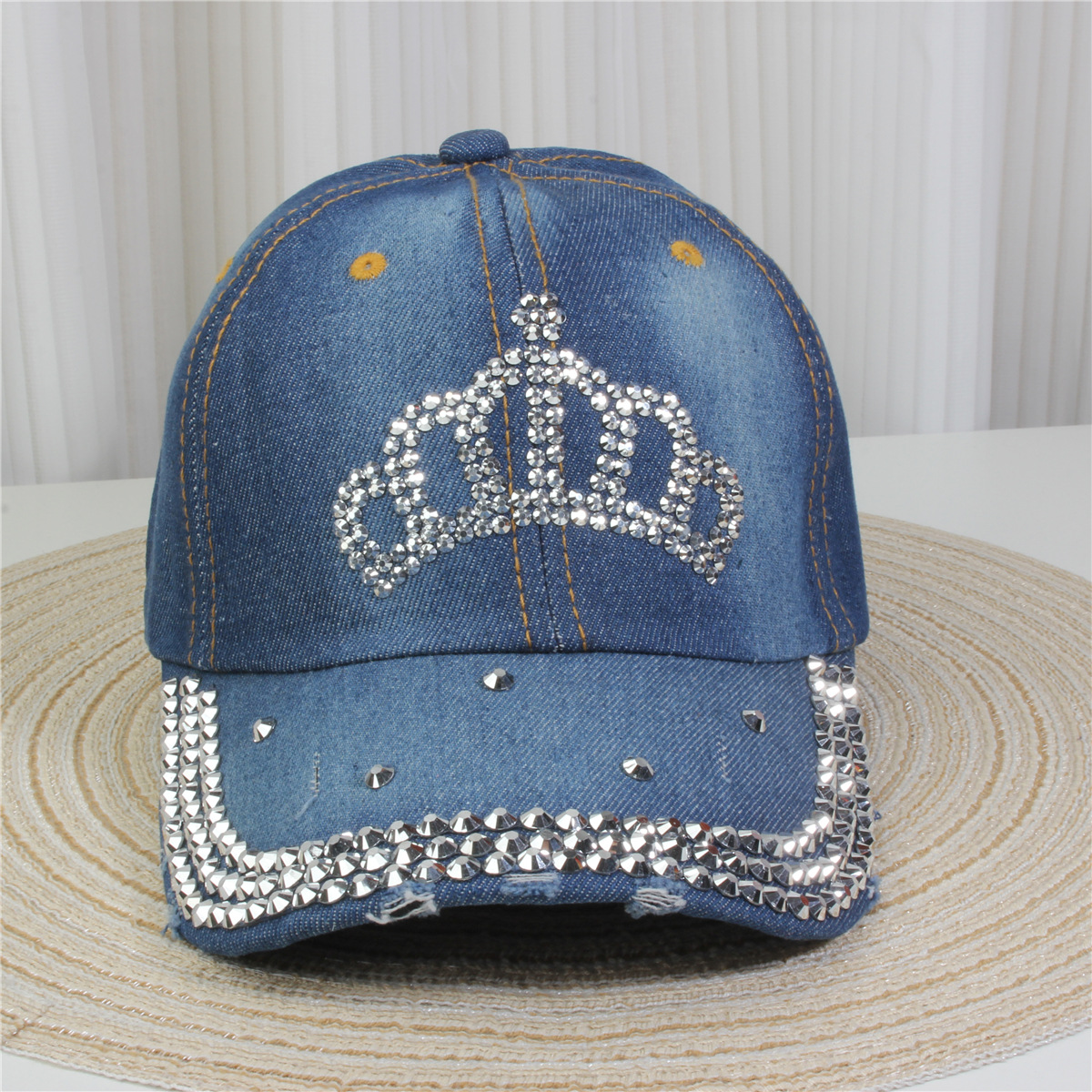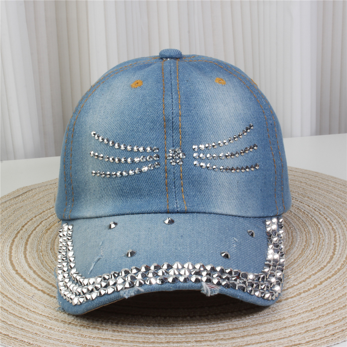 2024 baru topi bisbol gaya Barat modis denim berlian imitasi wanita topi bisbol dewasa kecil terlihat wajah kasual