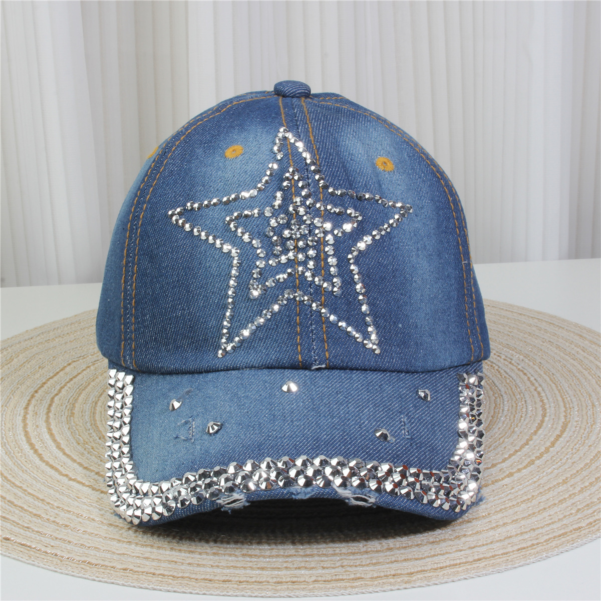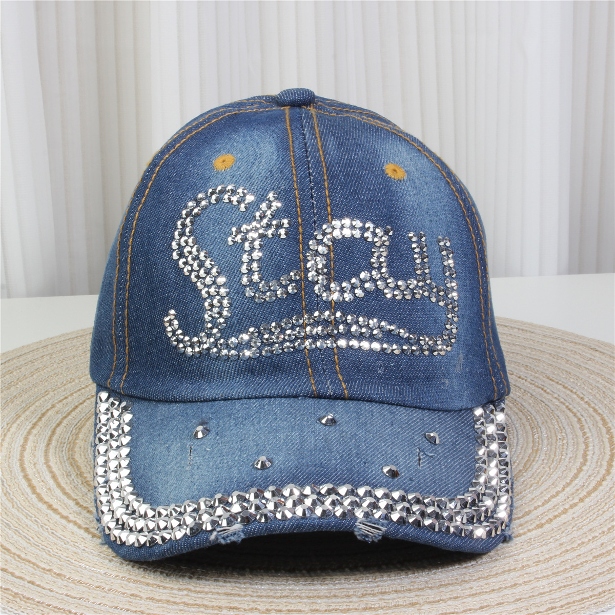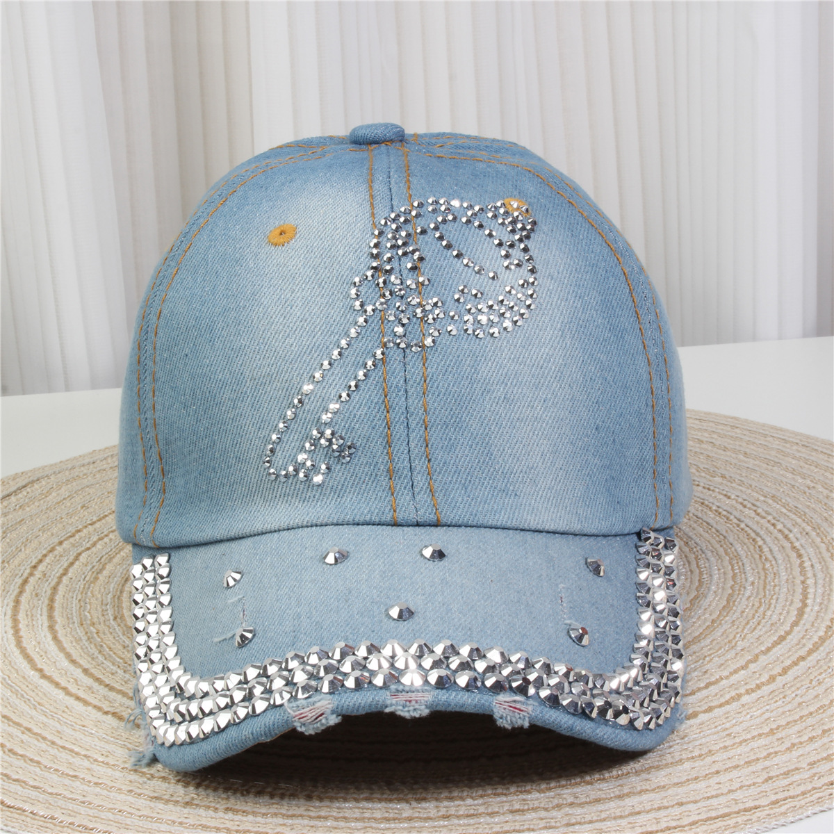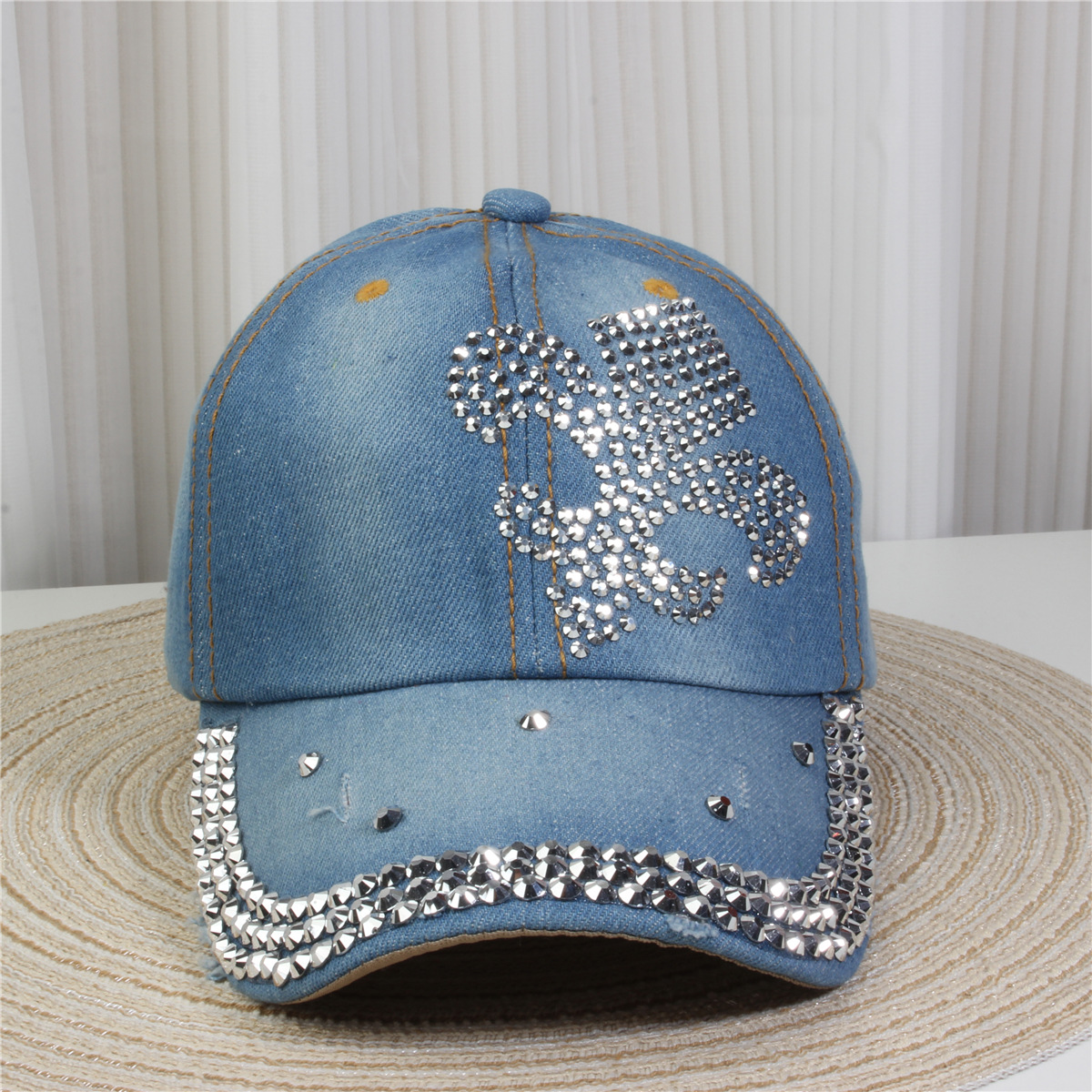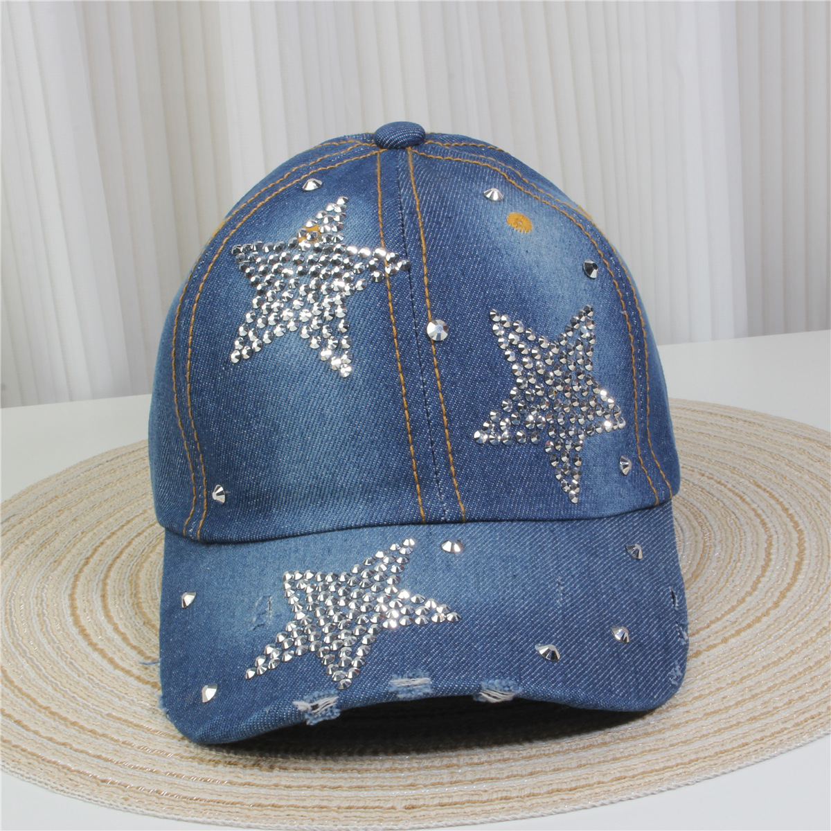 2024 baru topi bisbol gaya Barat modis denim berlian imitasi wanita topi bisbol dewasa kecil terlihat wajah kasual