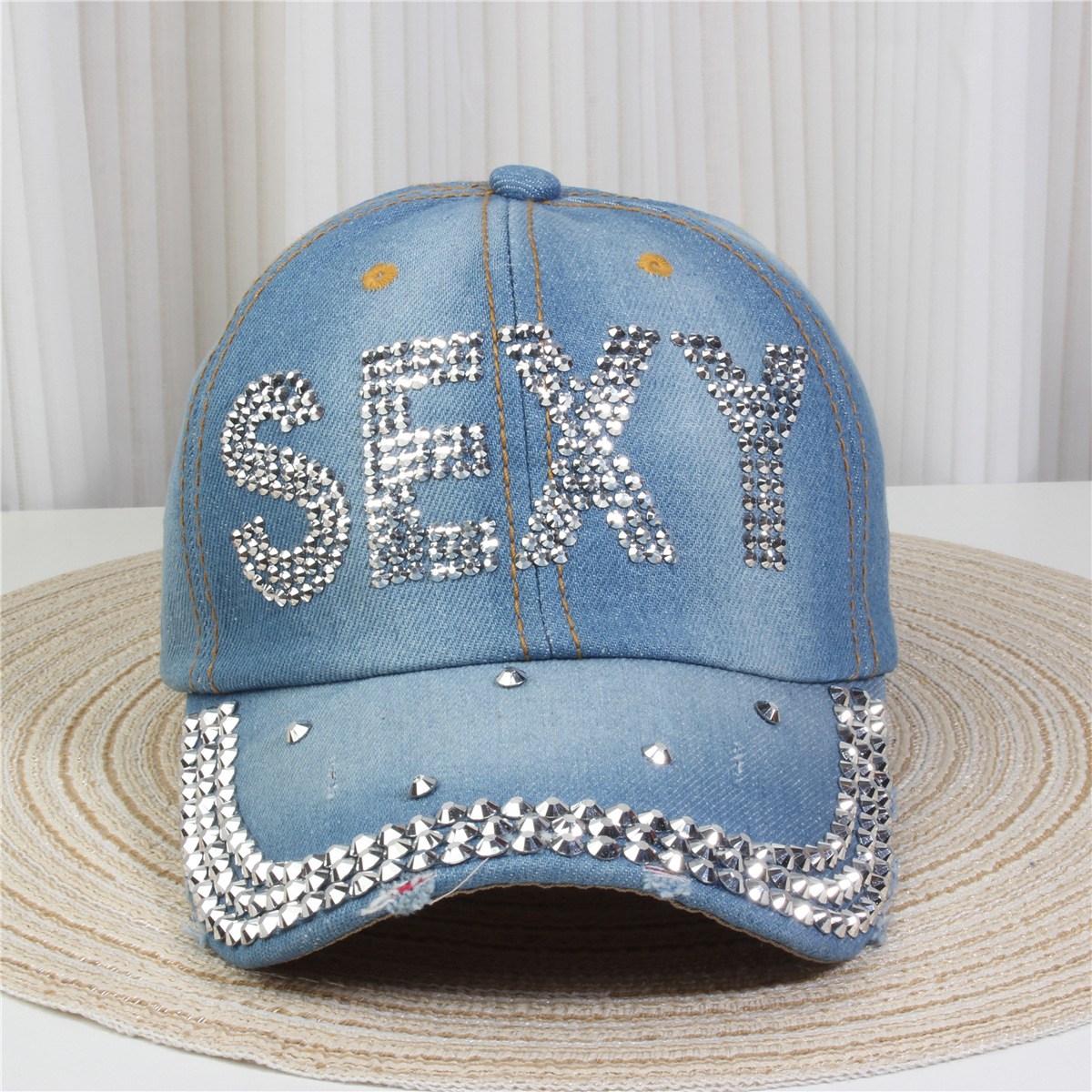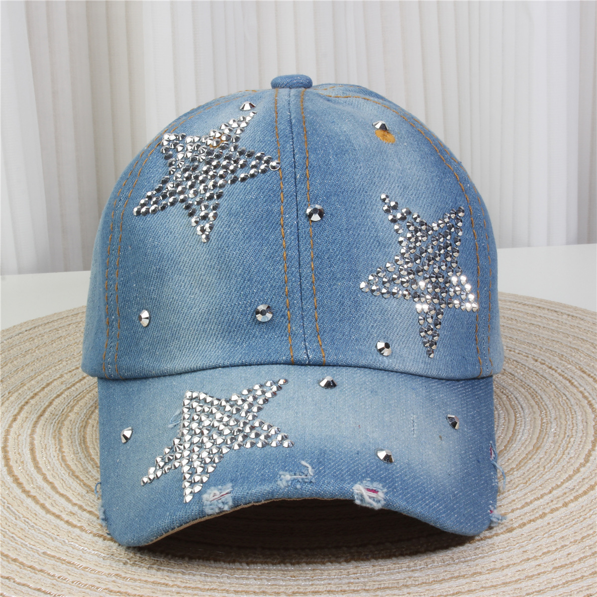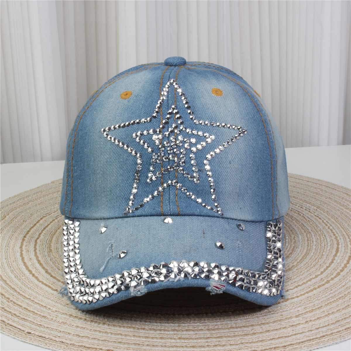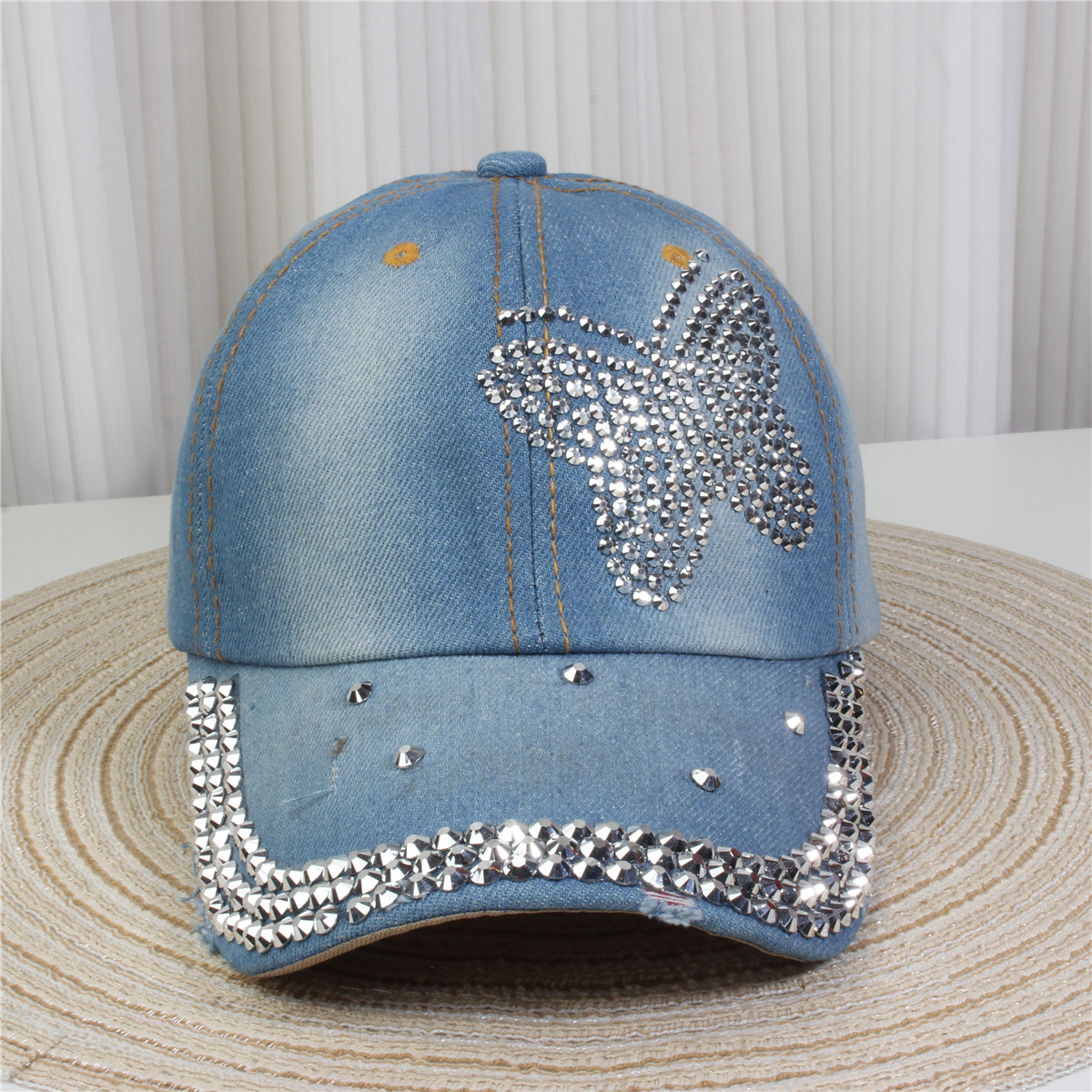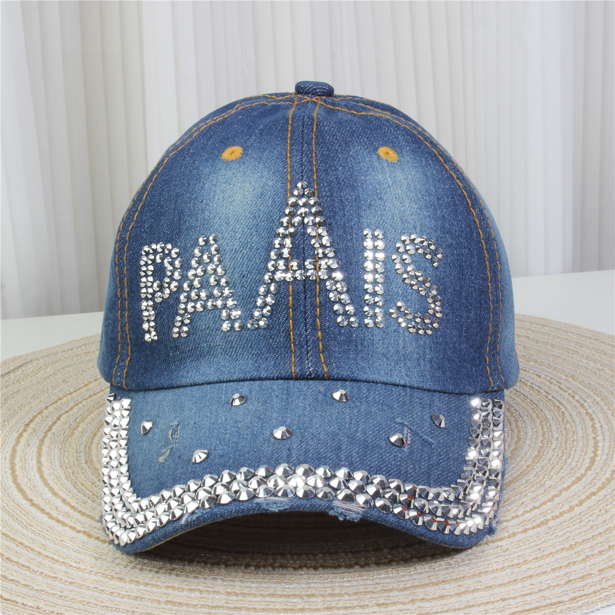 2024 baru topi bisbol gaya Barat modis denim berlian imitasi wanita topi bisbol dewasa kecil terlihat wajah kasual