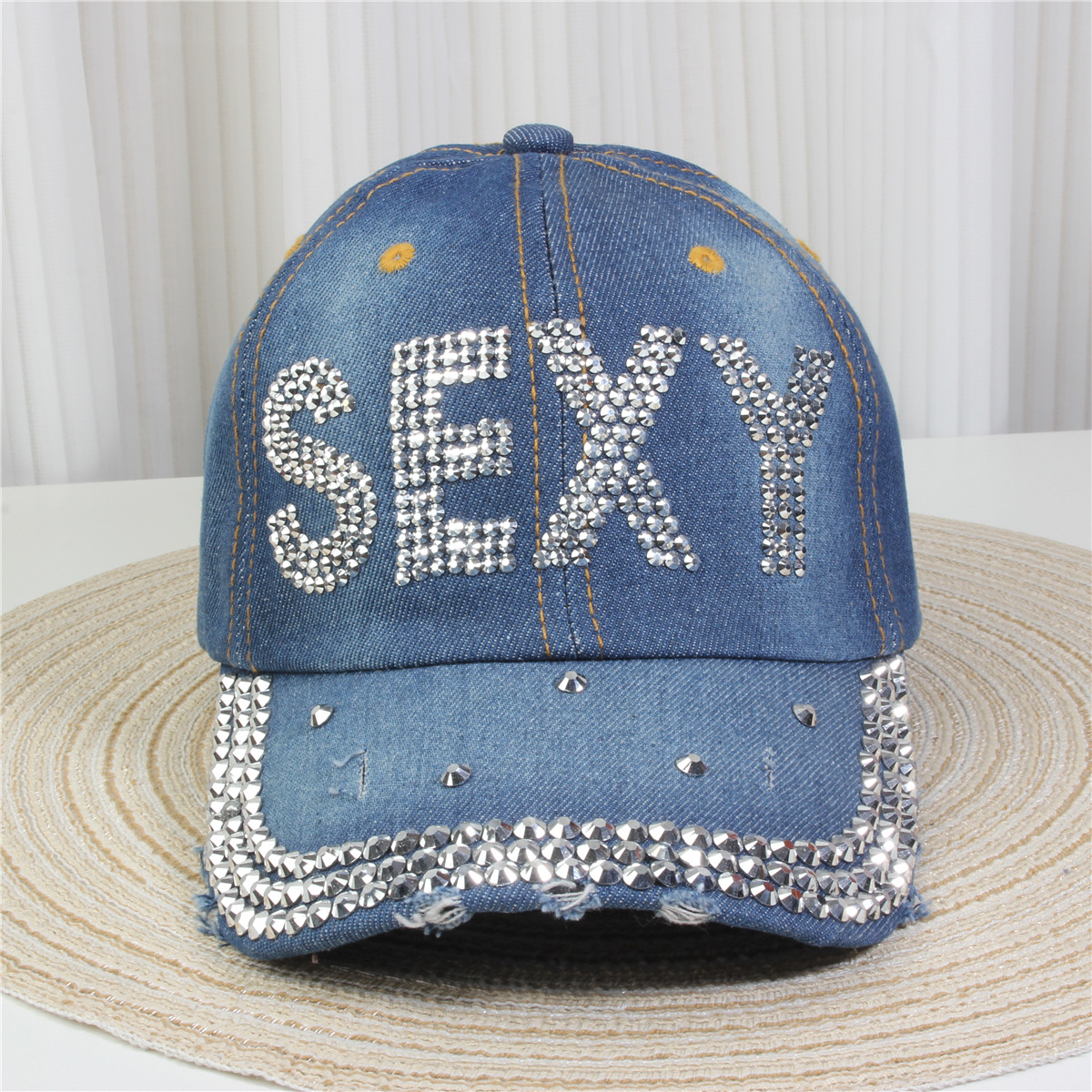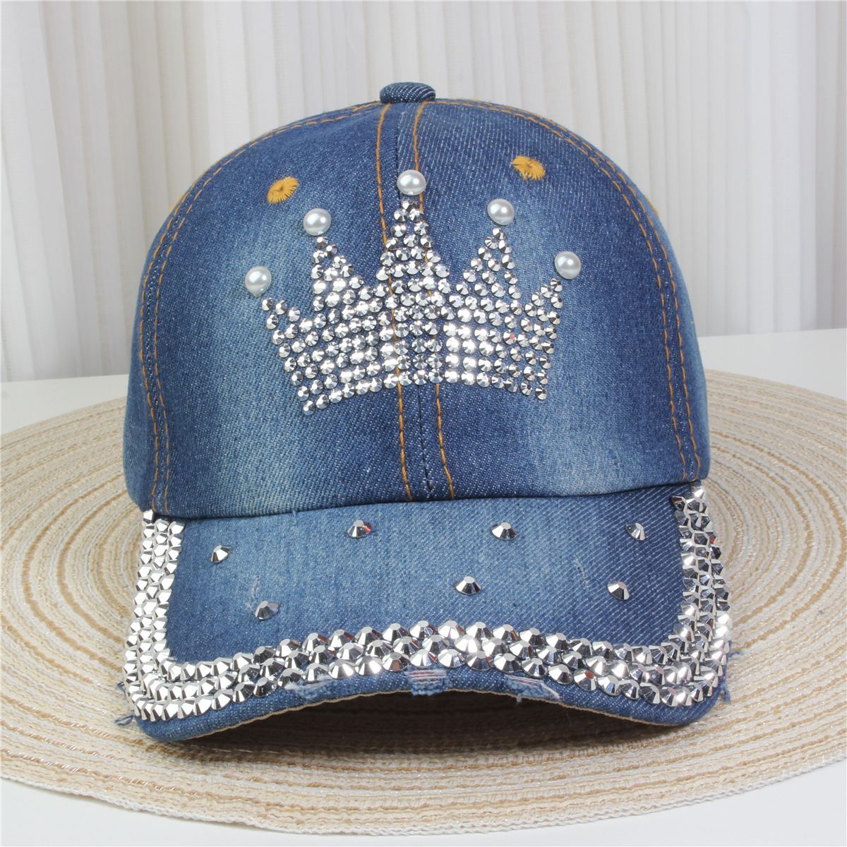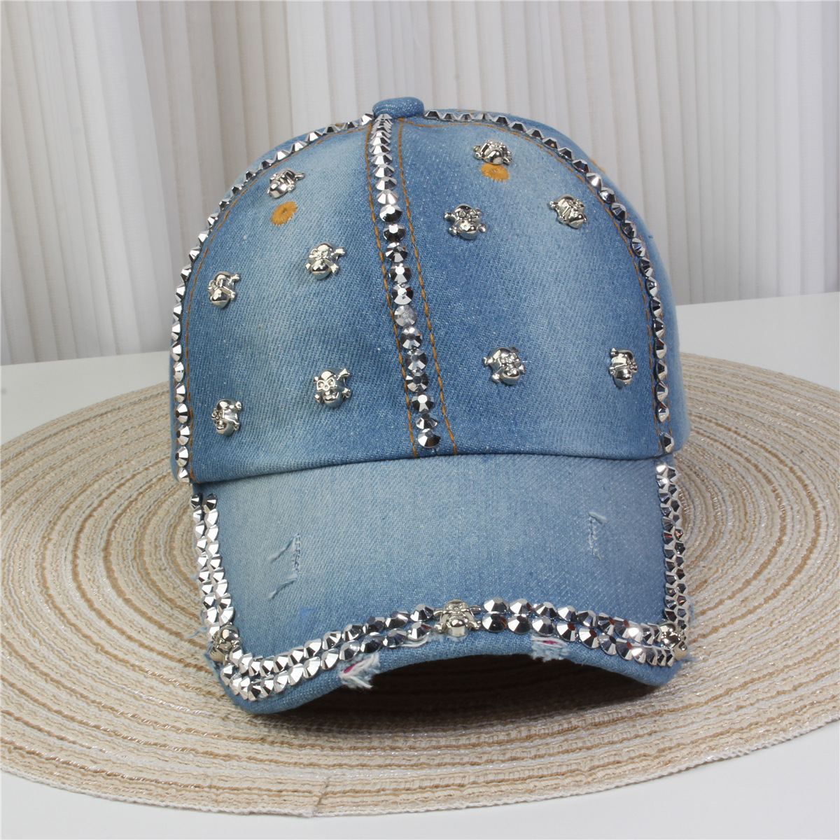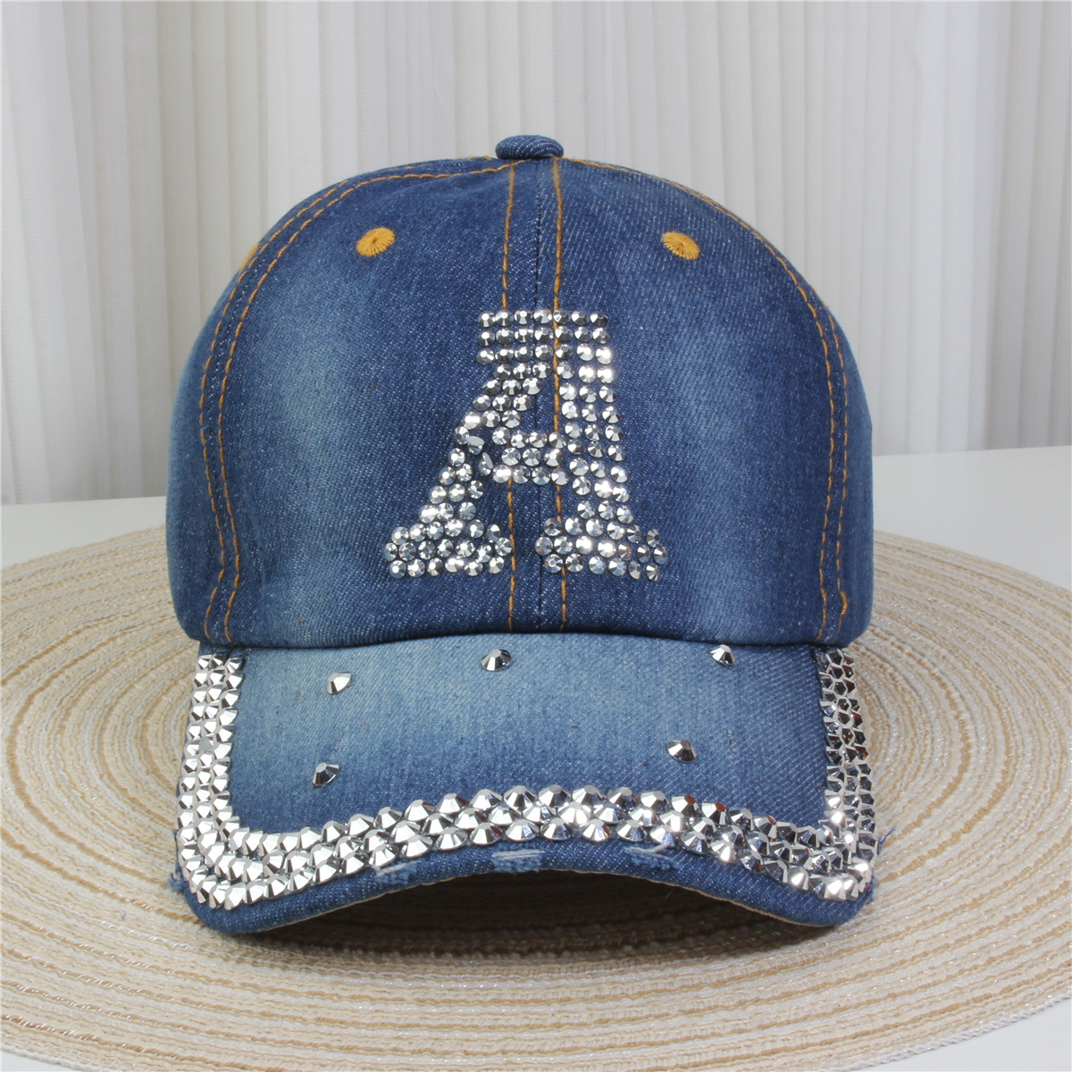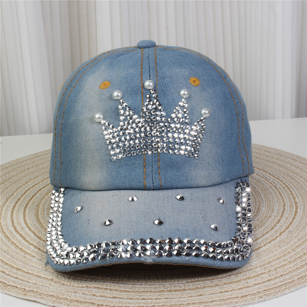 2024 baru topi bisbol gaya Barat modis denim berlian imitasi wanita topi bisbol dewasa kecil terlihat wajah kasual