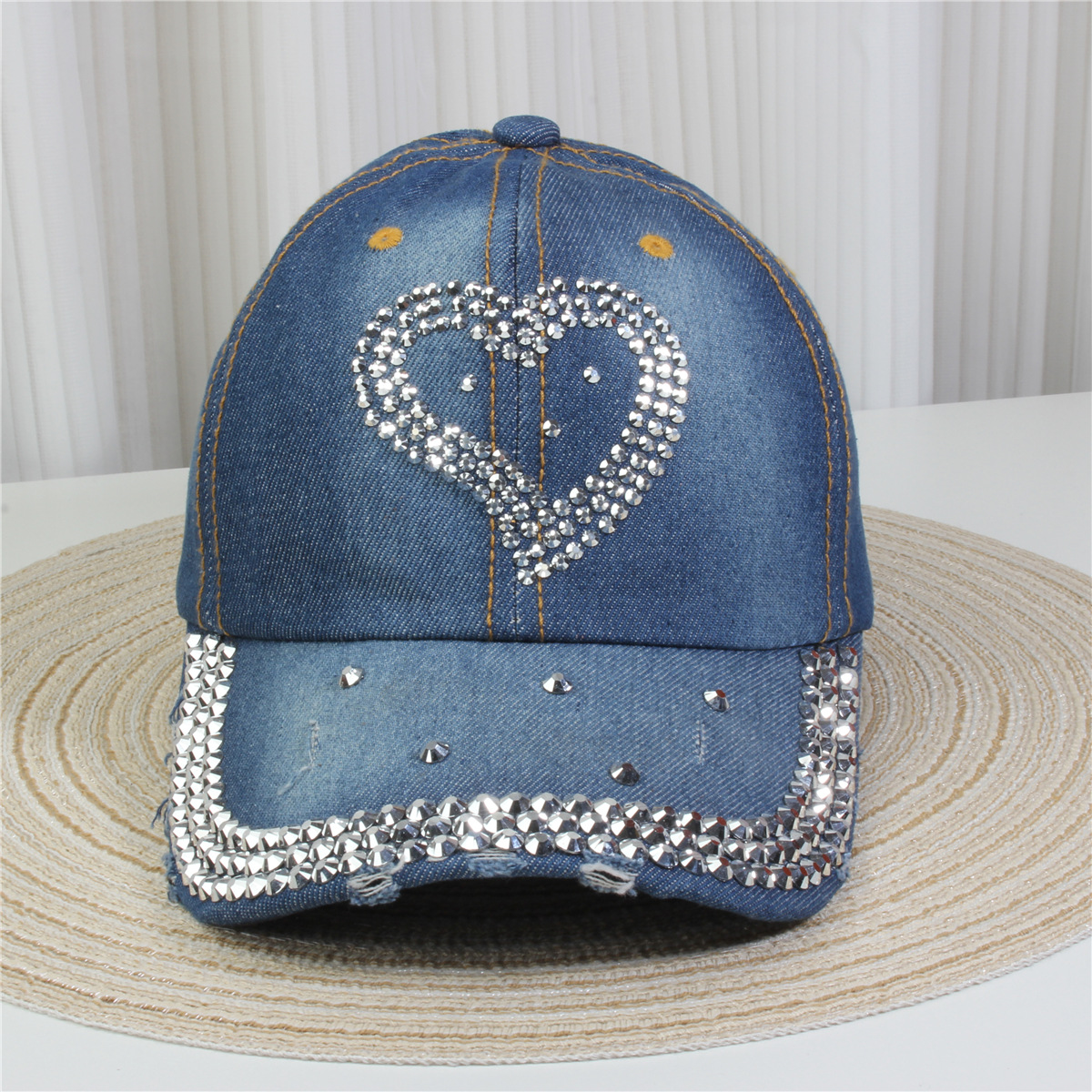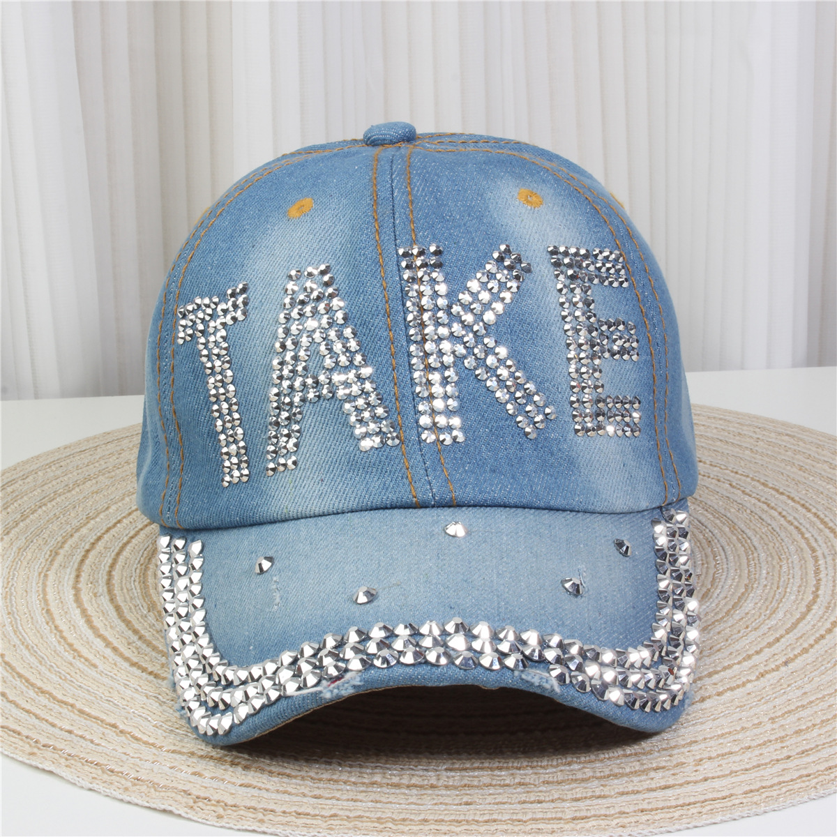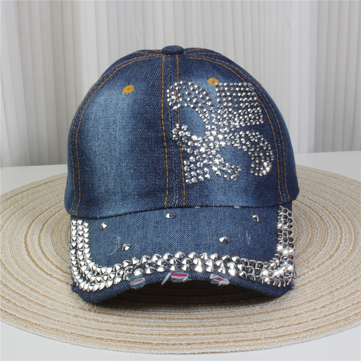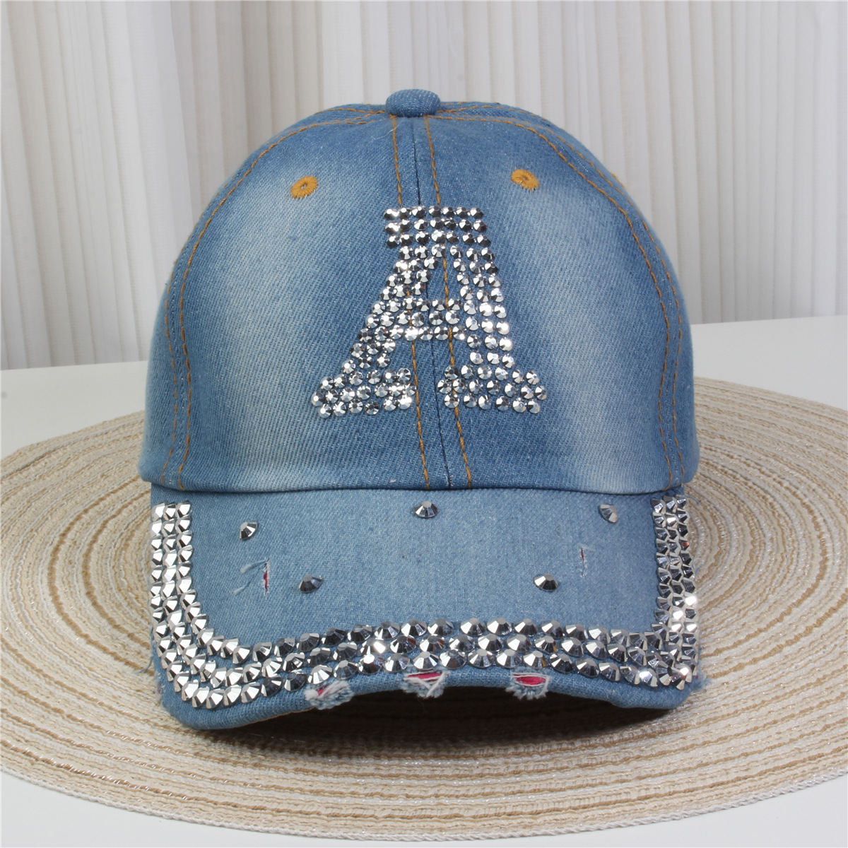 2024 baru topi bisbol gaya Barat modis denim berlian imitasi wanita topi bisbol dewasa kecil terlihat wajah kasual