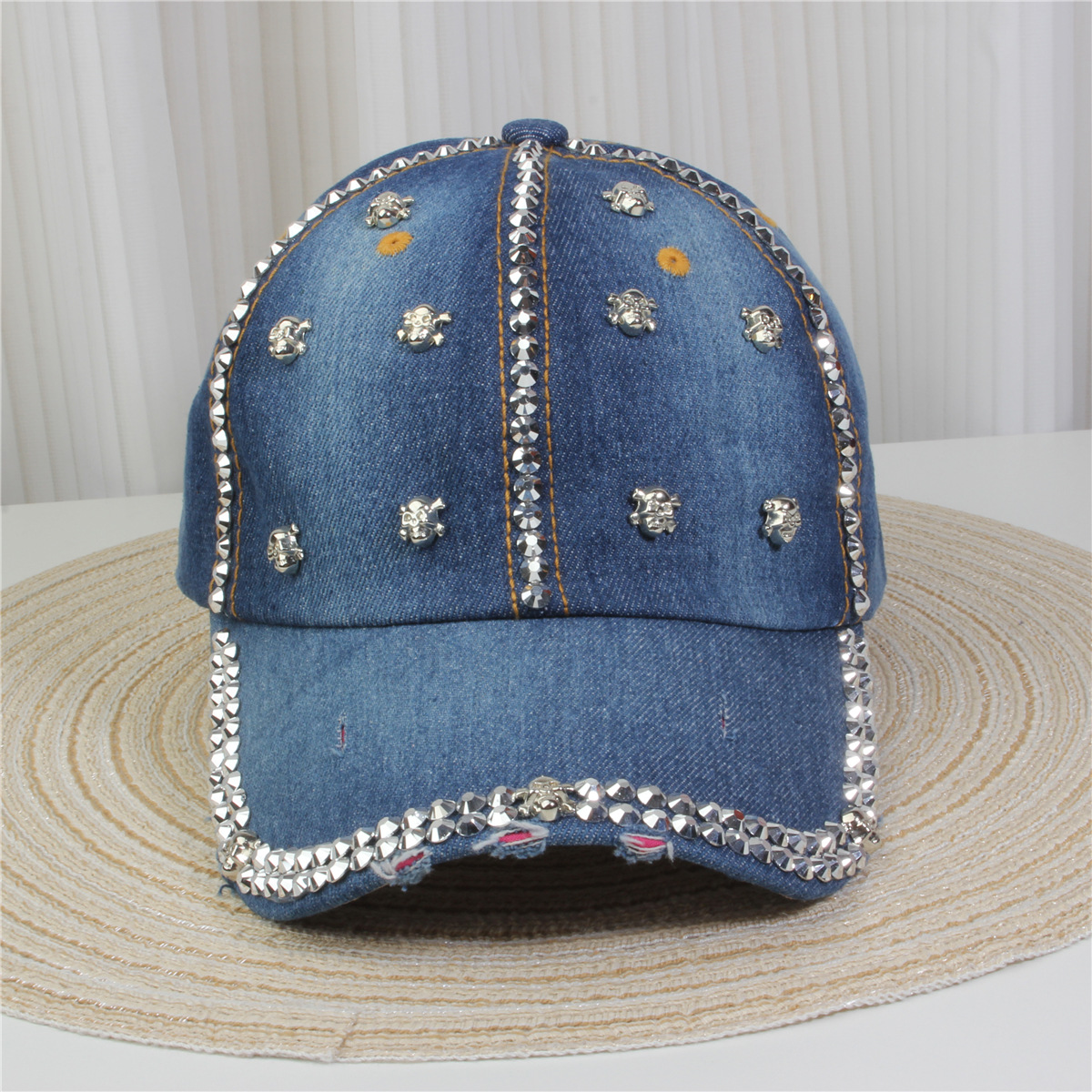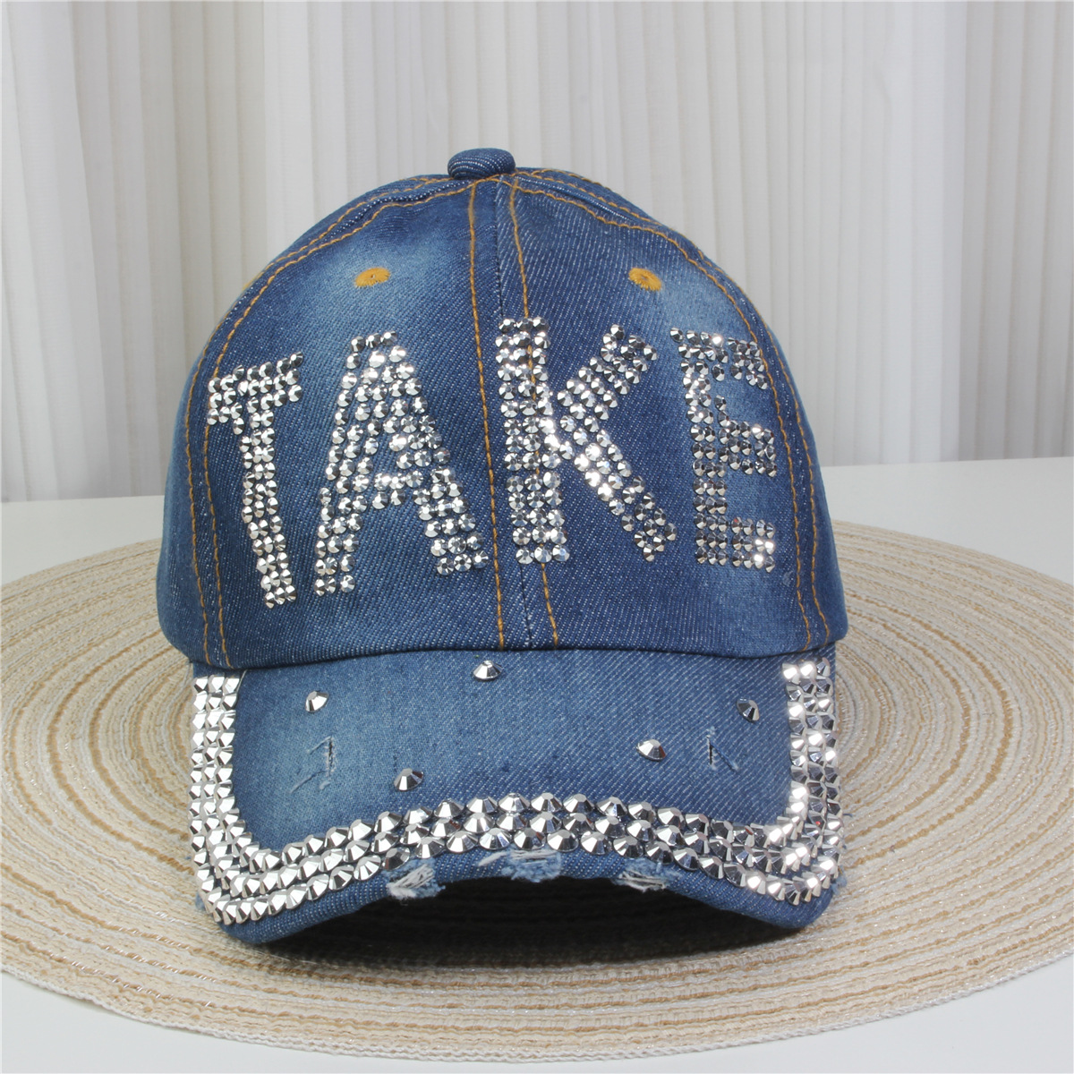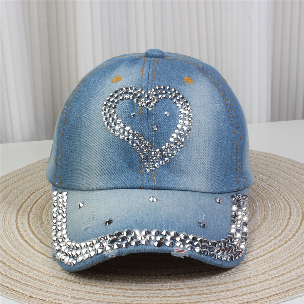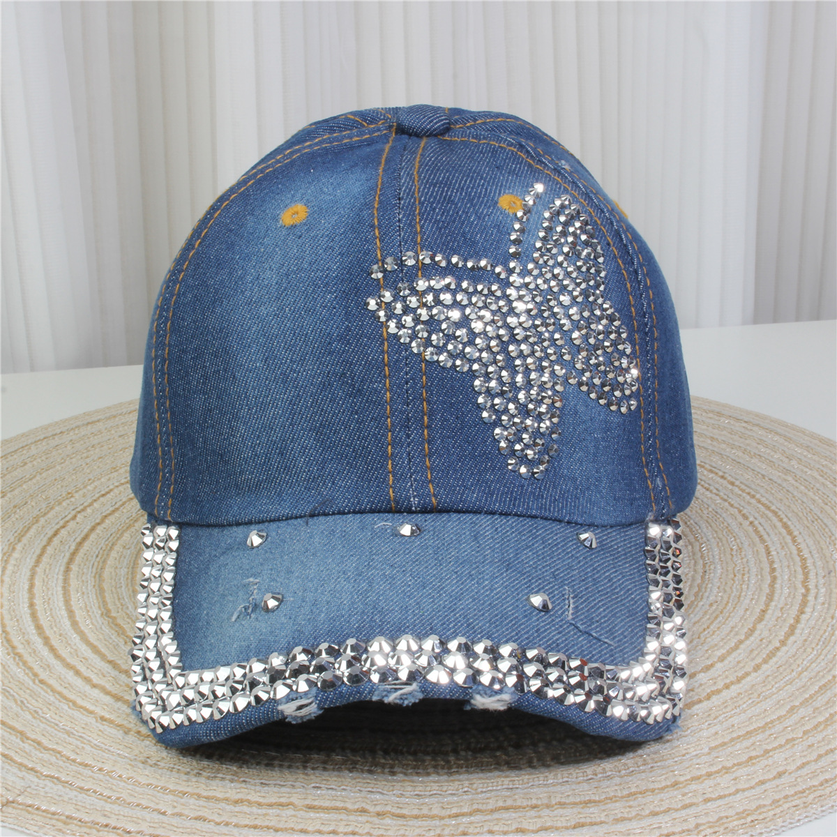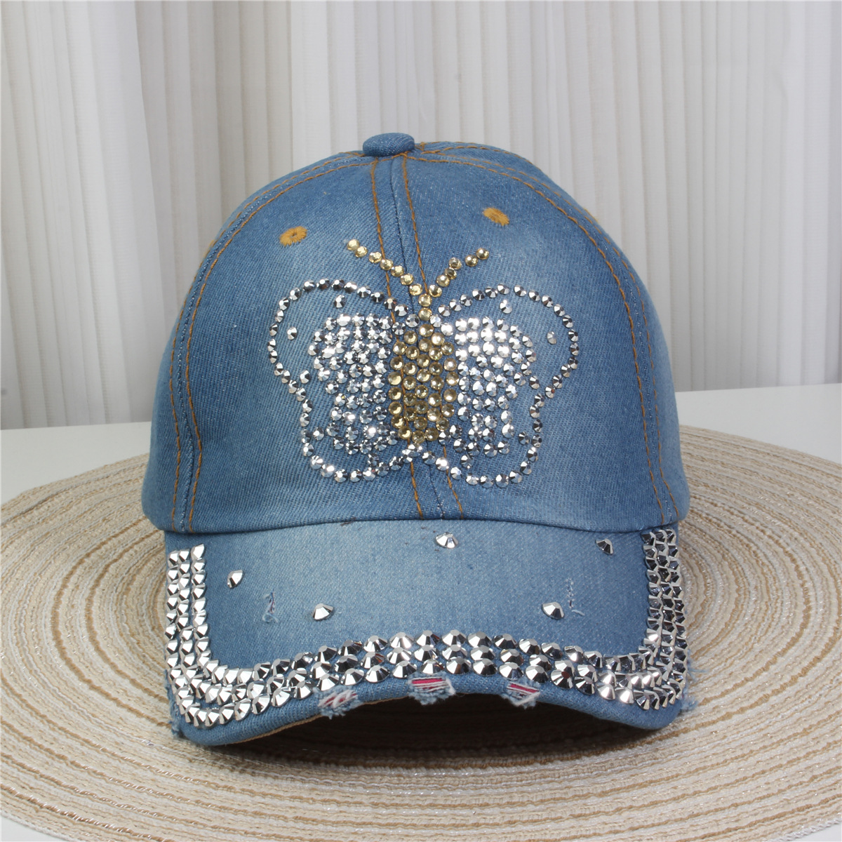 2024 baru topi bisbol gaya Barat modis denim berlian imitasi wanita topi bisbol dewasa kecil terlihat wajah kasual