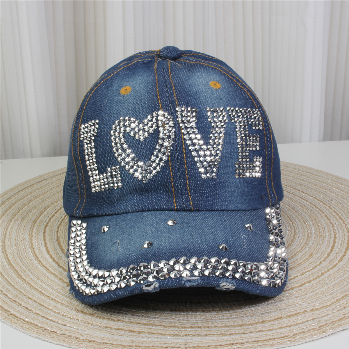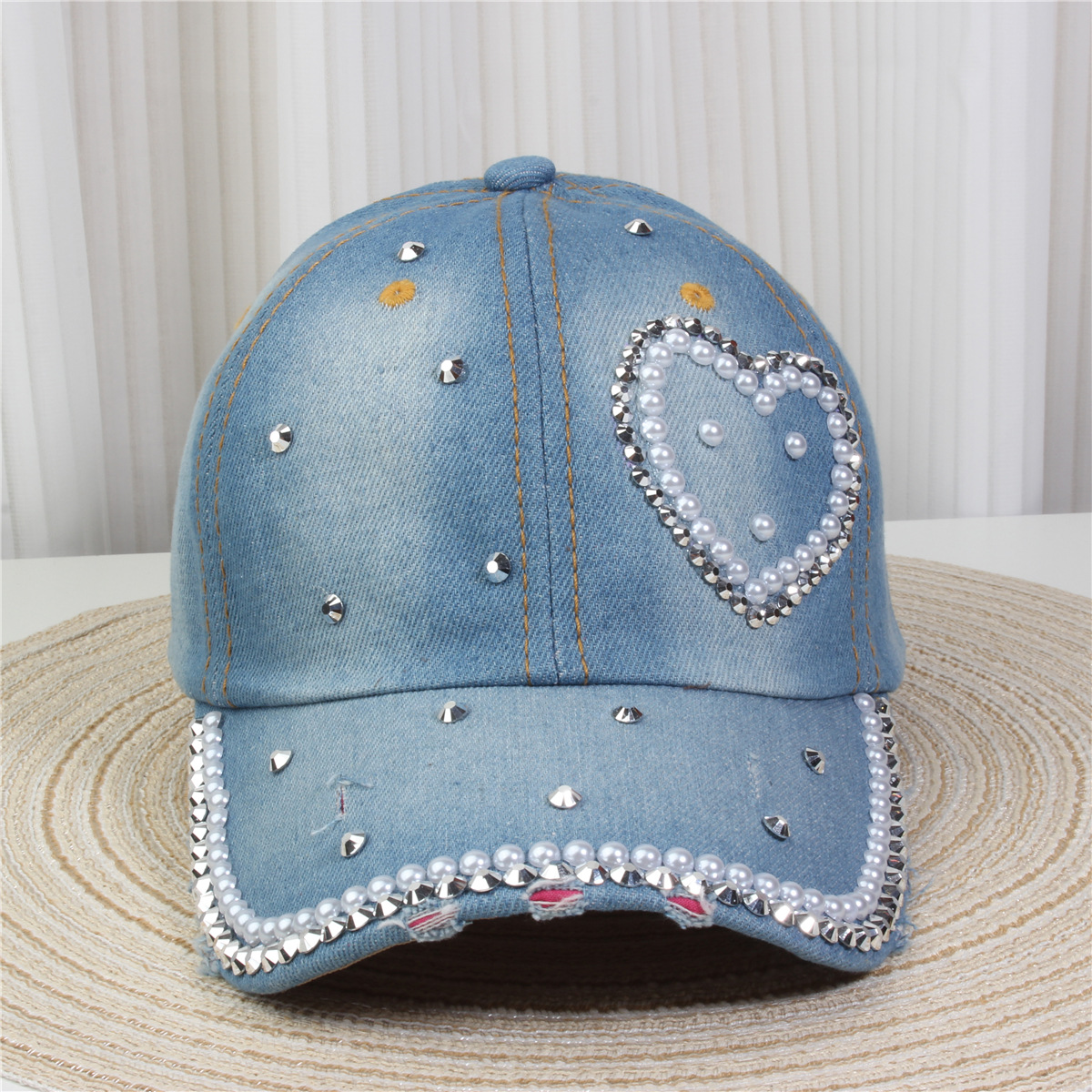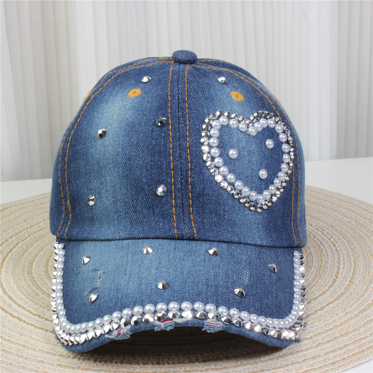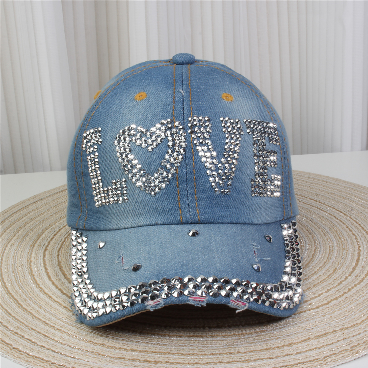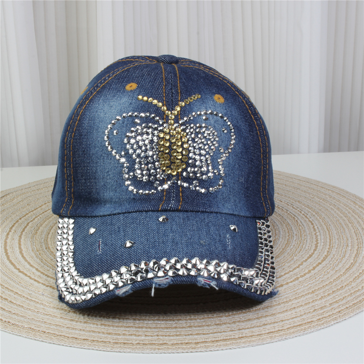 2024 baru topi bisbol gaya Barat modis denim berlian imitasi wanita topi bisbol dewasa kecil terlihat wajah kasual