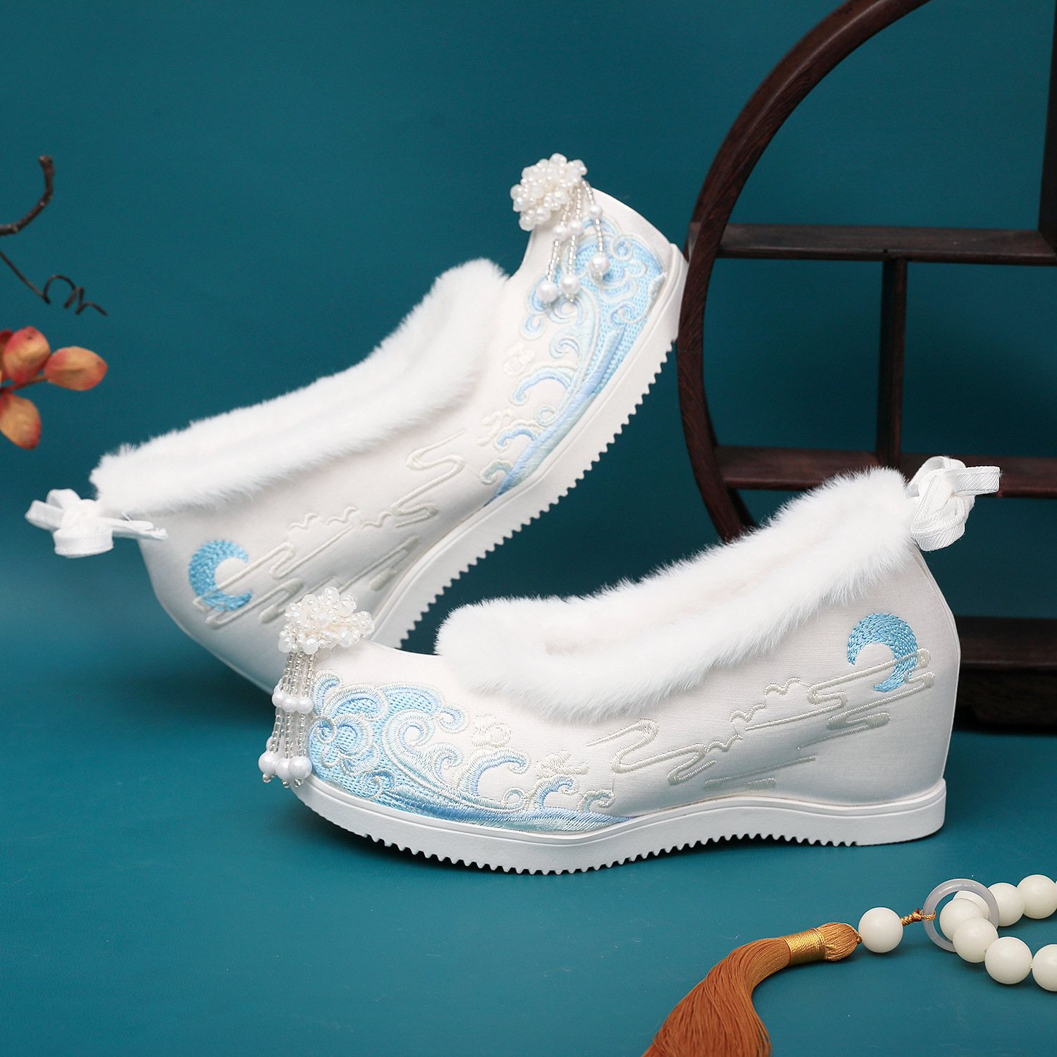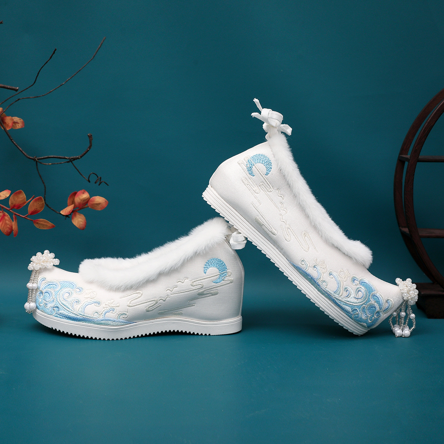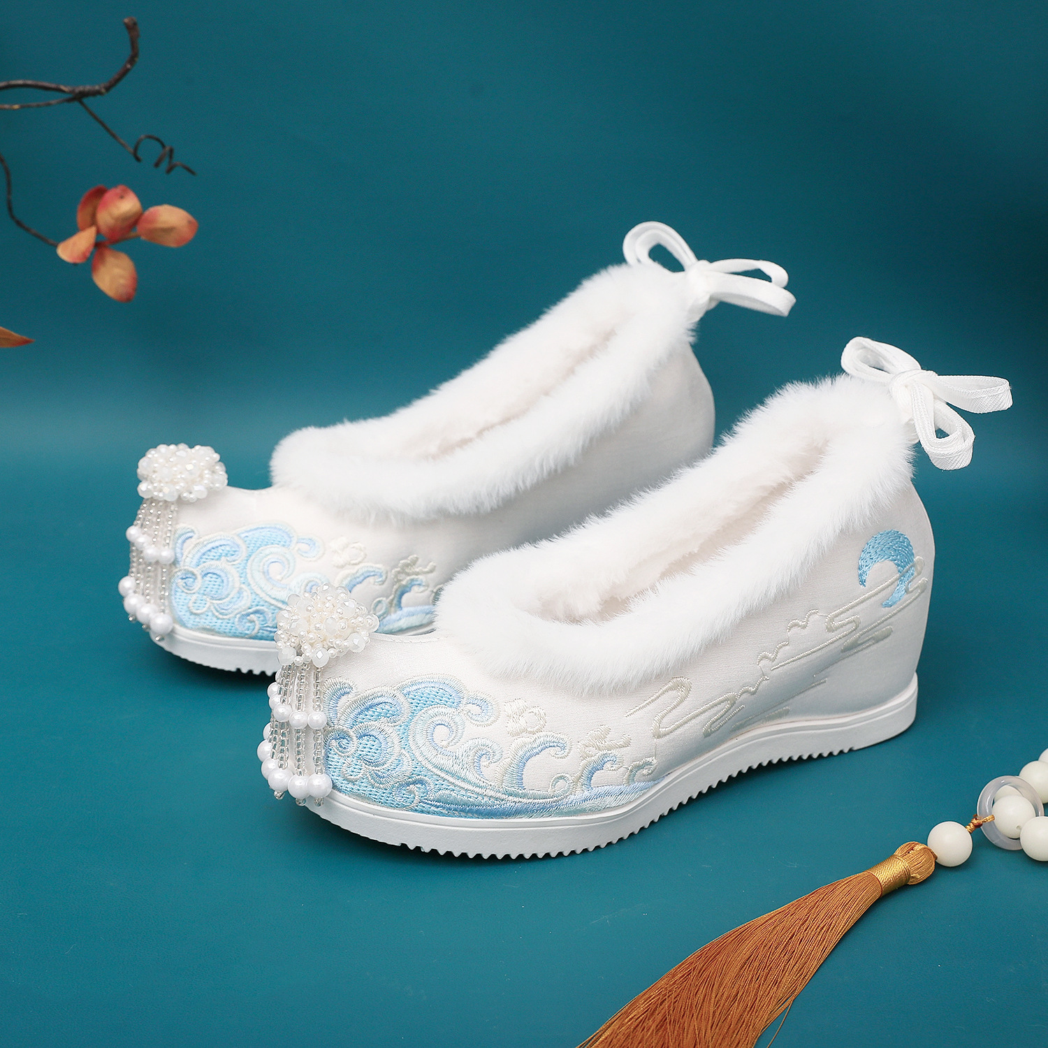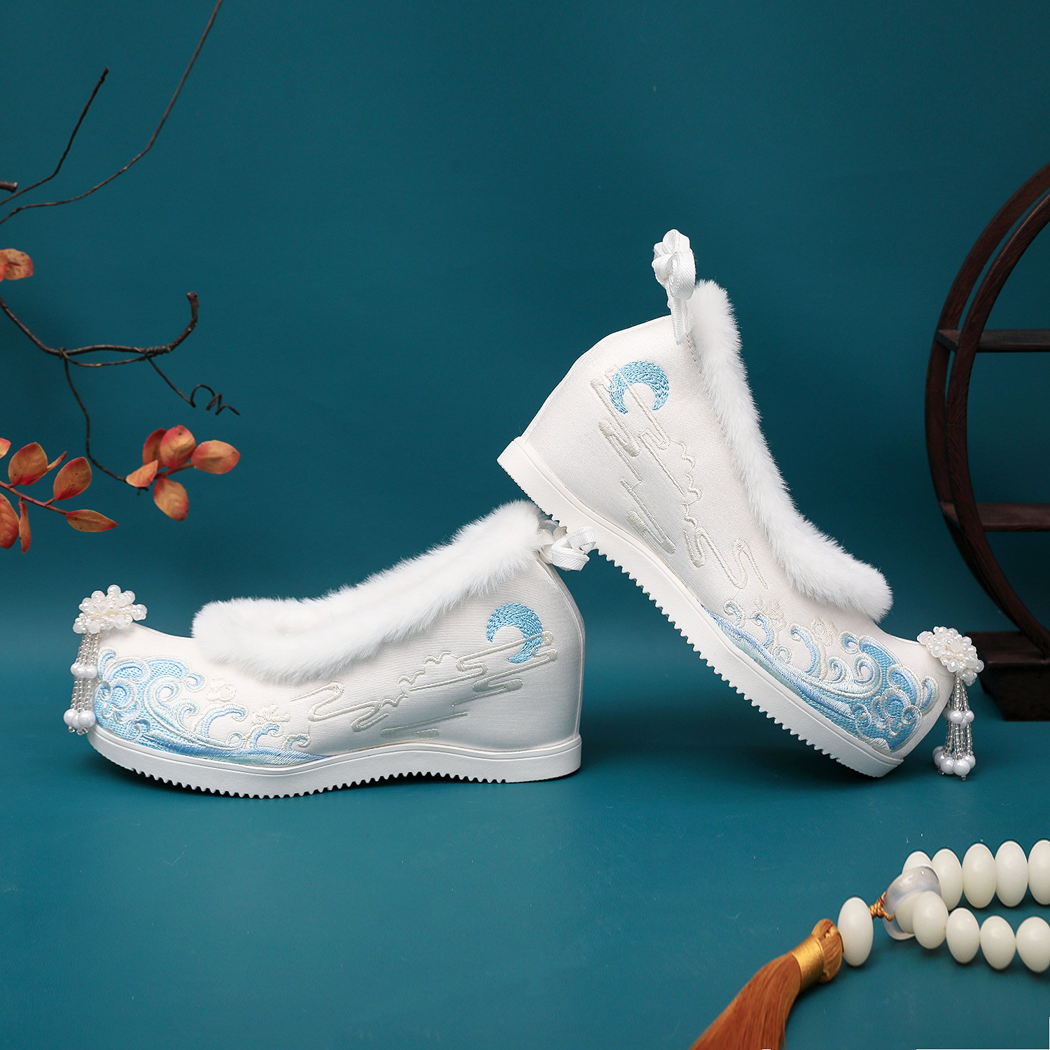 Sepatu Hanfu baru untuk wanita, sepatu bordir gaya kuno pelajar, sepatu Dalaman Hanfu penambah tinggi badan, sepatu gaya kuno