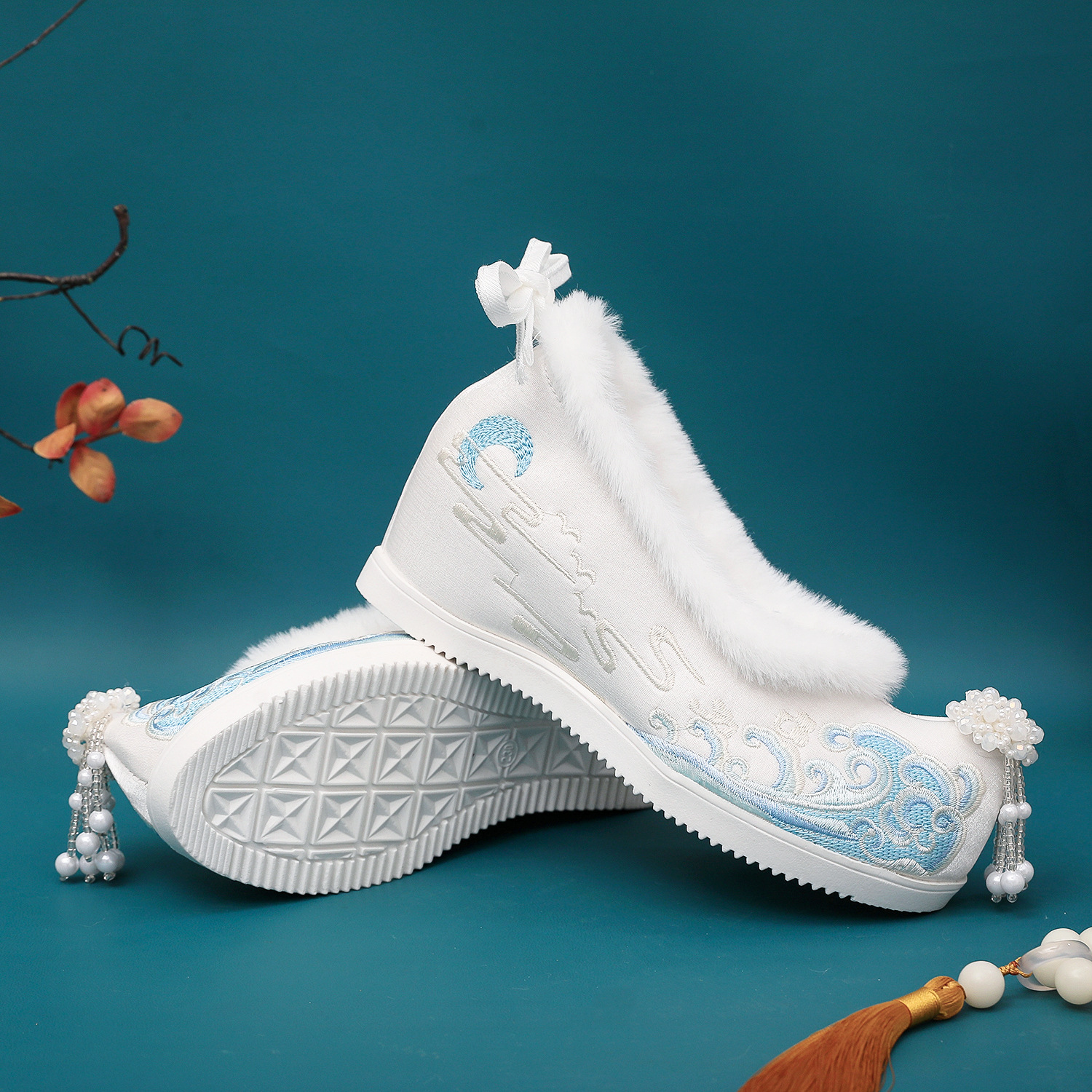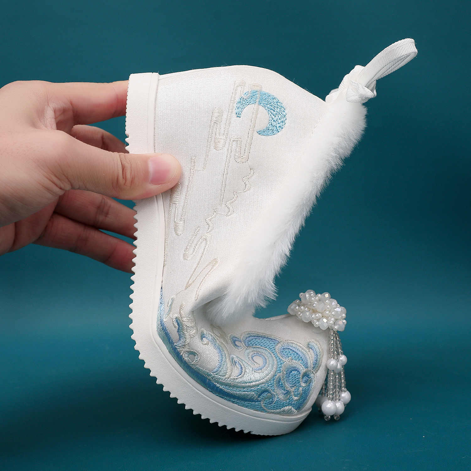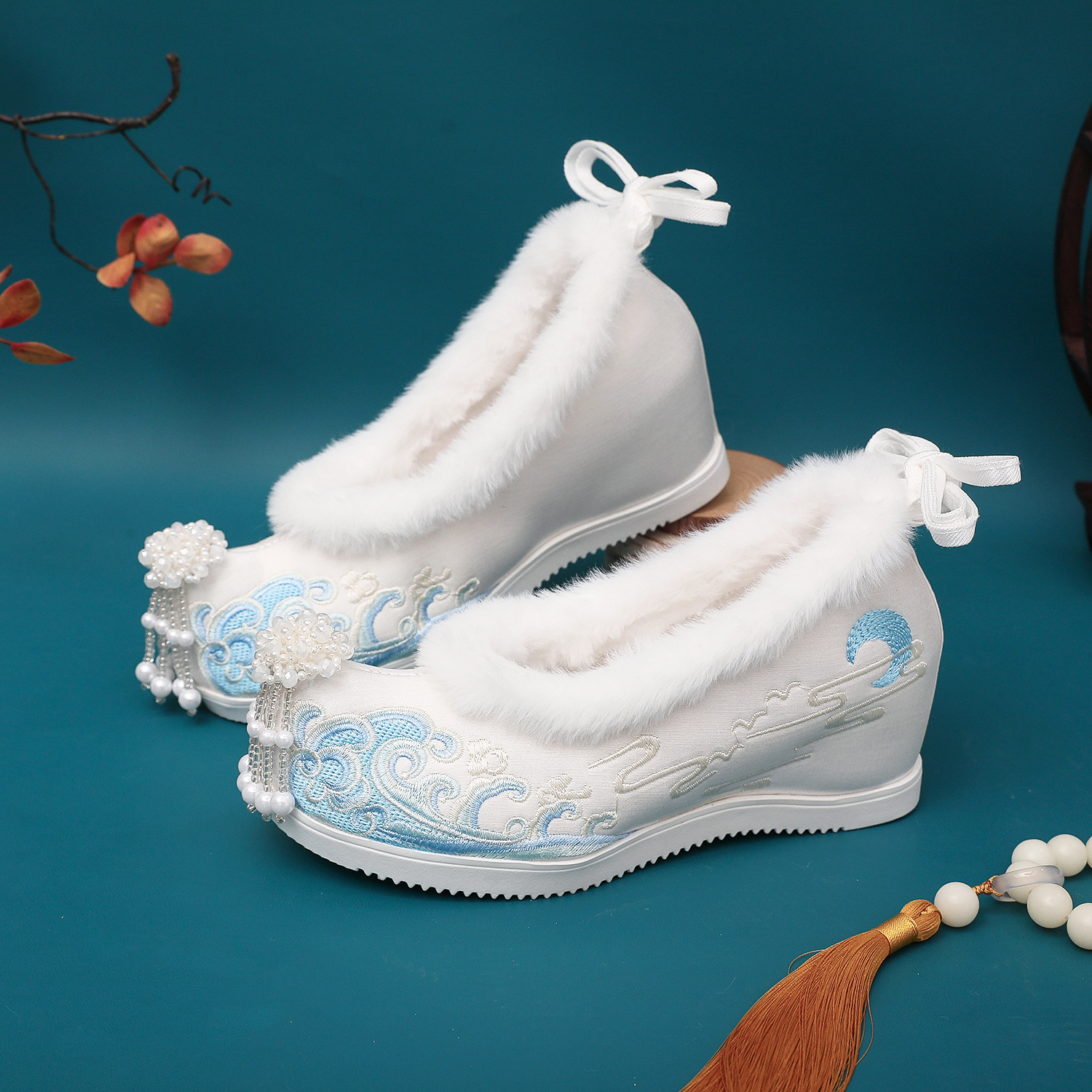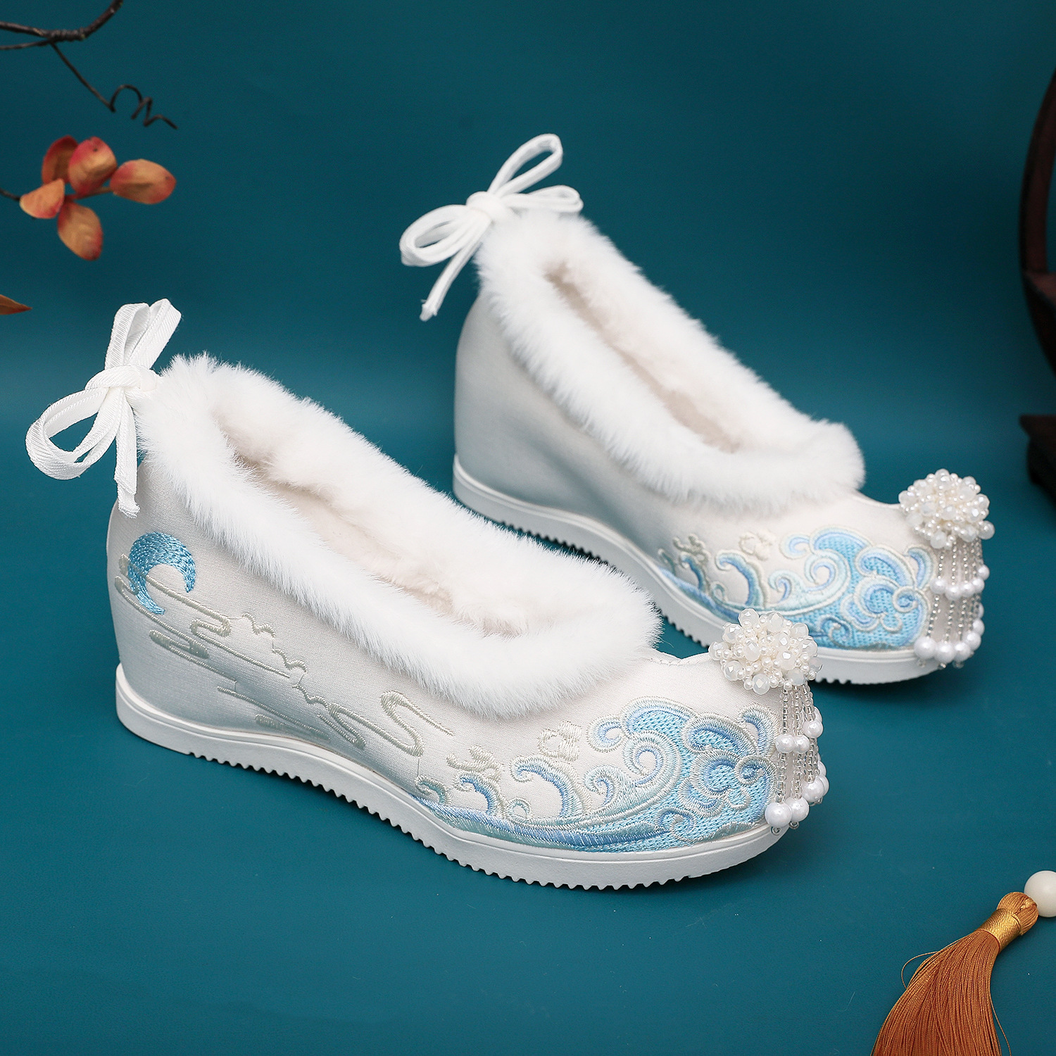 Sepatu Hanfu baru untuk wanita, sepatu bordir gaya kuno pelajar, sepatu Dalaman Hanfu penambah tinggi badan, sepatu gaya kuno