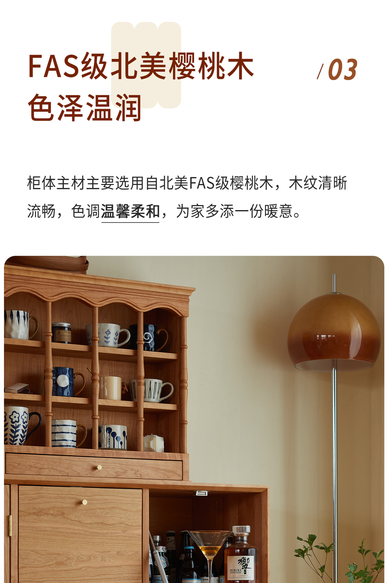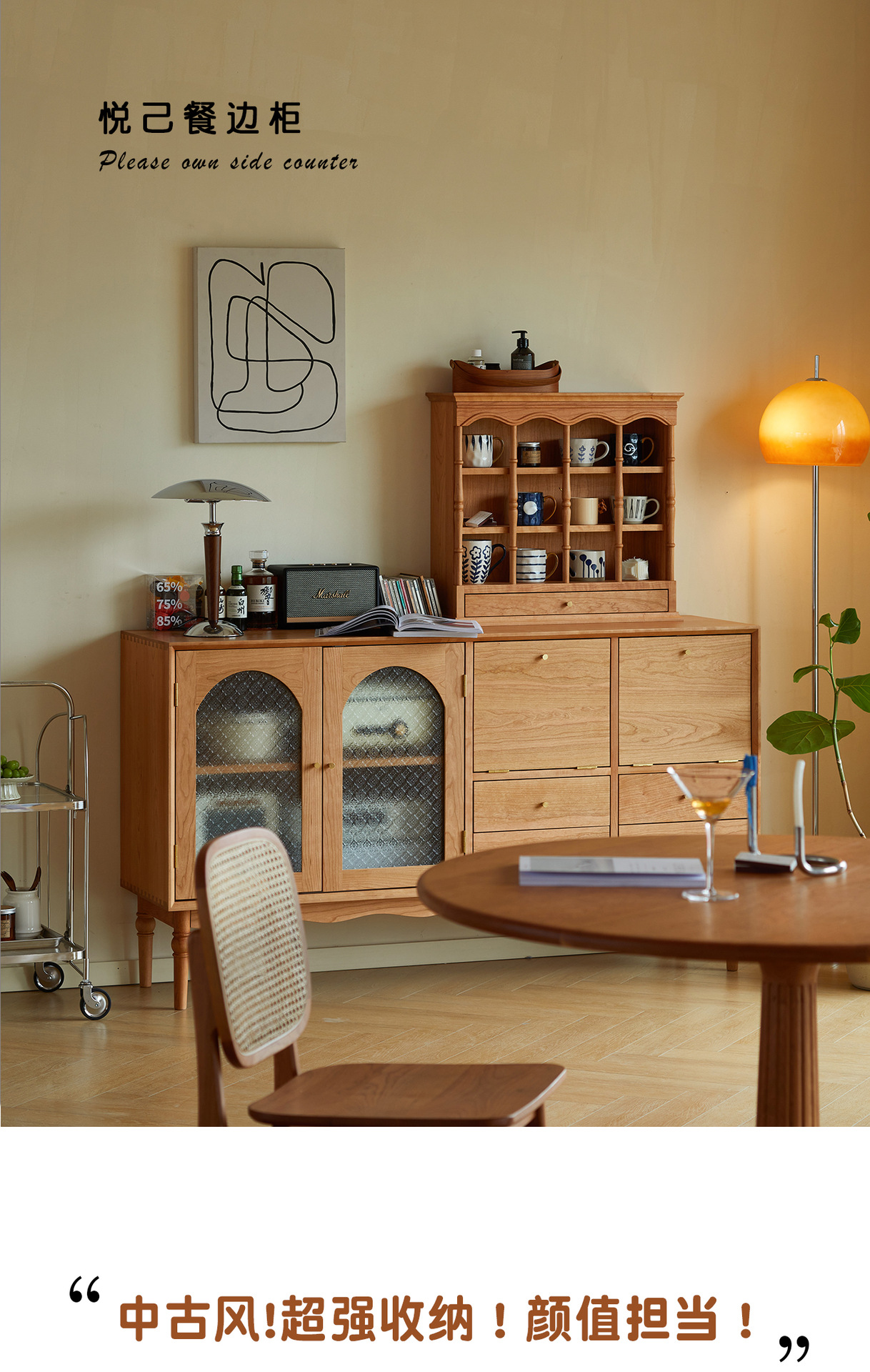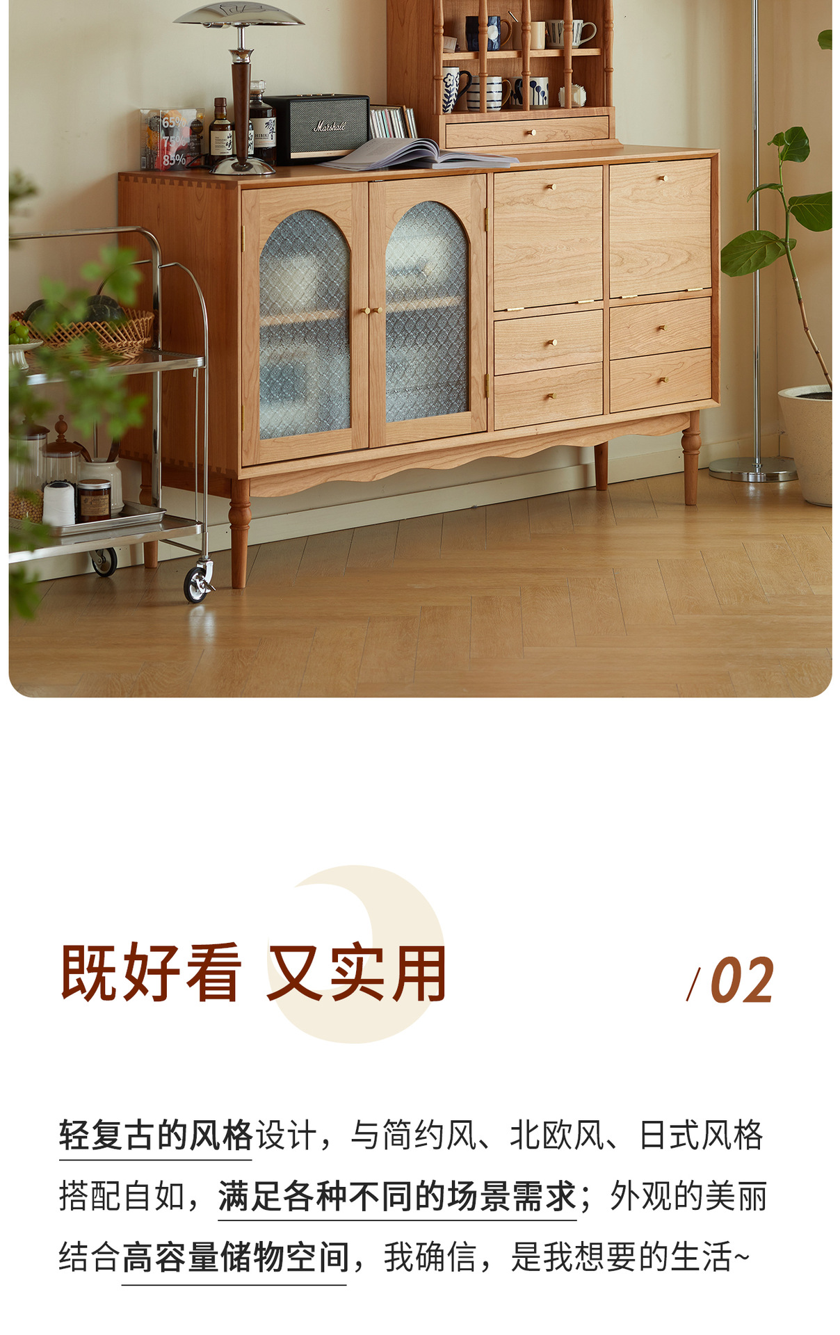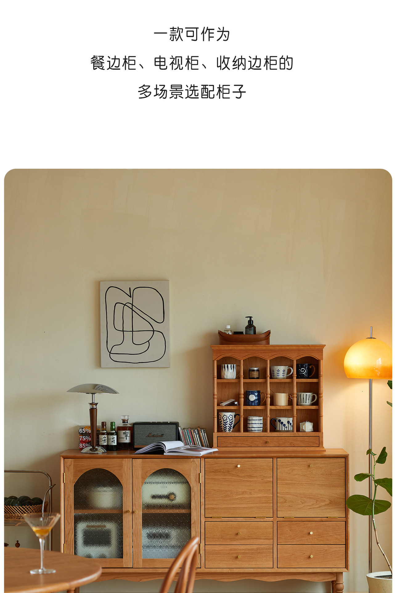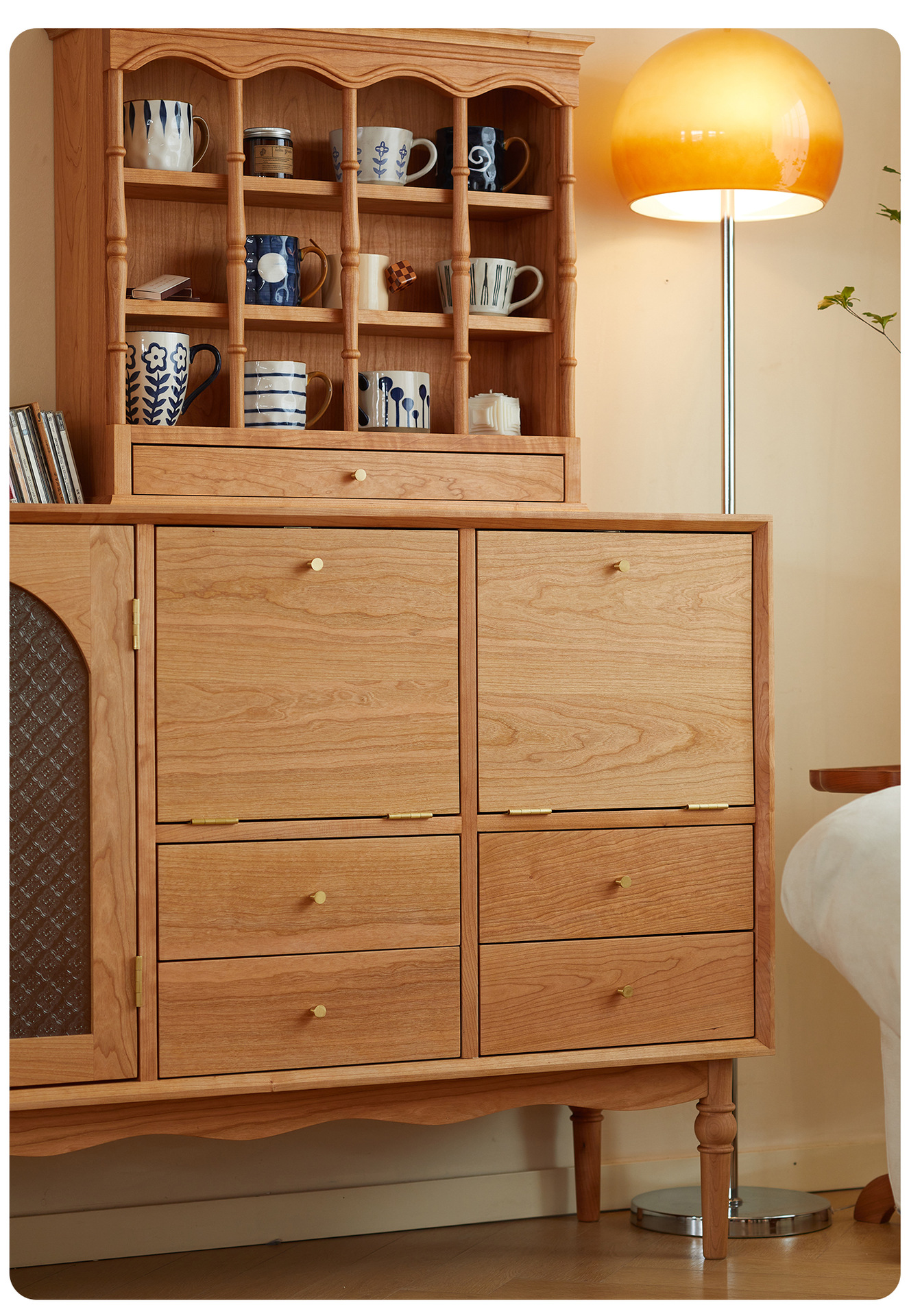Kabinet papan samping Nordik kayu padat modern minimalis gaya Jepang kayu ceri antik ruang tamu lemari anggur kabinet penyimpanan dapur loker