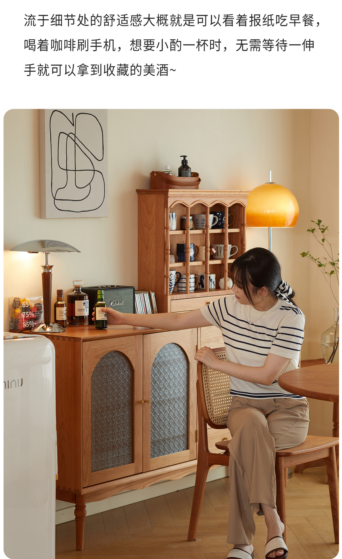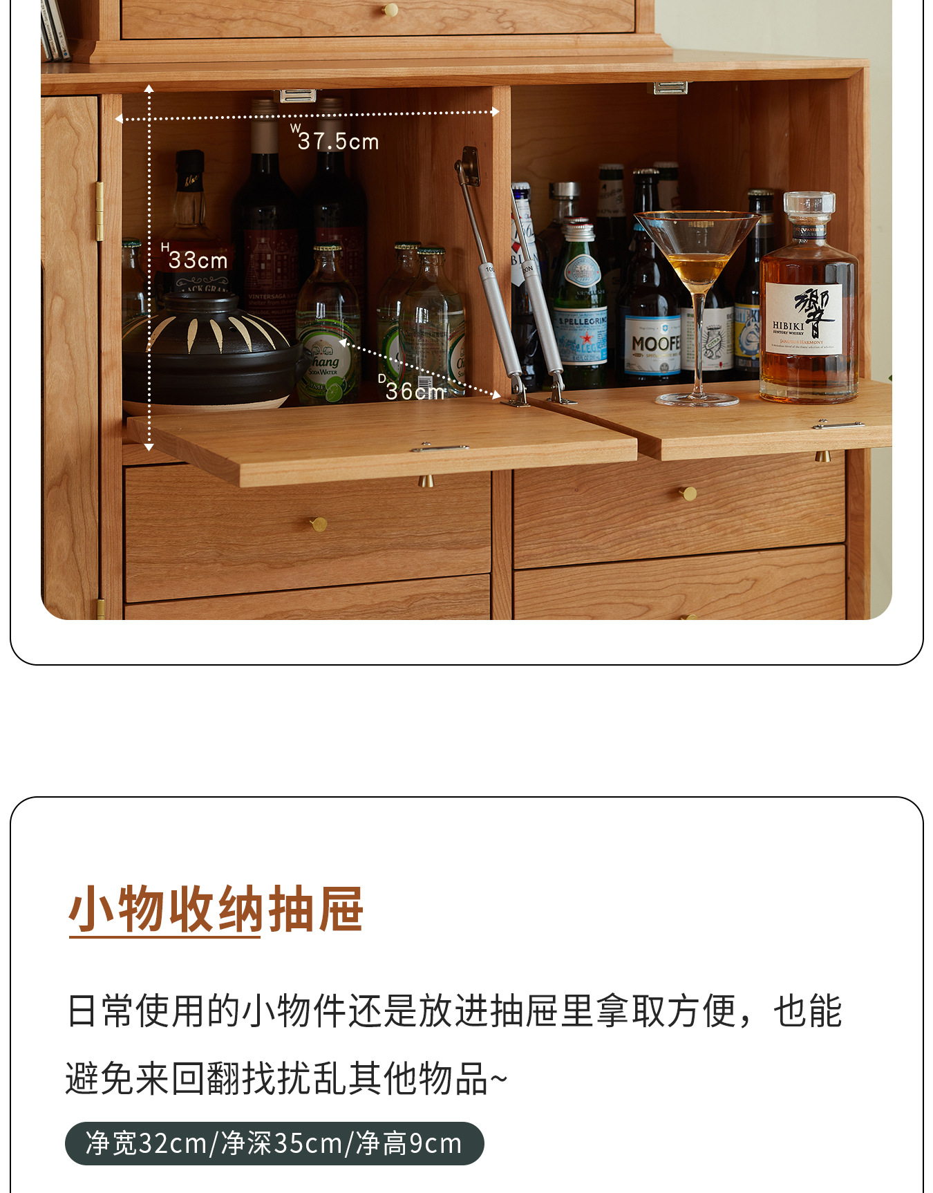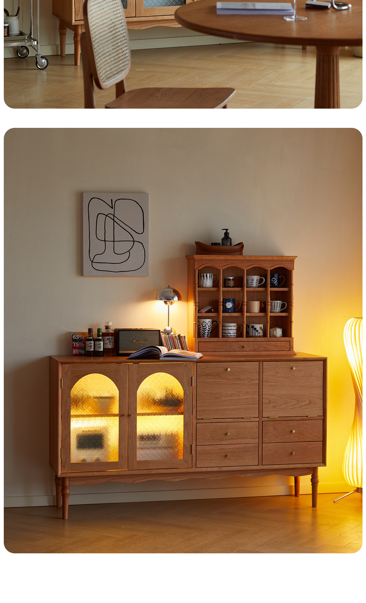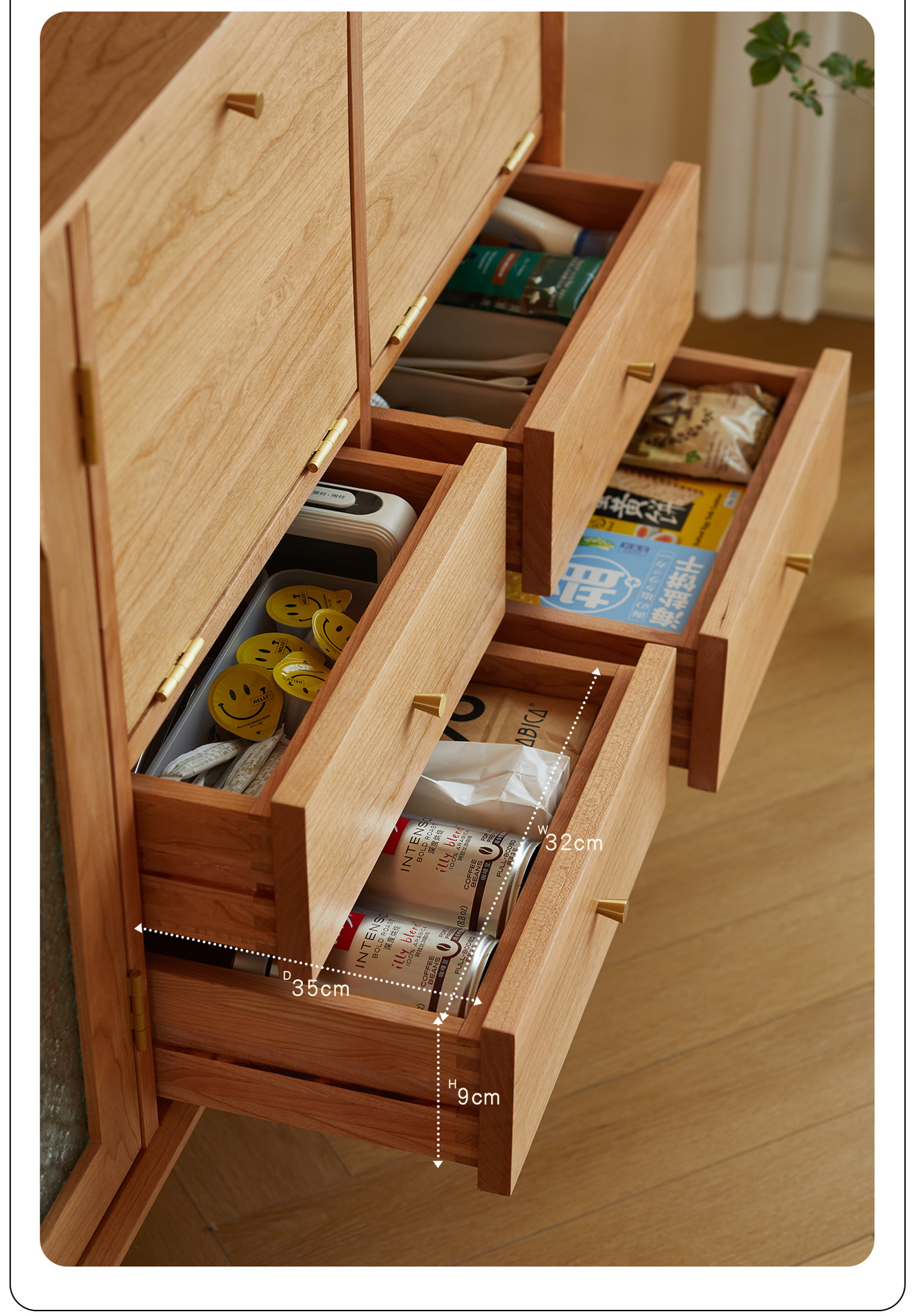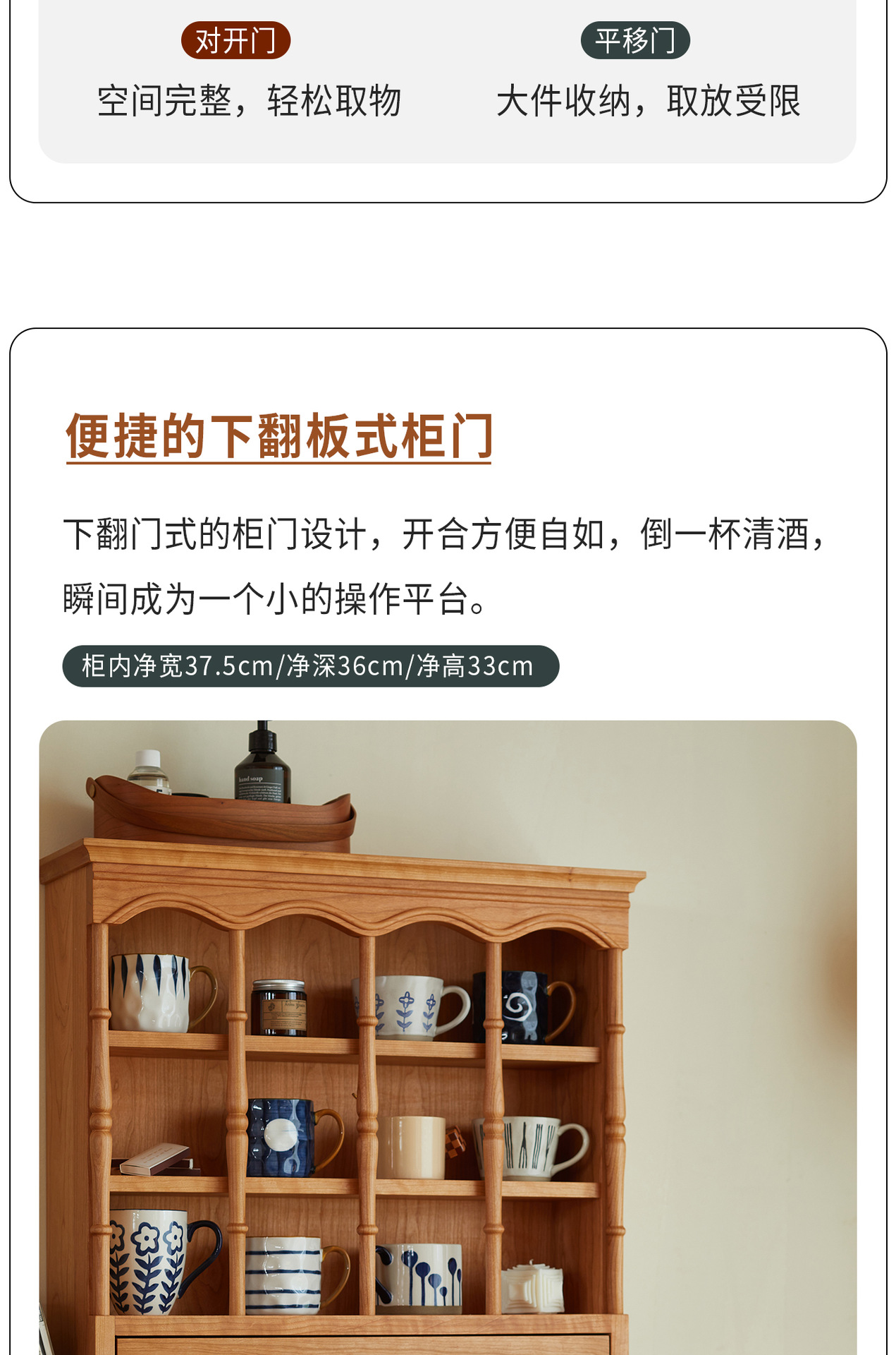 Kabinet papan samping Nordik kayu padat modern minimalis gaya Jepang kayu ceri antik ruang tamu lemari anggur kabinet penyimpanan dapur loker
