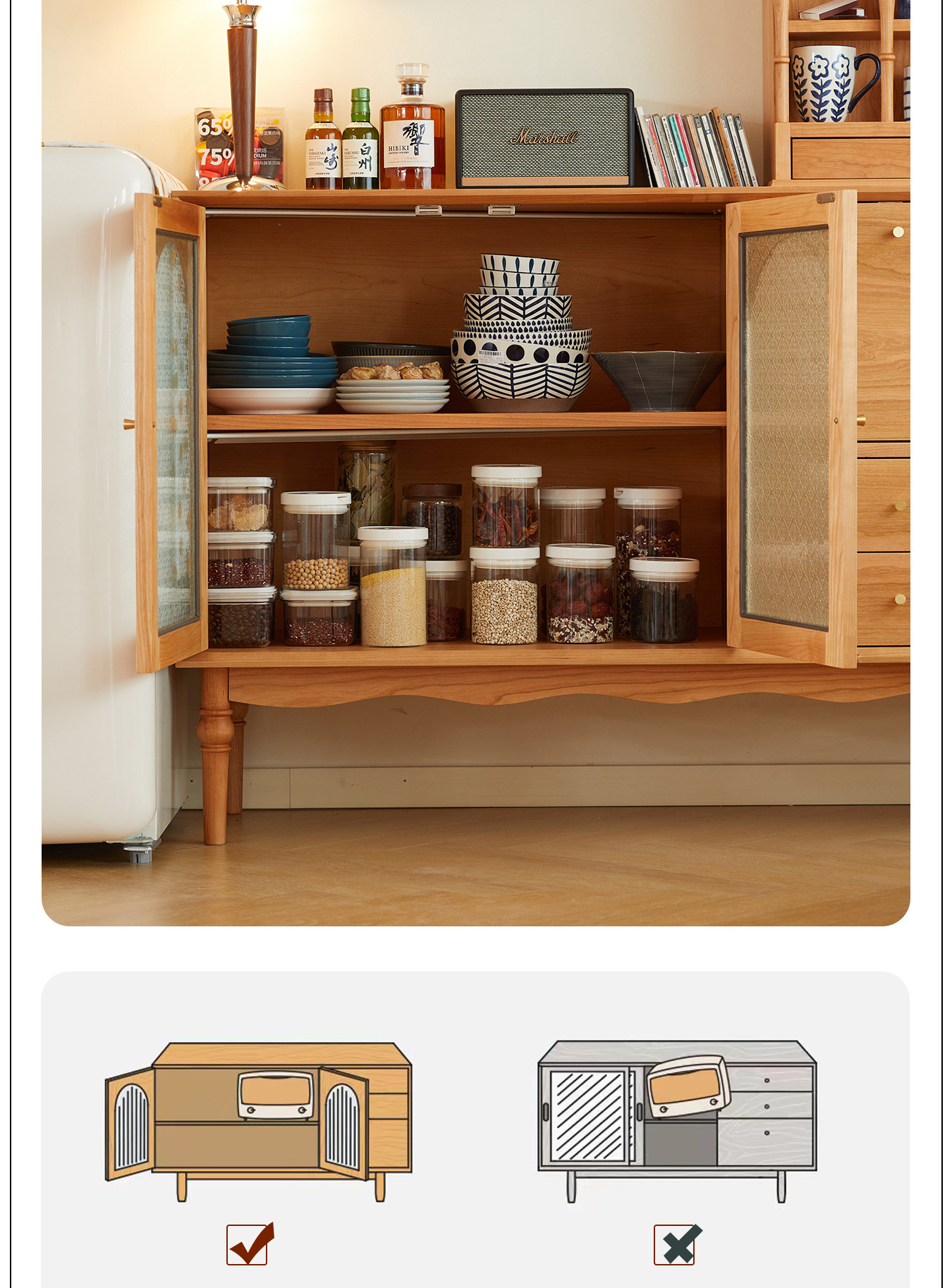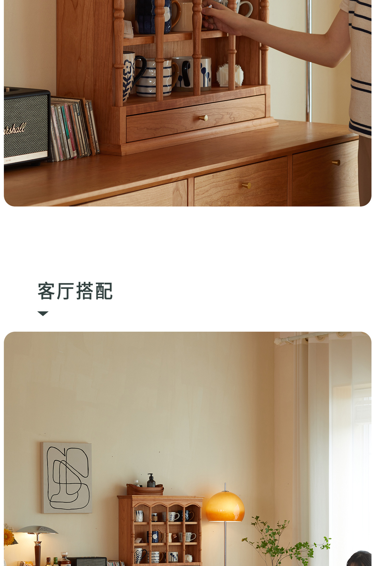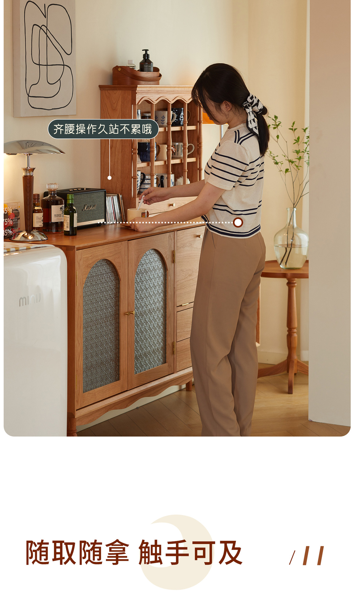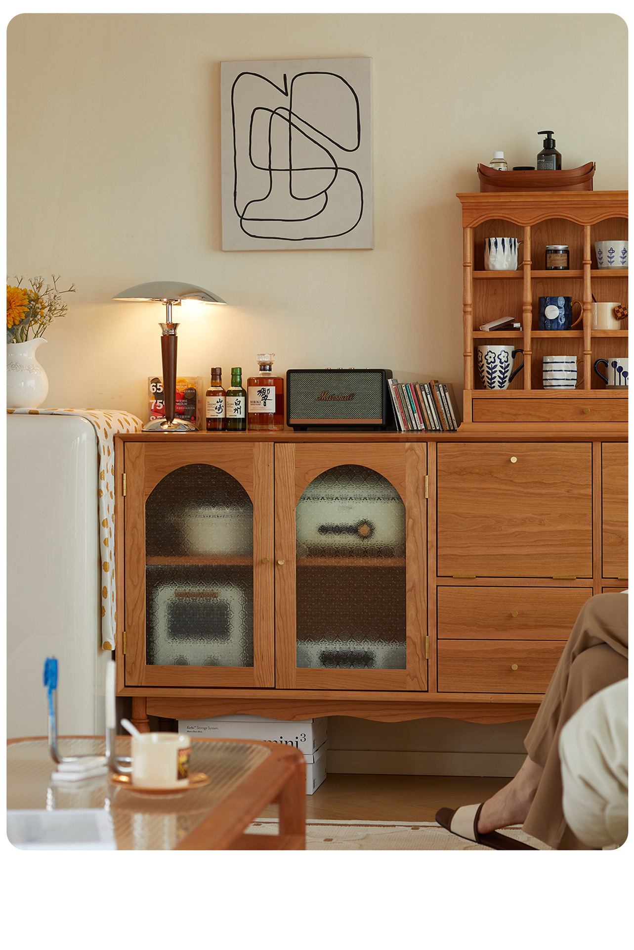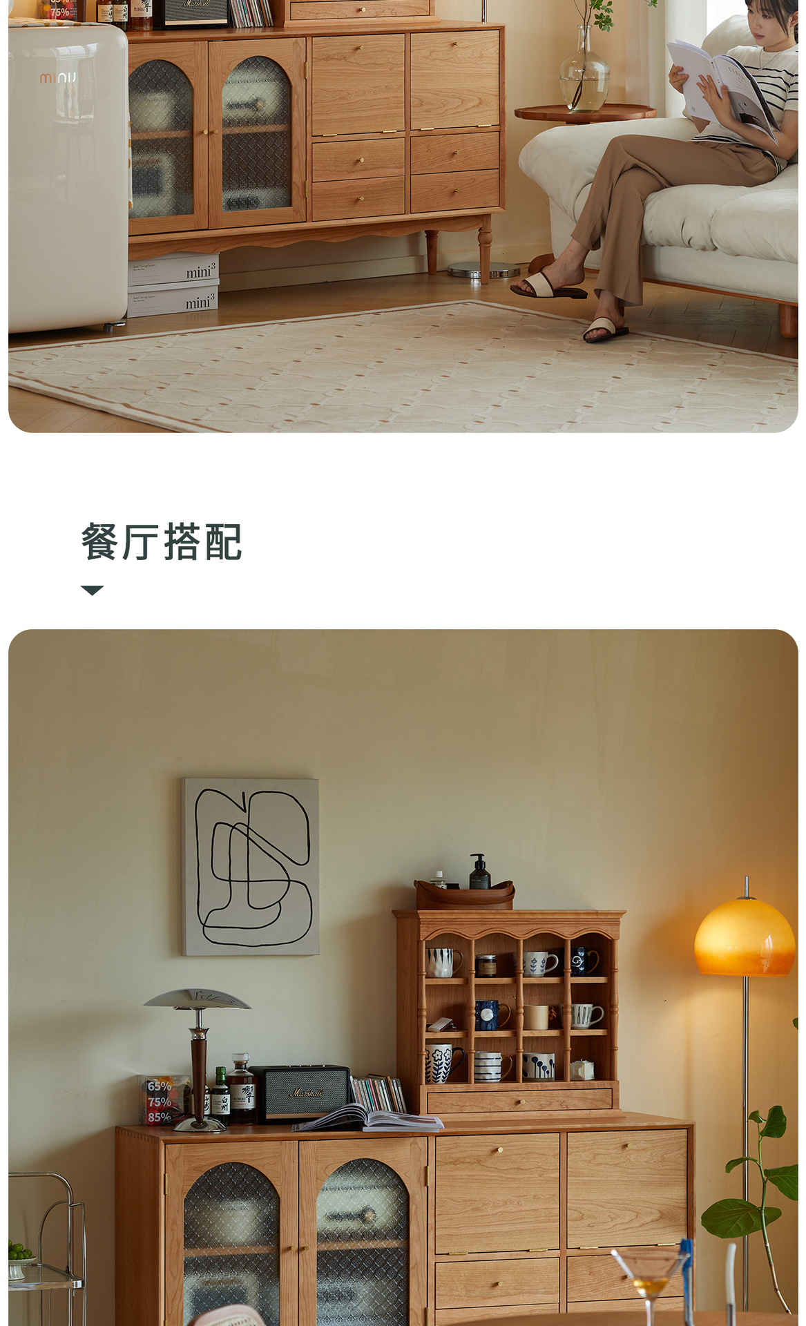Kabinet papan samping Nordik kayu padat modern minimalis gaya Jepang kayu ceri antik ruang tamu lemari anggur kabinet penyimpanan dapur loker