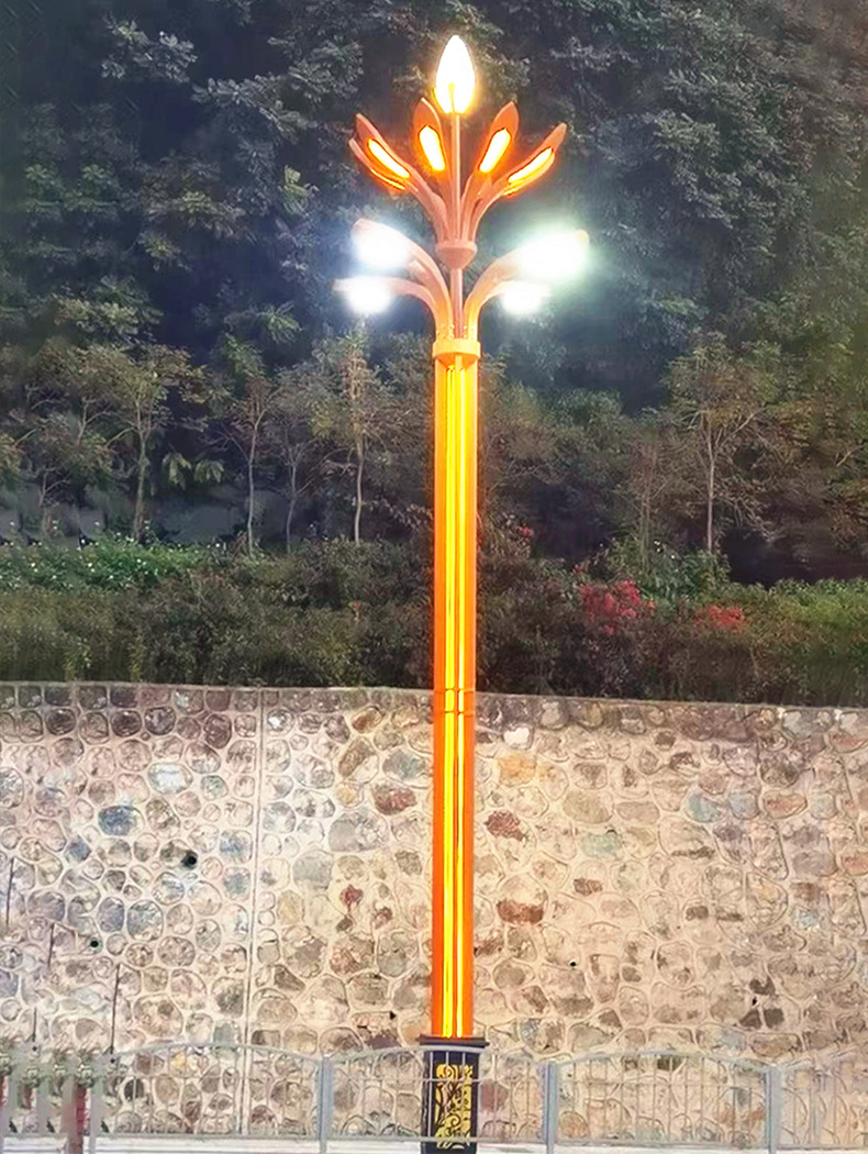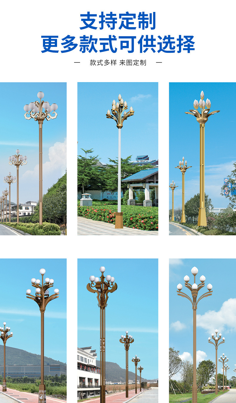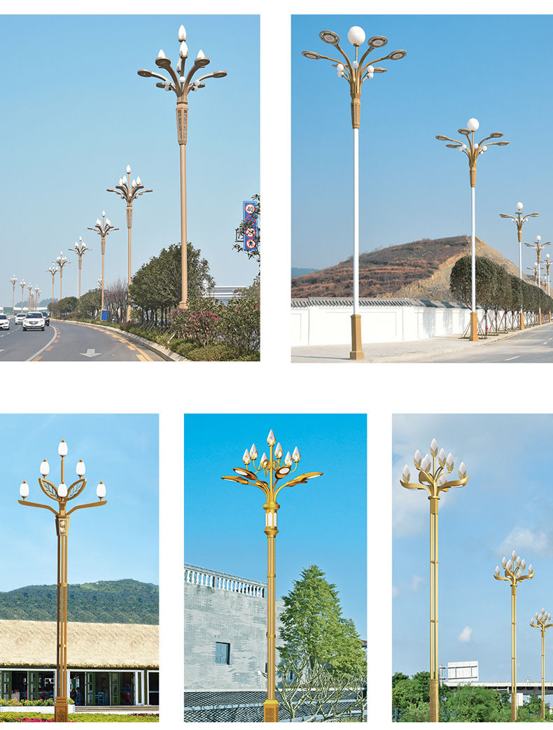Delapan garpu sembilan api luar ruangan lampu Magnolia tiang tinggi multi-kepala lampu jalan tiang tinggi jalan persegi pencahayaan rekayasa kota lampu Magnolia