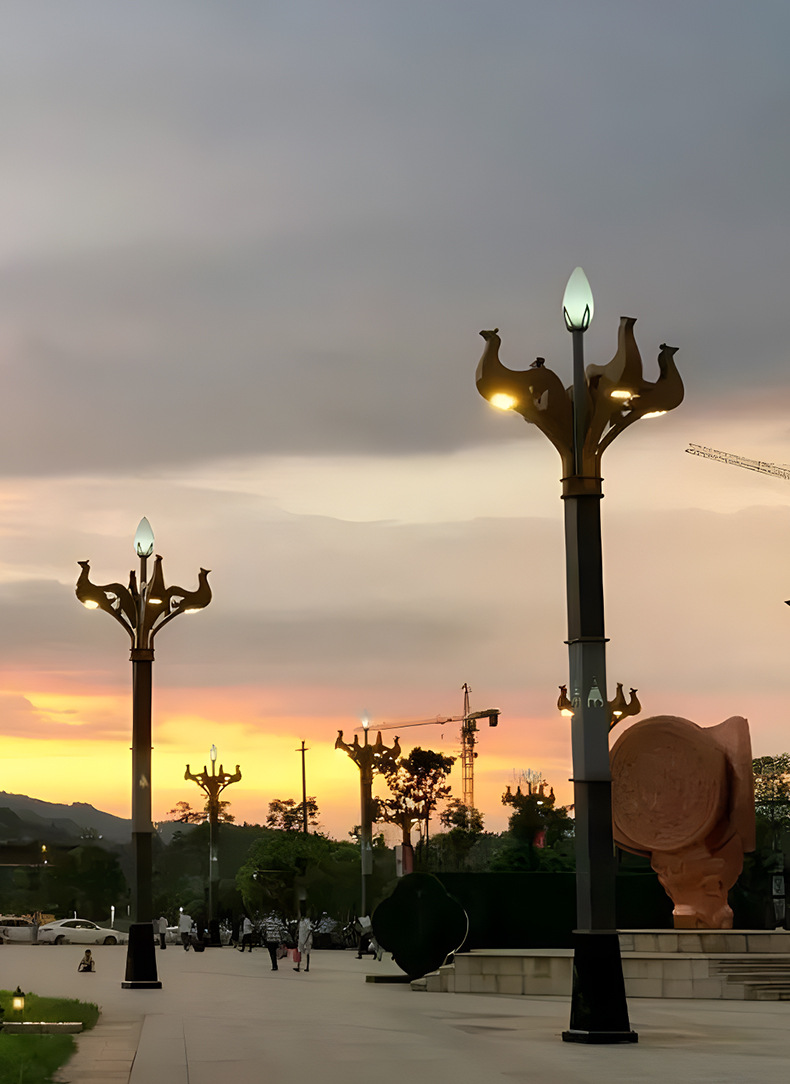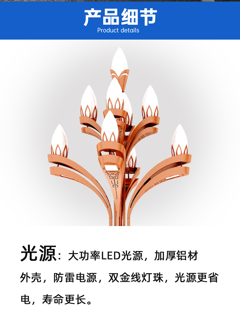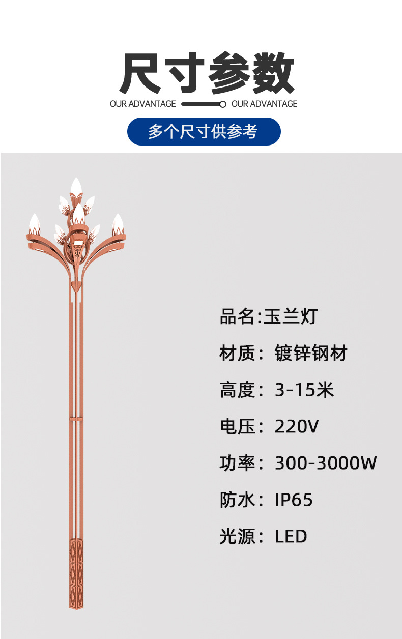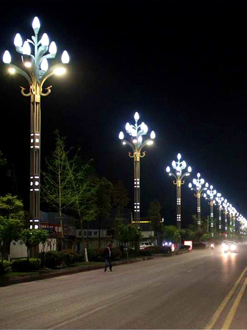 Delapan garpu sembilan api luar ruangan lampu Magnolia tiang tinggi multi-kepala lampu jalan tiang tinggi jalan persegi pencahayaan rekayasa kota lampu Magnolia