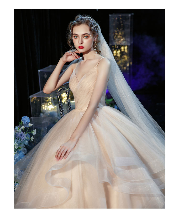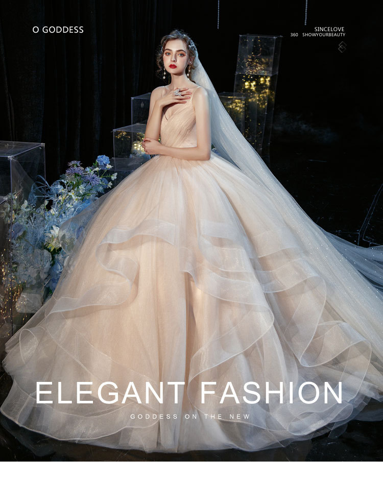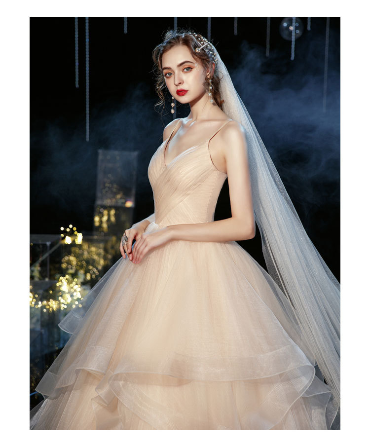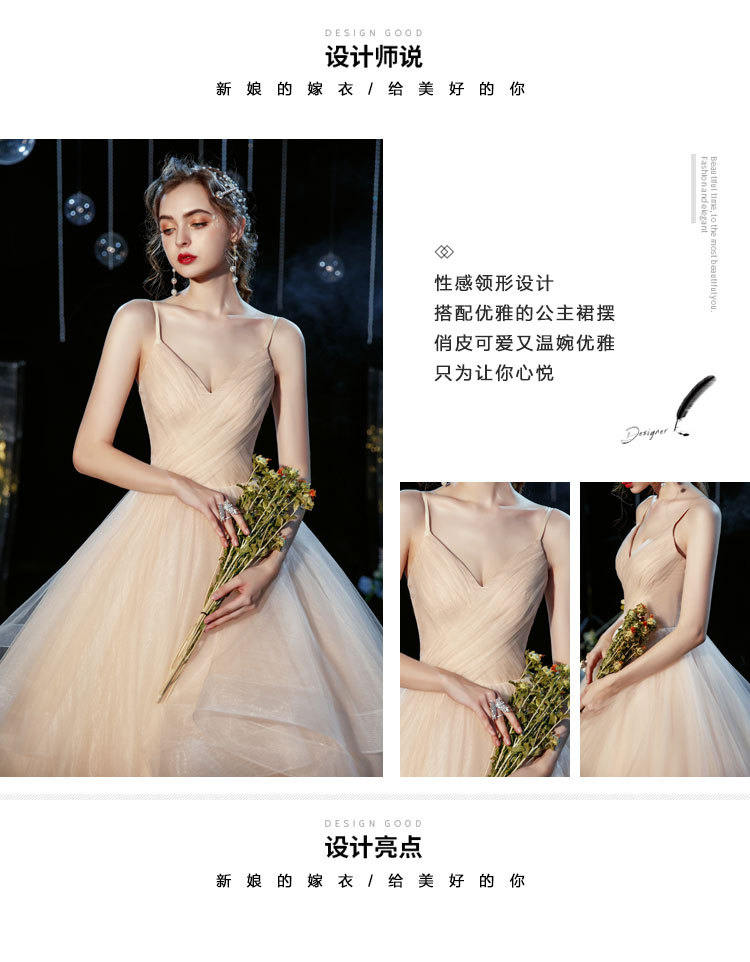 简约轻婚纱森系超仙旅拍显瘦白色长款吊带出门纱小个子轻纱小礼服