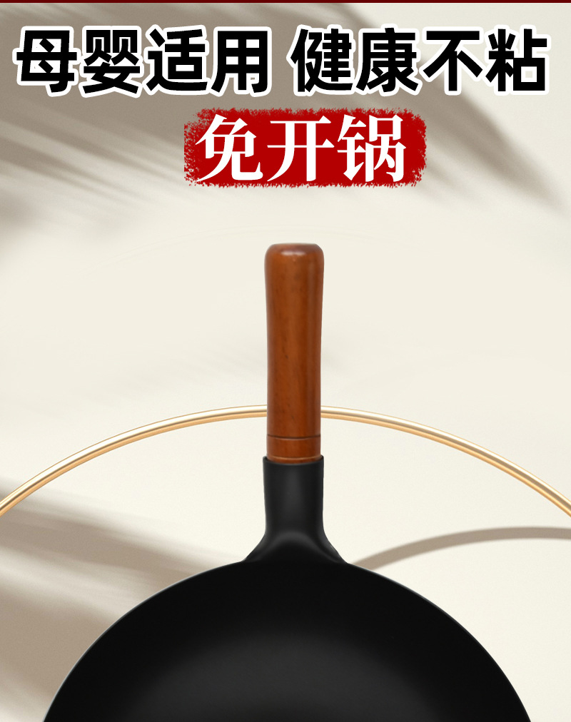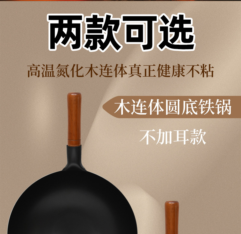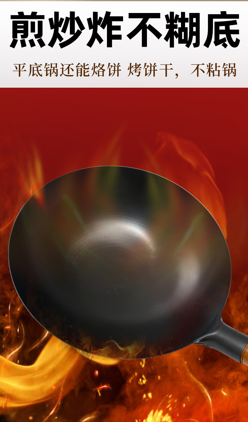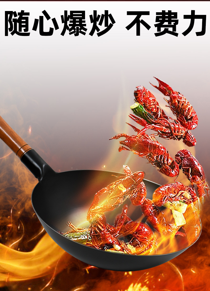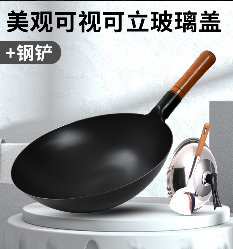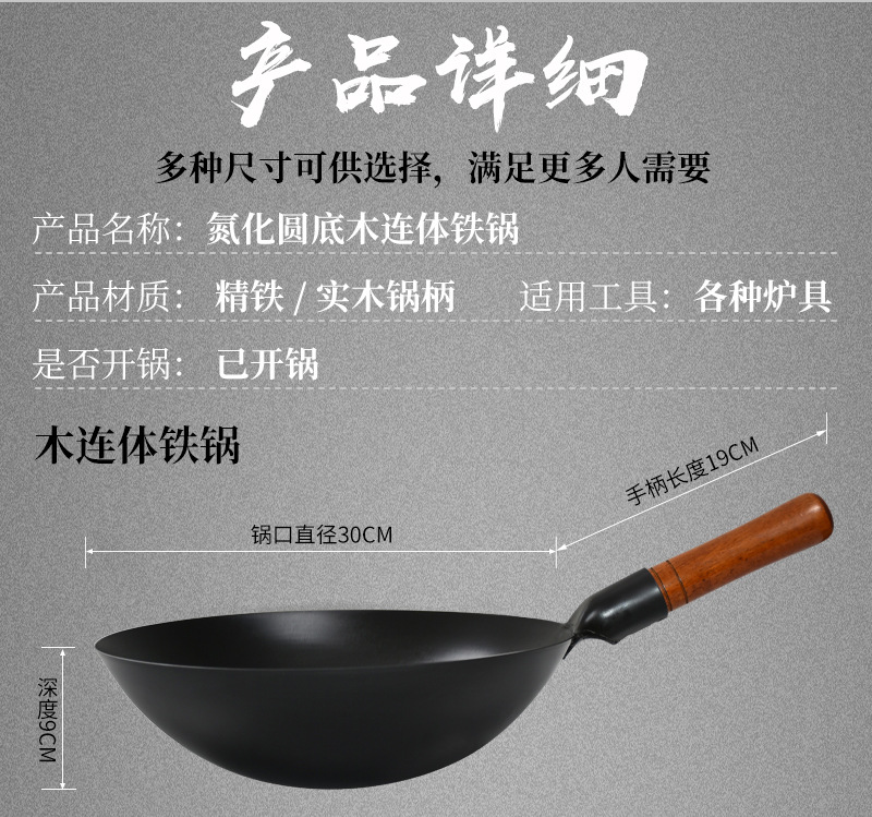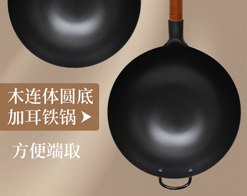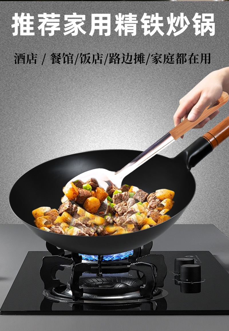 Grosir pot besi halus kuno tradisional wok tidak dilapisi pasar malam jualan komersial matang pot besi bulat bawah wajan rumah tangga