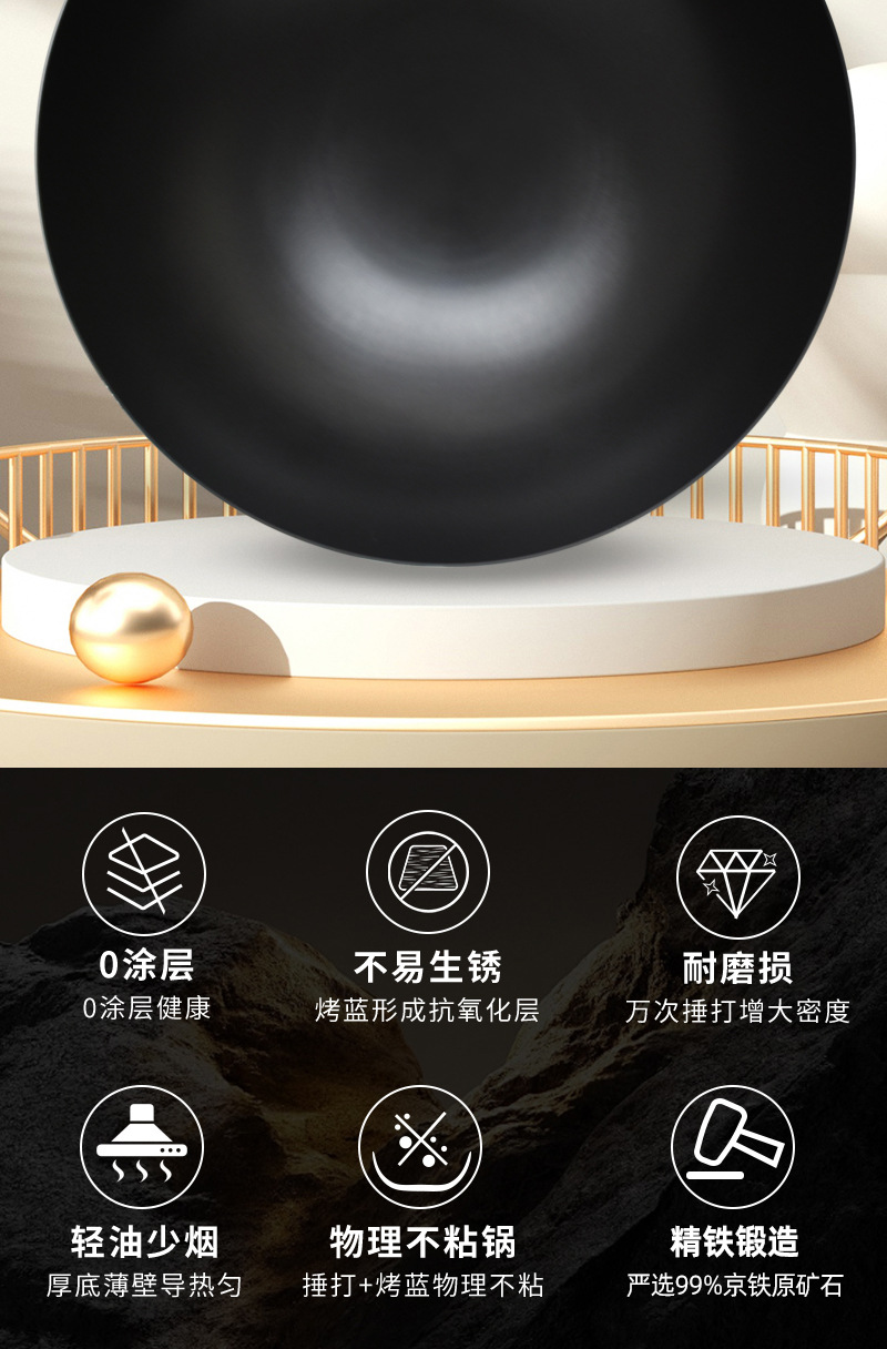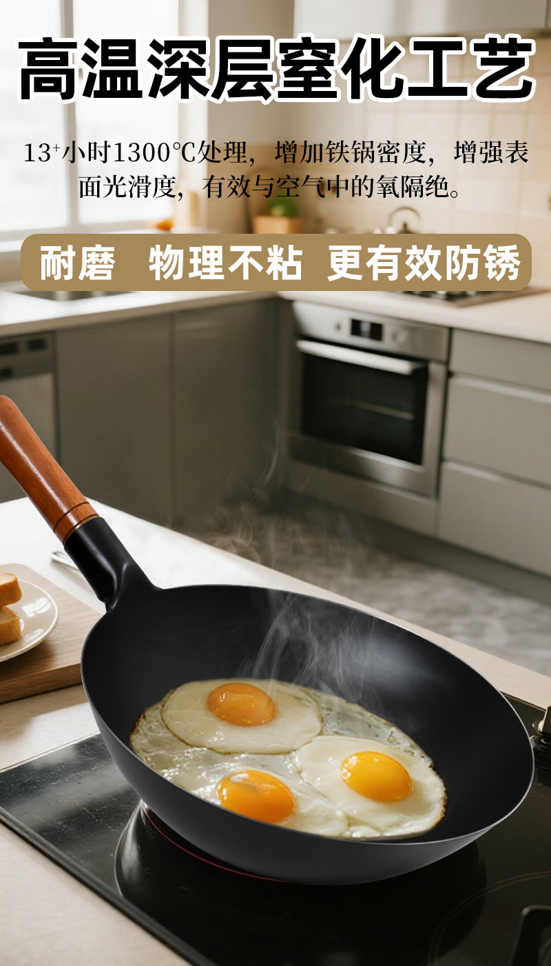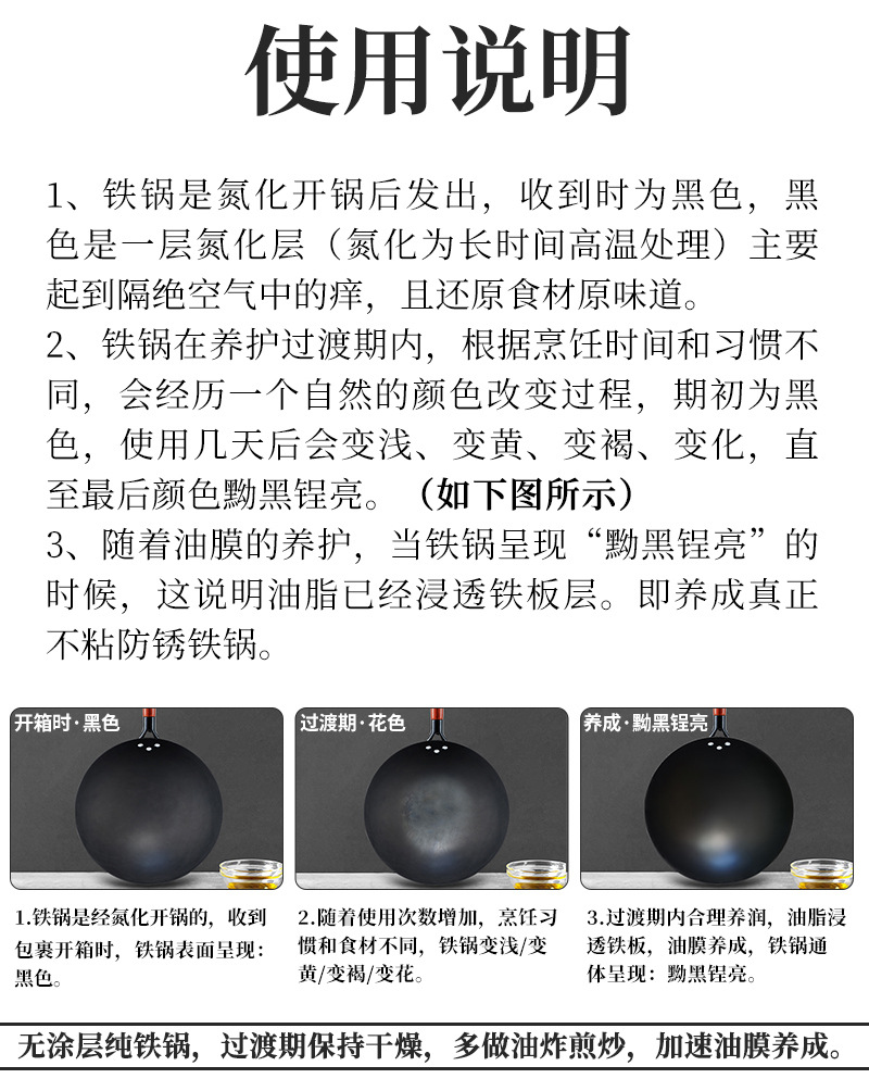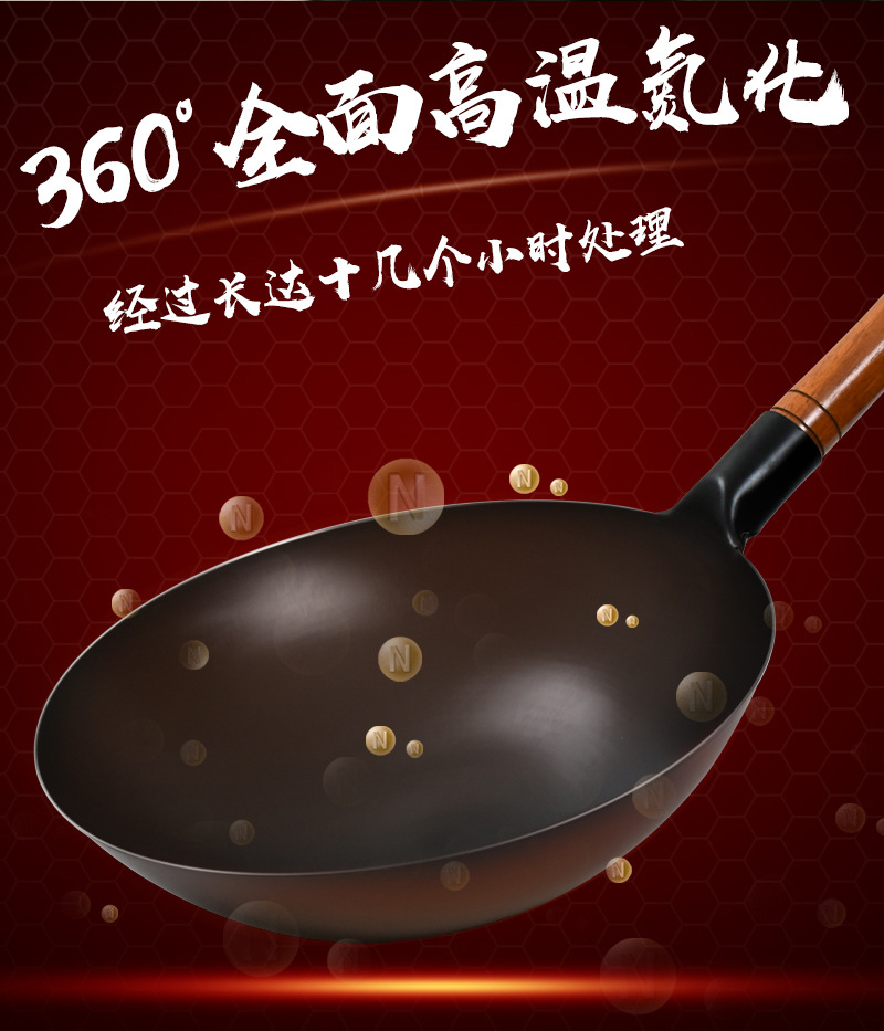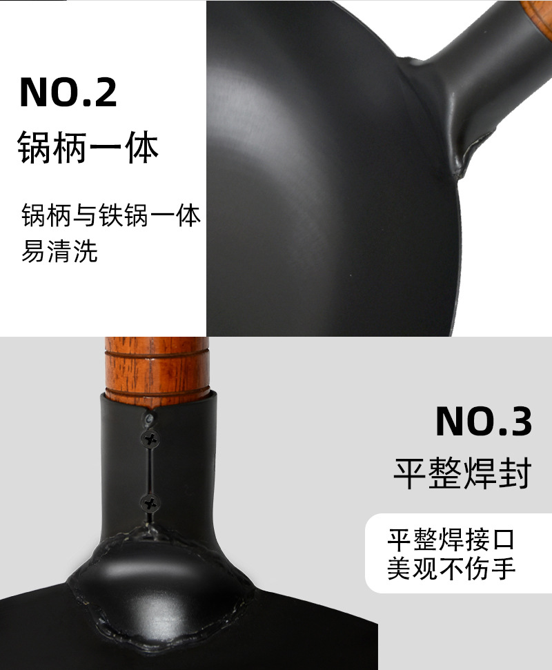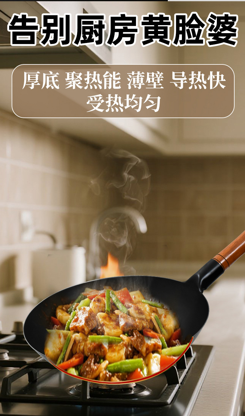 Grosir pot besi halus kuno tradisional wok tidak dilapisi pasar malam jualan komersial matang pot besi bulat bawah wajan rumah tangga