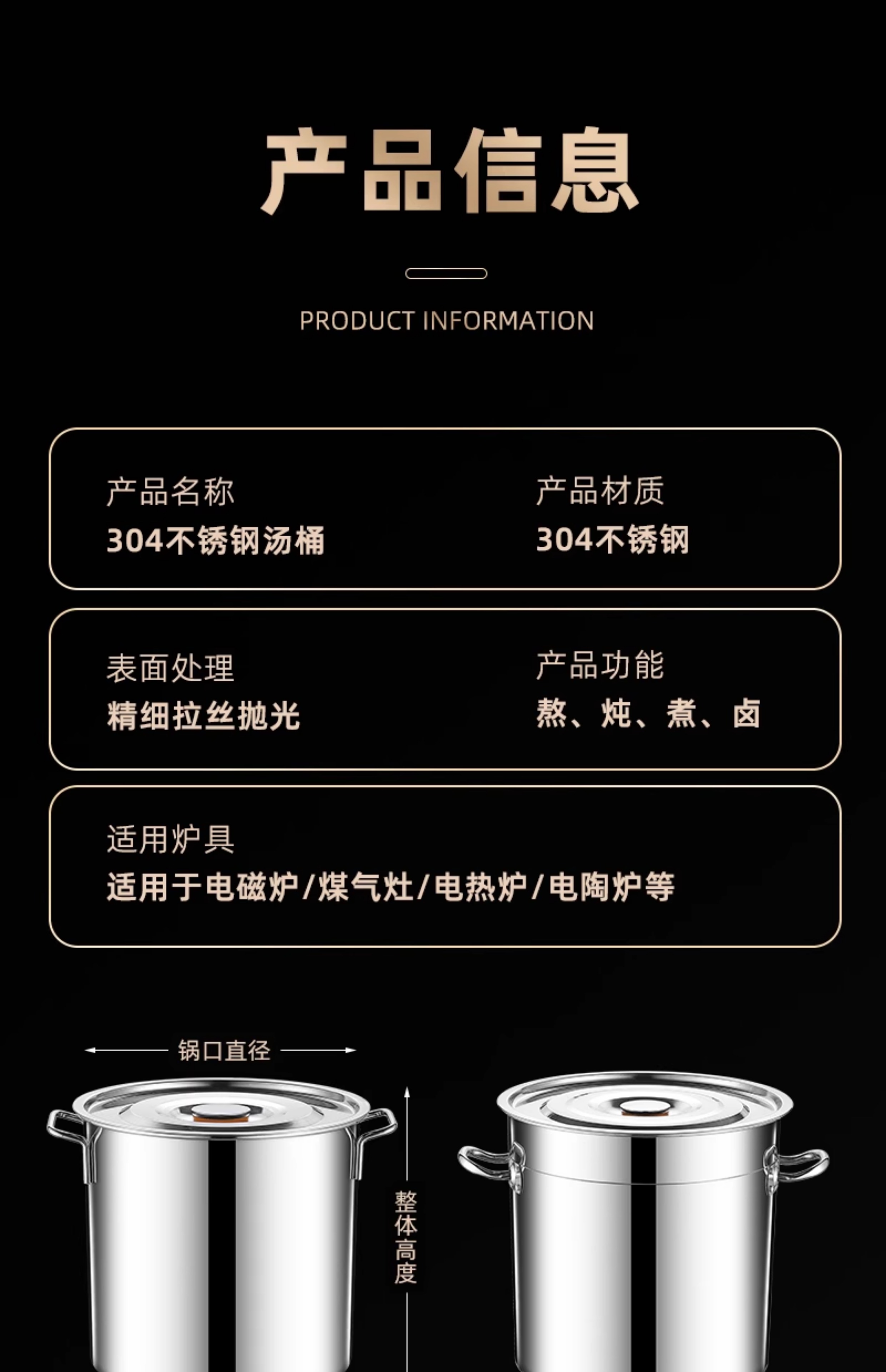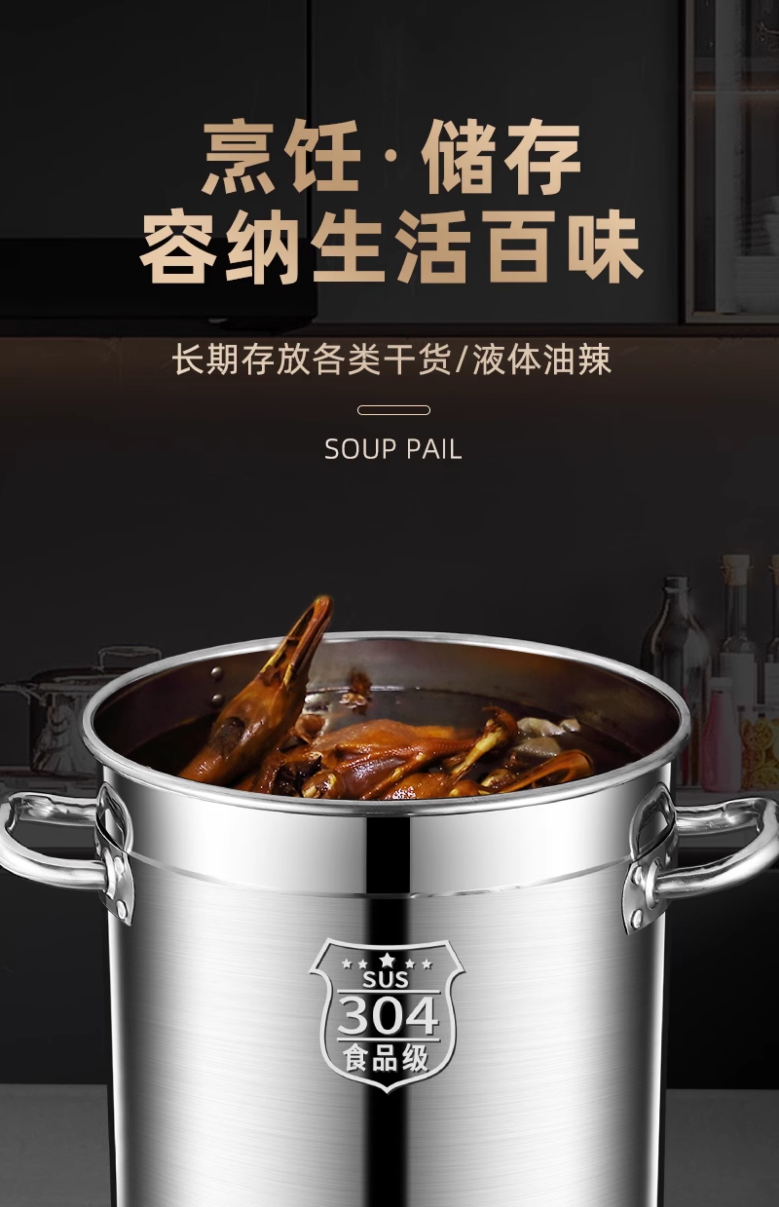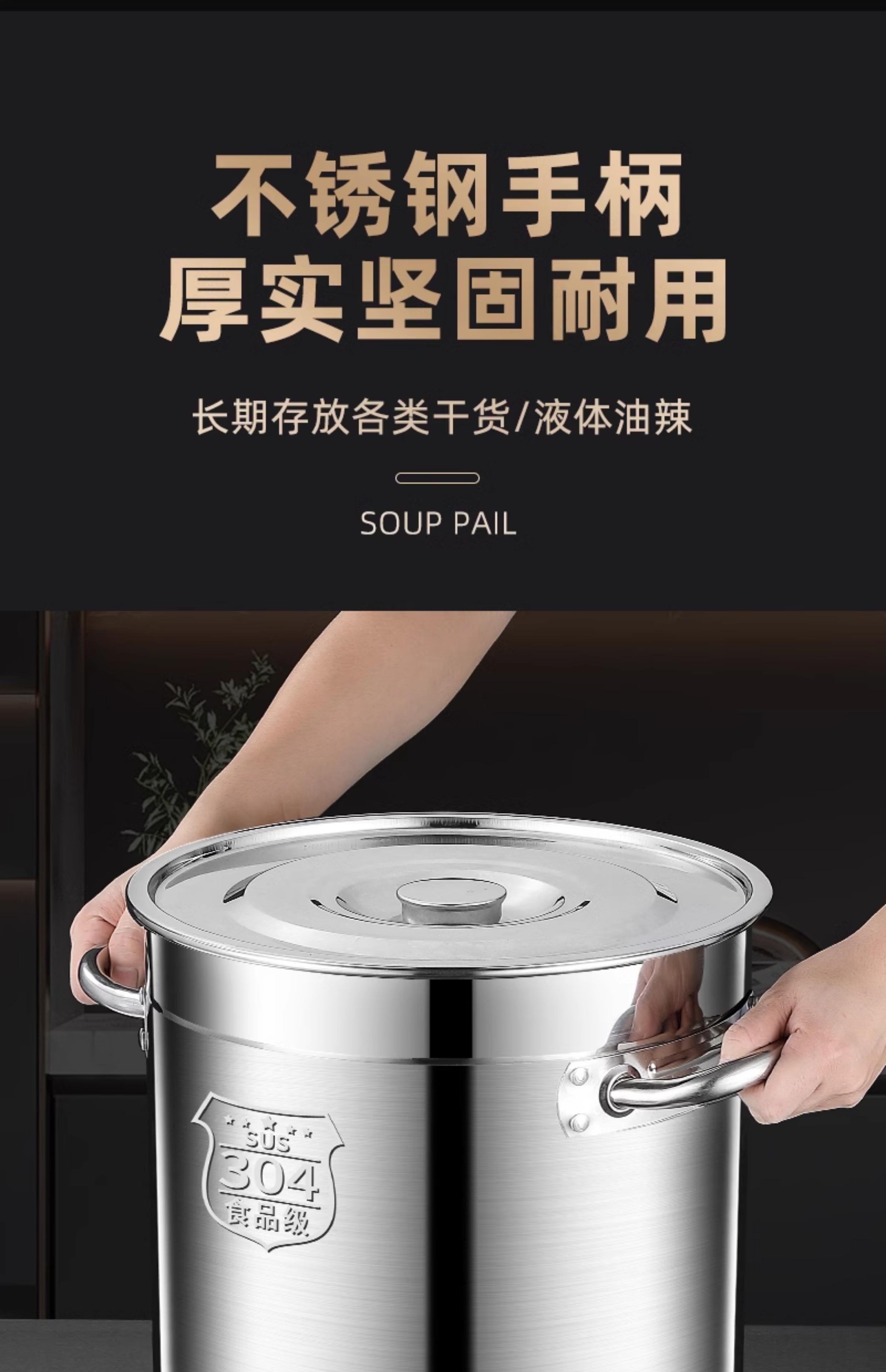 304不锈钢桶食品级圆桶带盖大容量不锈钢卤水汤锅50熬汤桶发帮云