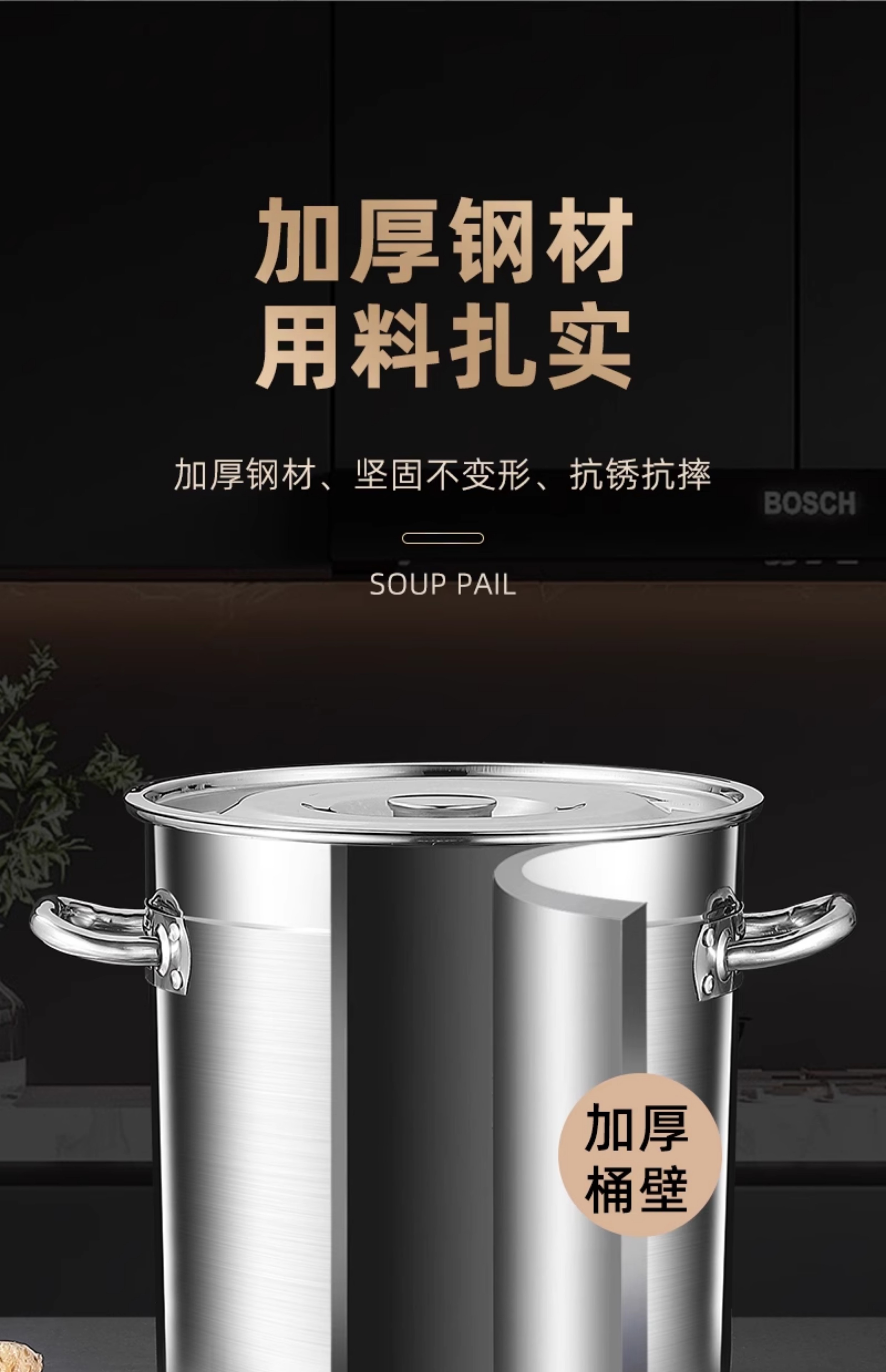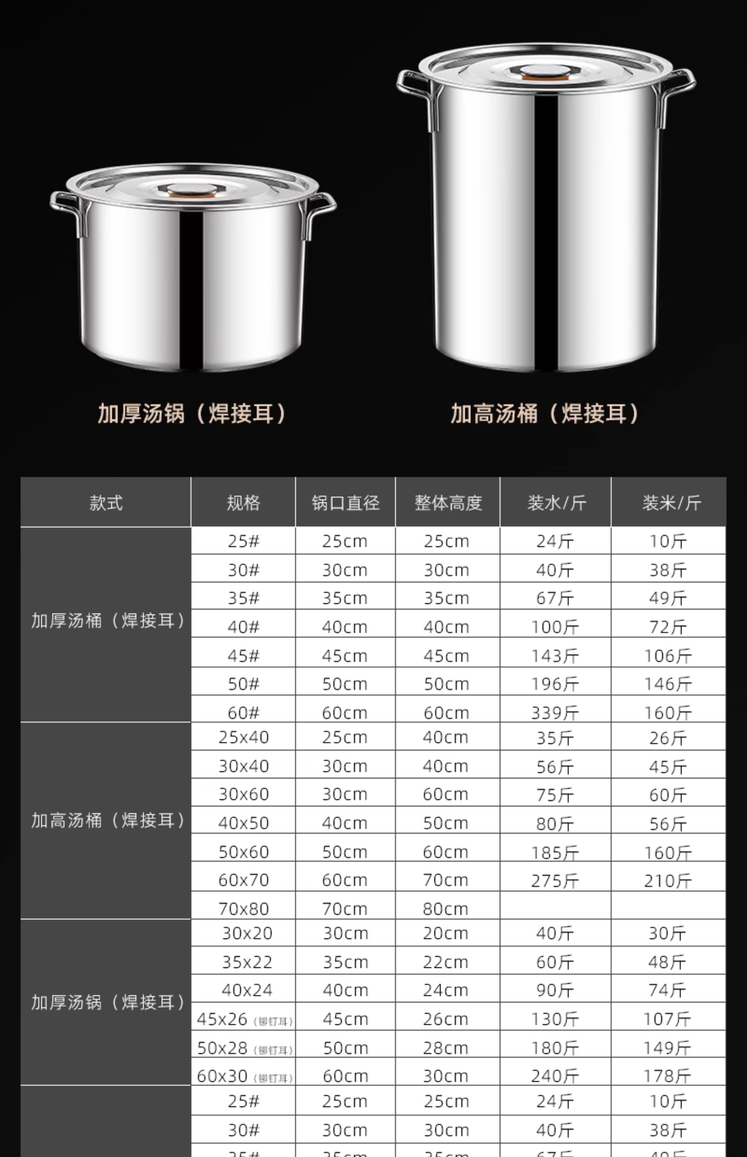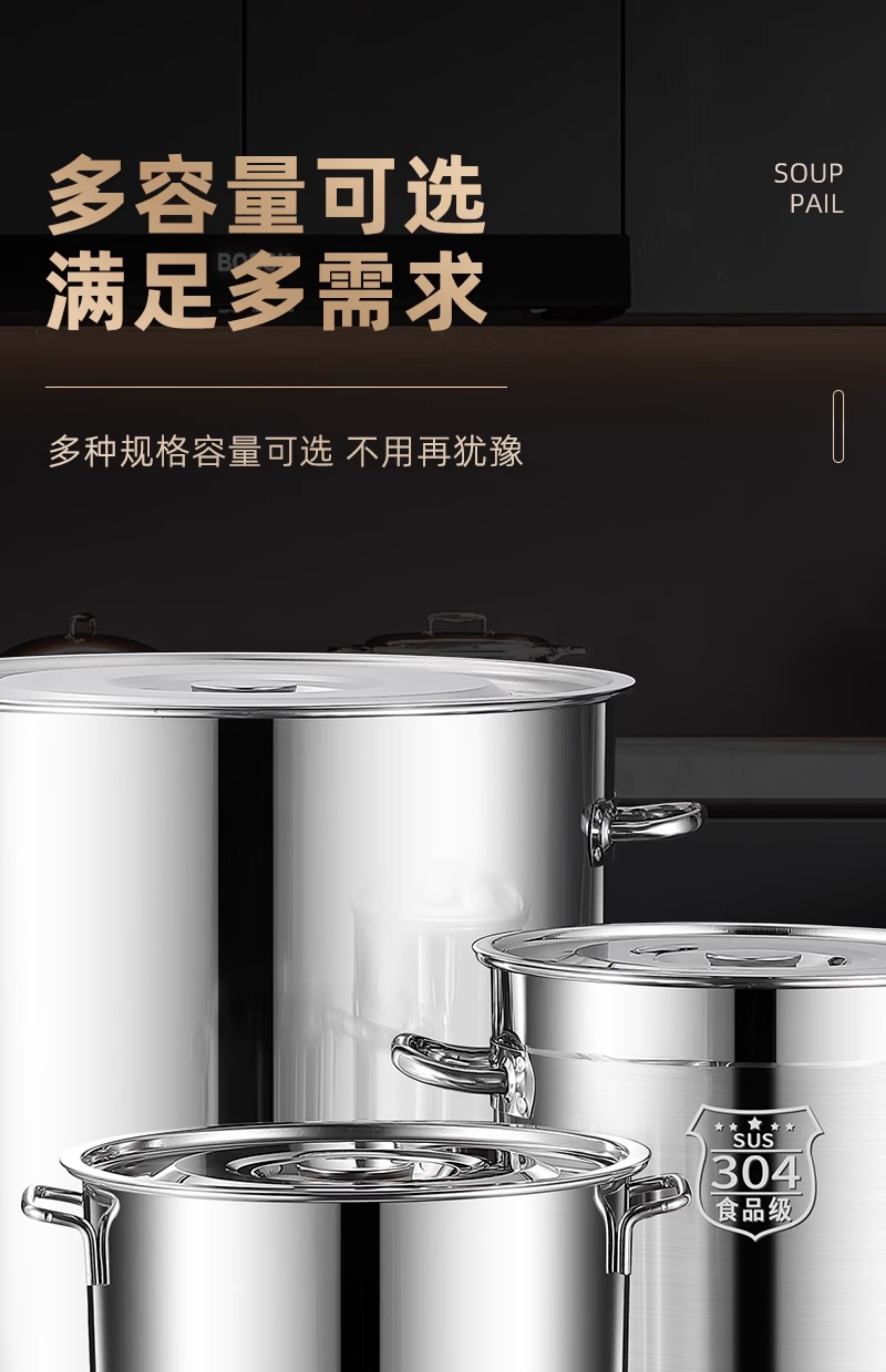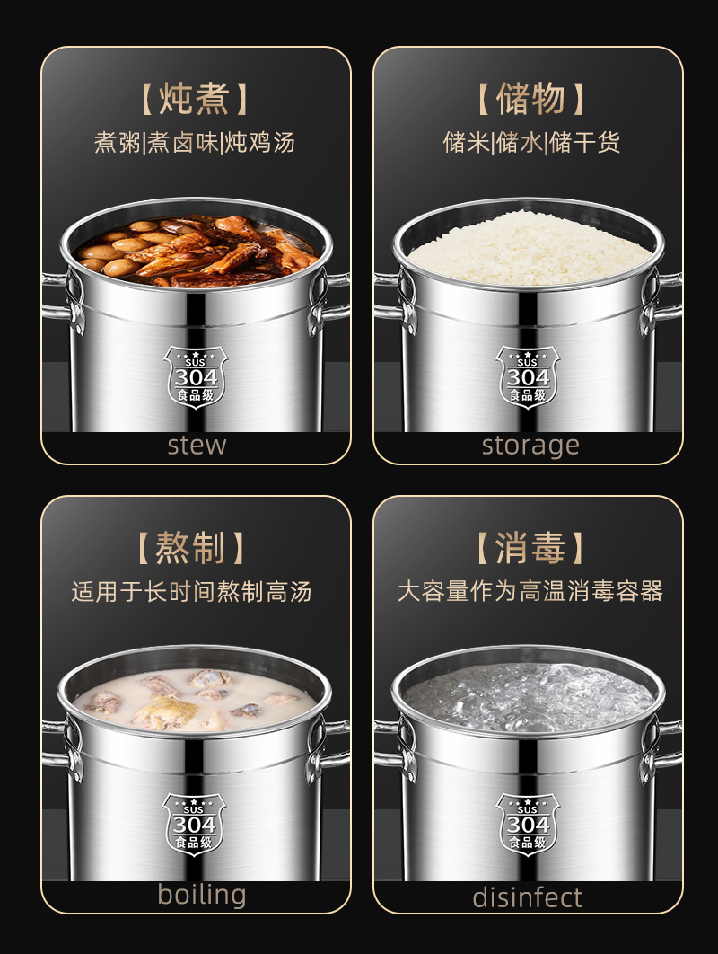 304不锈钢桶食品级圆桶带盖大容量不锈钢卤水汤锅50熬汤桶发帮云