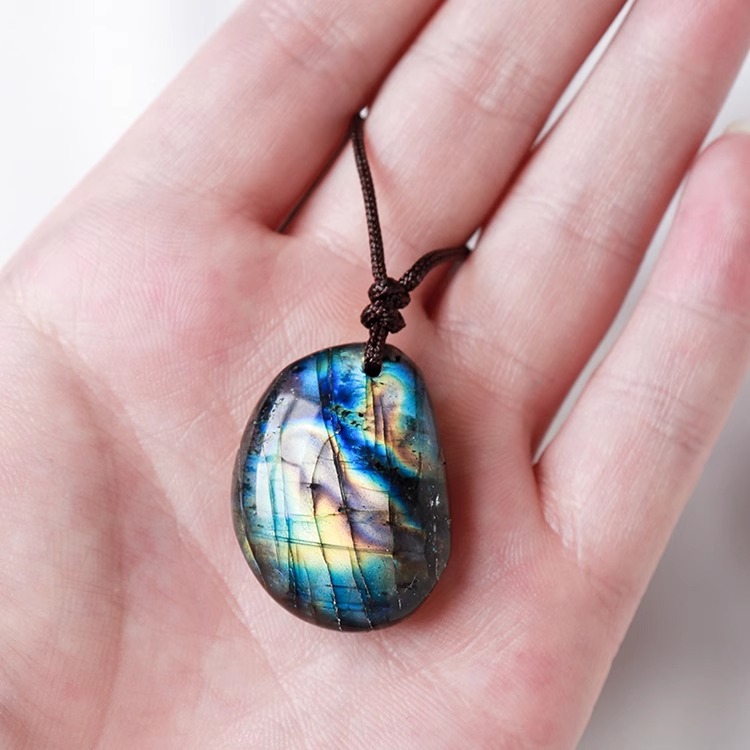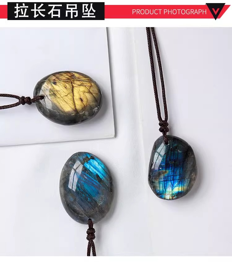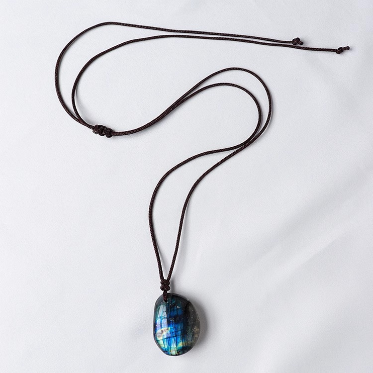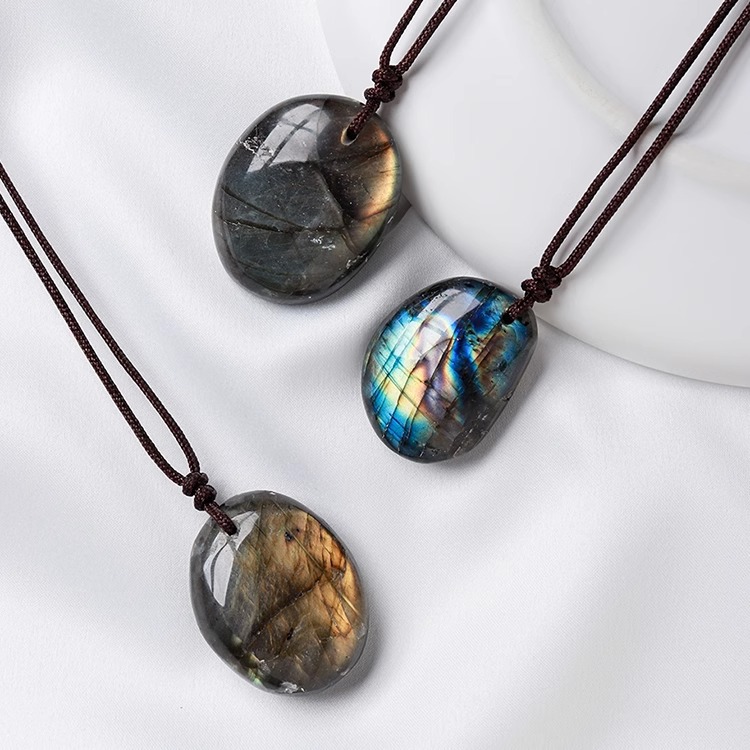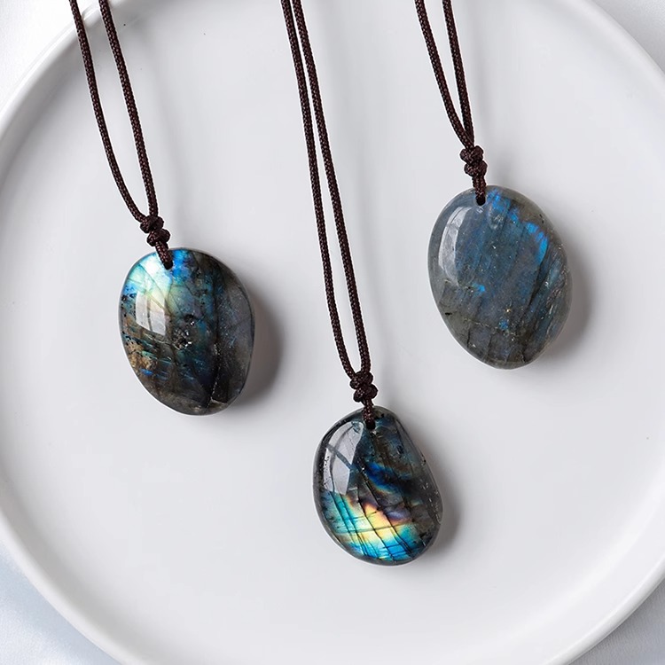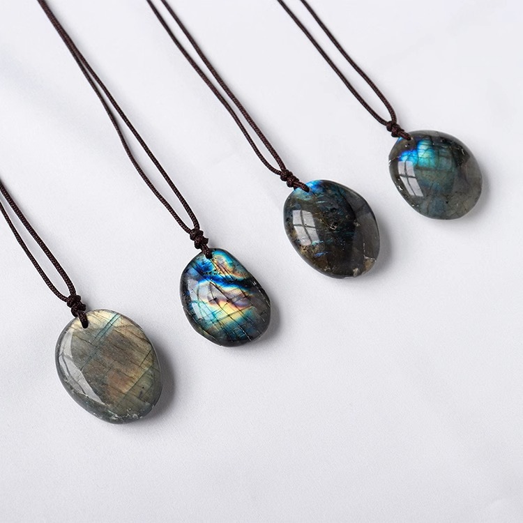 Liontin bulat labradorite batu mentah kristal alami liontin gaya etnik perhiasan kalung demagnetisasi pria dan wanita grosir
