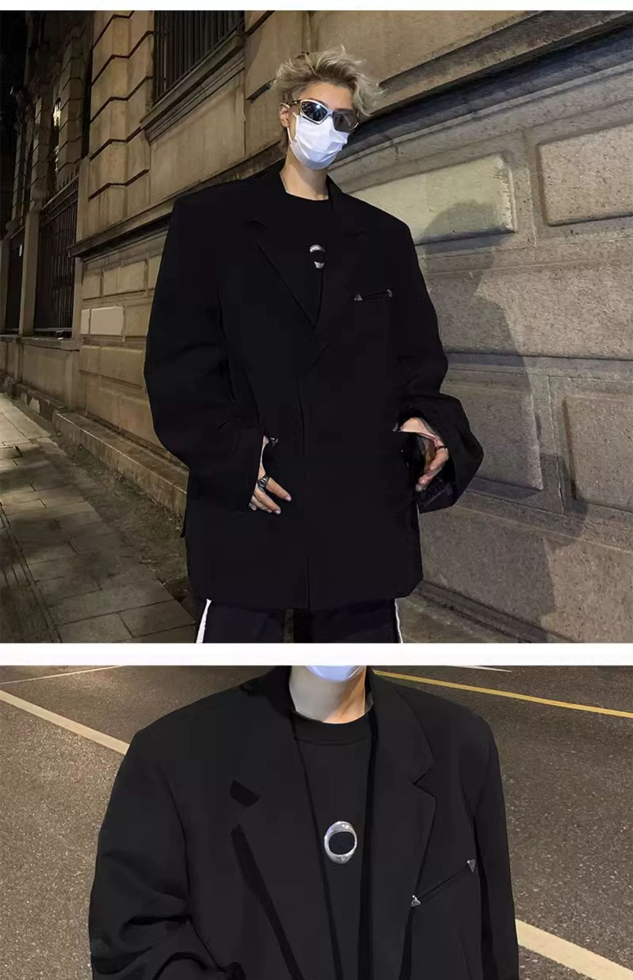Setelan bantalan bahu untuk pria, setelan jas kasual musim semi musim gugur, mantel longgar, desain kelas tinggi trendi, gaya jalanan tinggi Amerika untuk pria