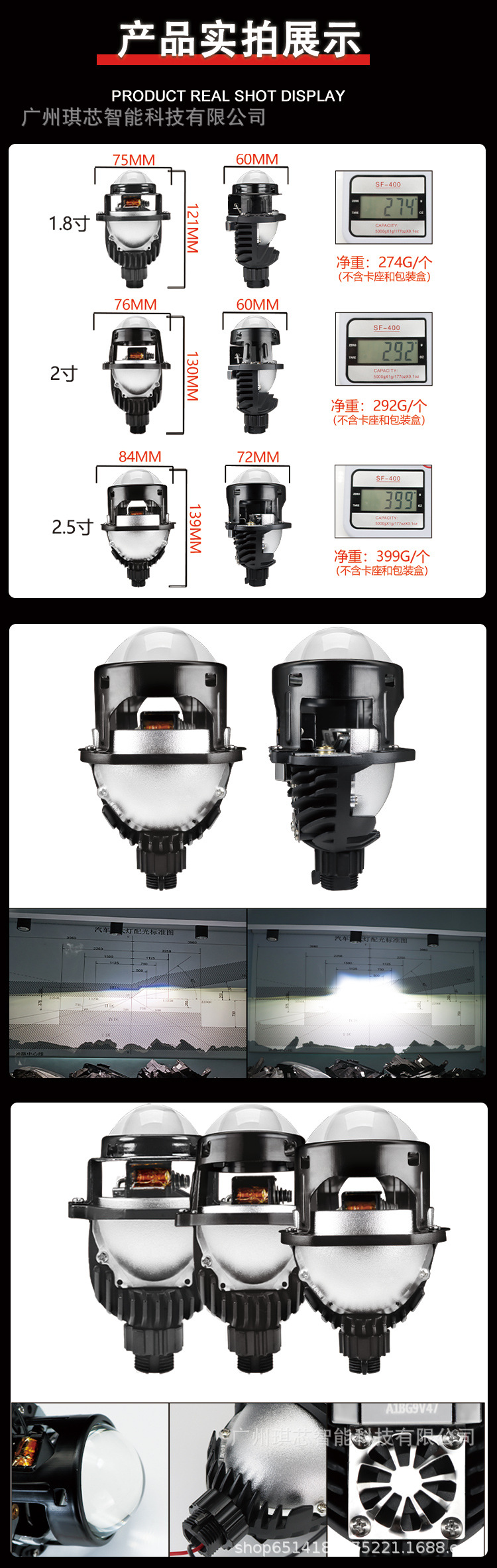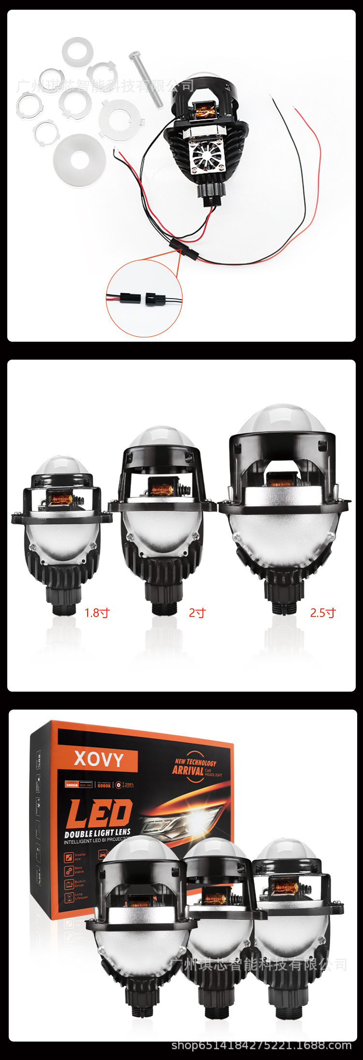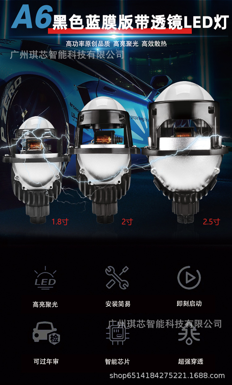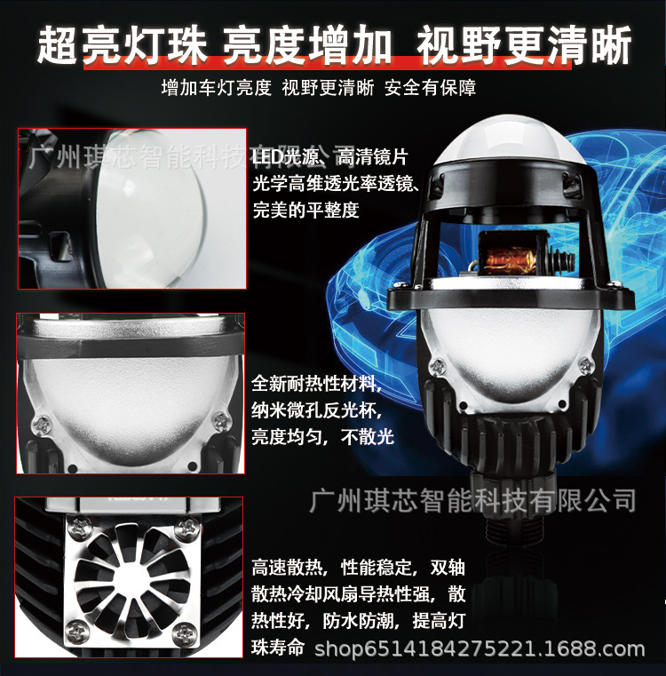 Lampu sorot mobil universal LED Dua lensa cahaya 1.8/2/2, 5 inci HD super terang cahaya modifikasi laser