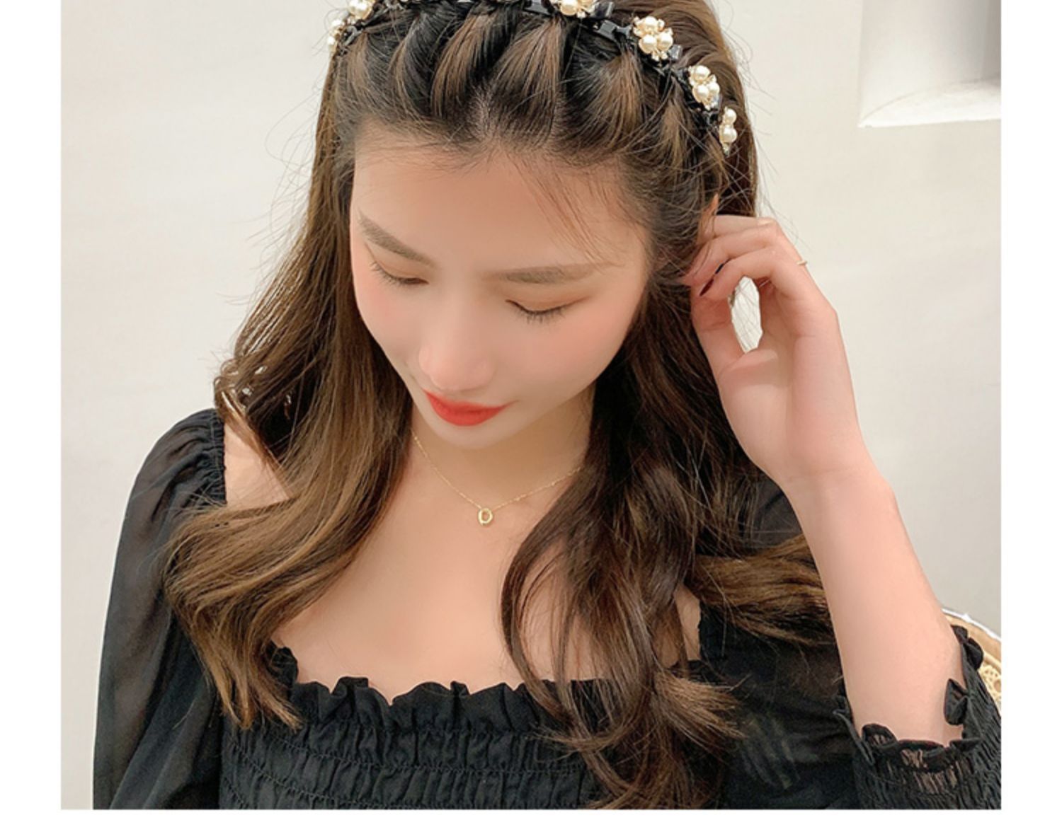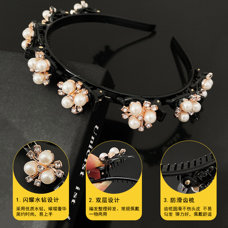 Bando mutiara merah jaring baru Bando rajut bando klip rambut poni rusak dewa malas kepang jepit rambut menekan ikat kepala cuci wajah