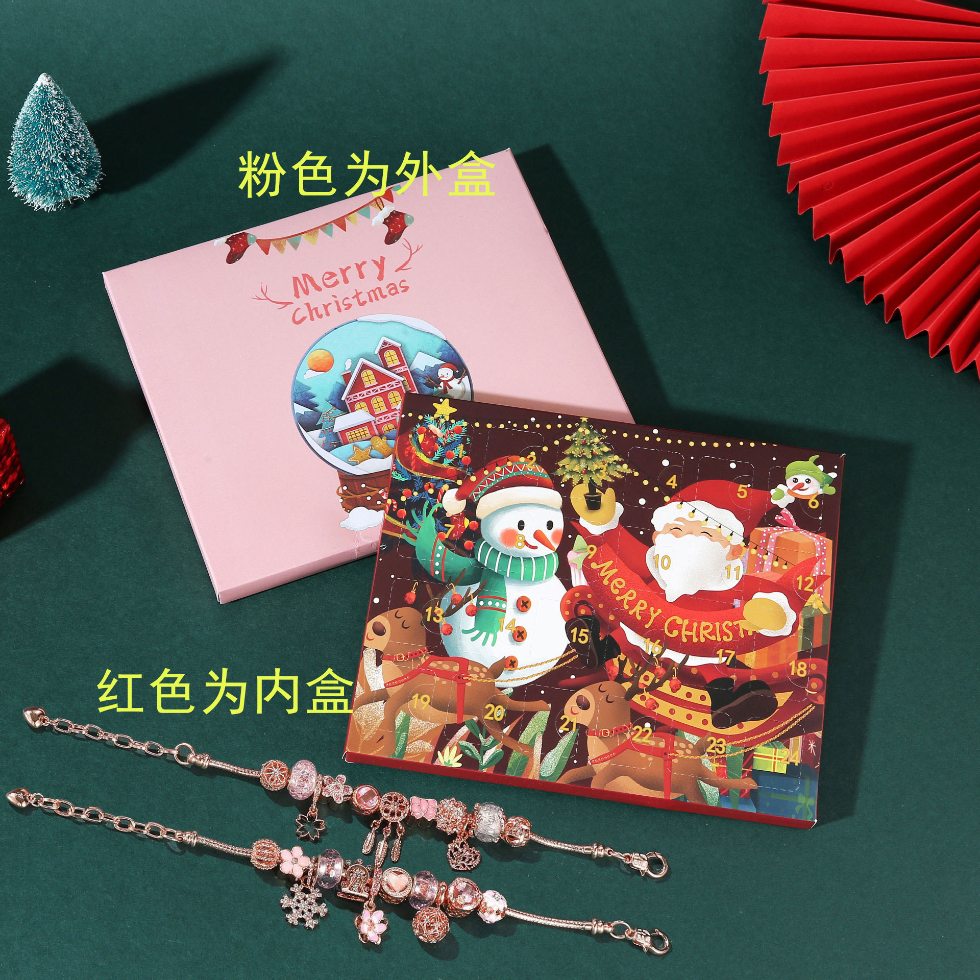 Natal Gelang DIY Gelang Manik-Manik Kotak Buta Mawar Perhiasan Emas Hadiah Kalender Advent Tahun Baru Hadiah Hari Valentine
