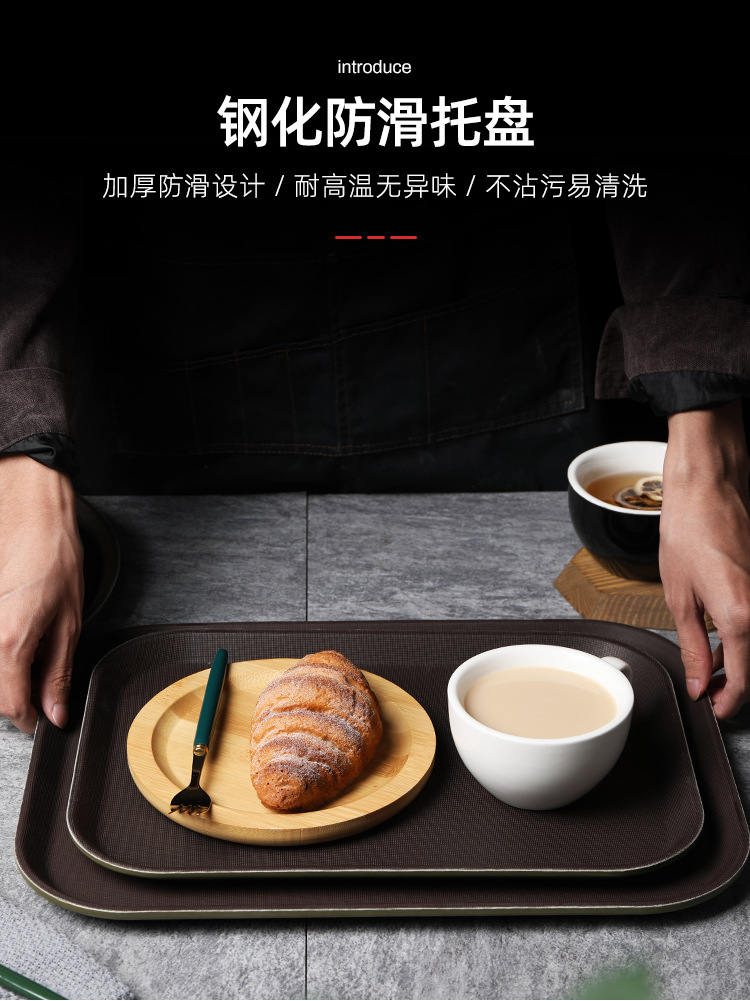 Nampan plastik anti selip, nampan plastik anti selip, persegi panjang, teh bulat, perlengkapan Hotel nasi KTV, peralatan makan untuk penggunaan komersial