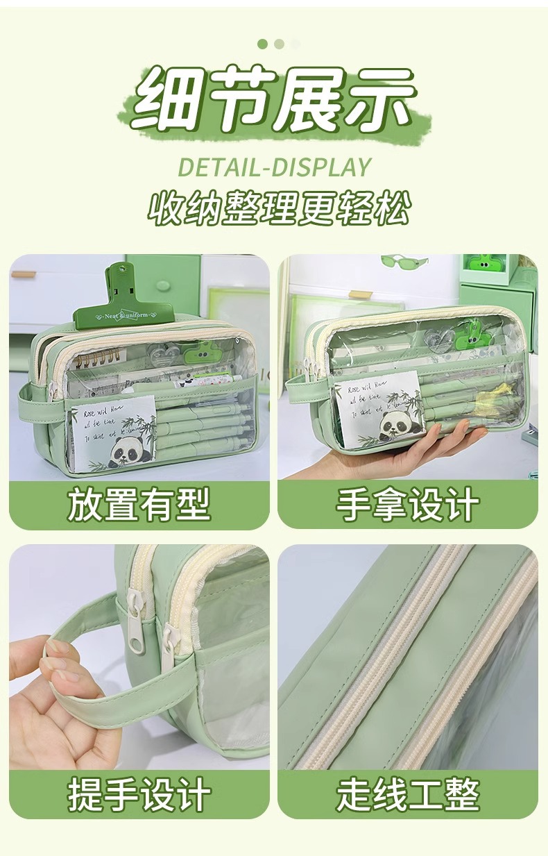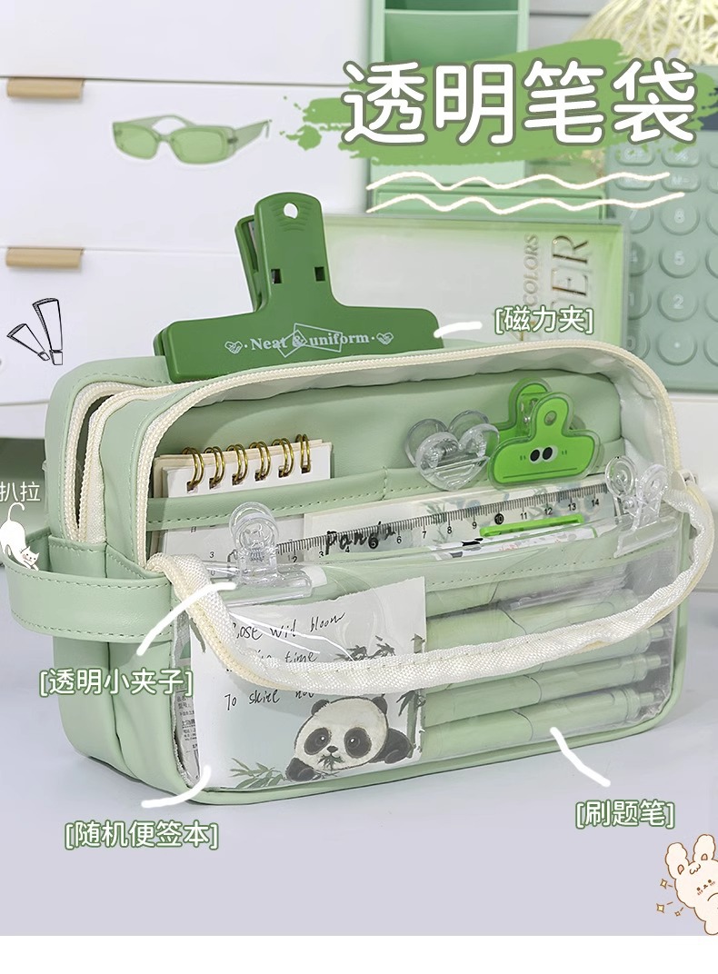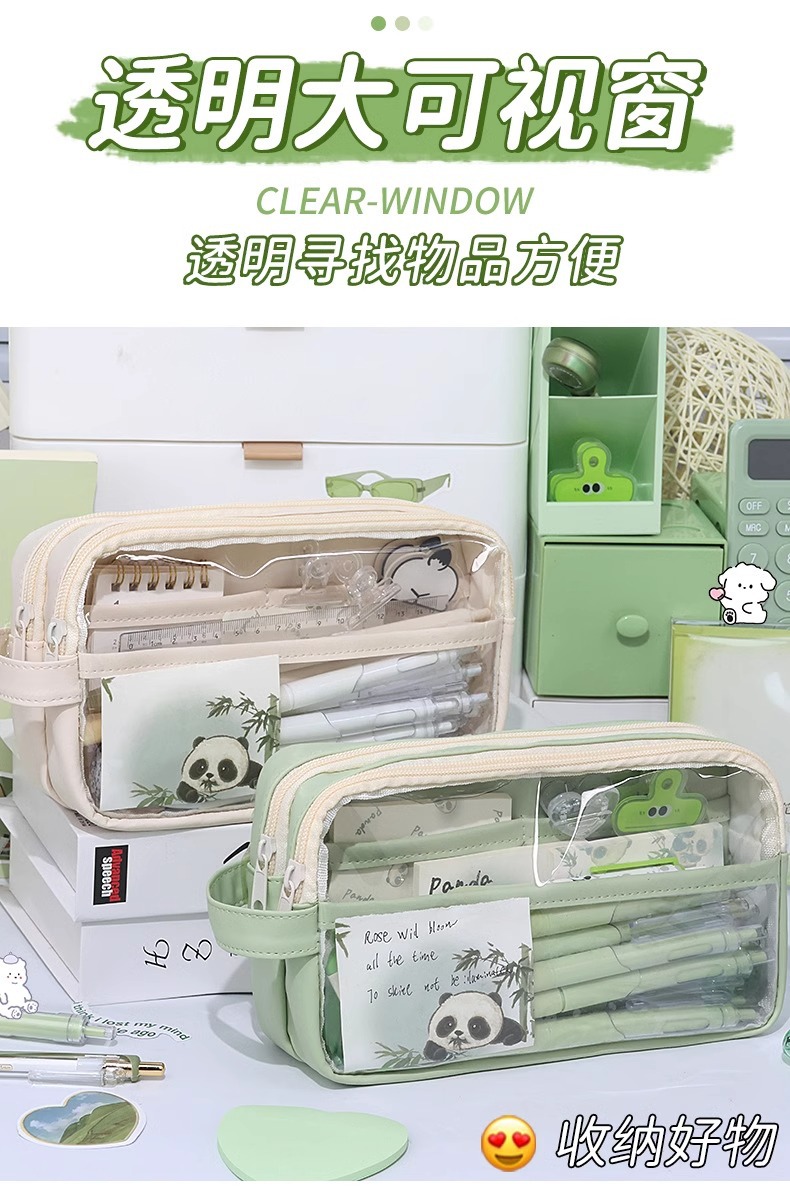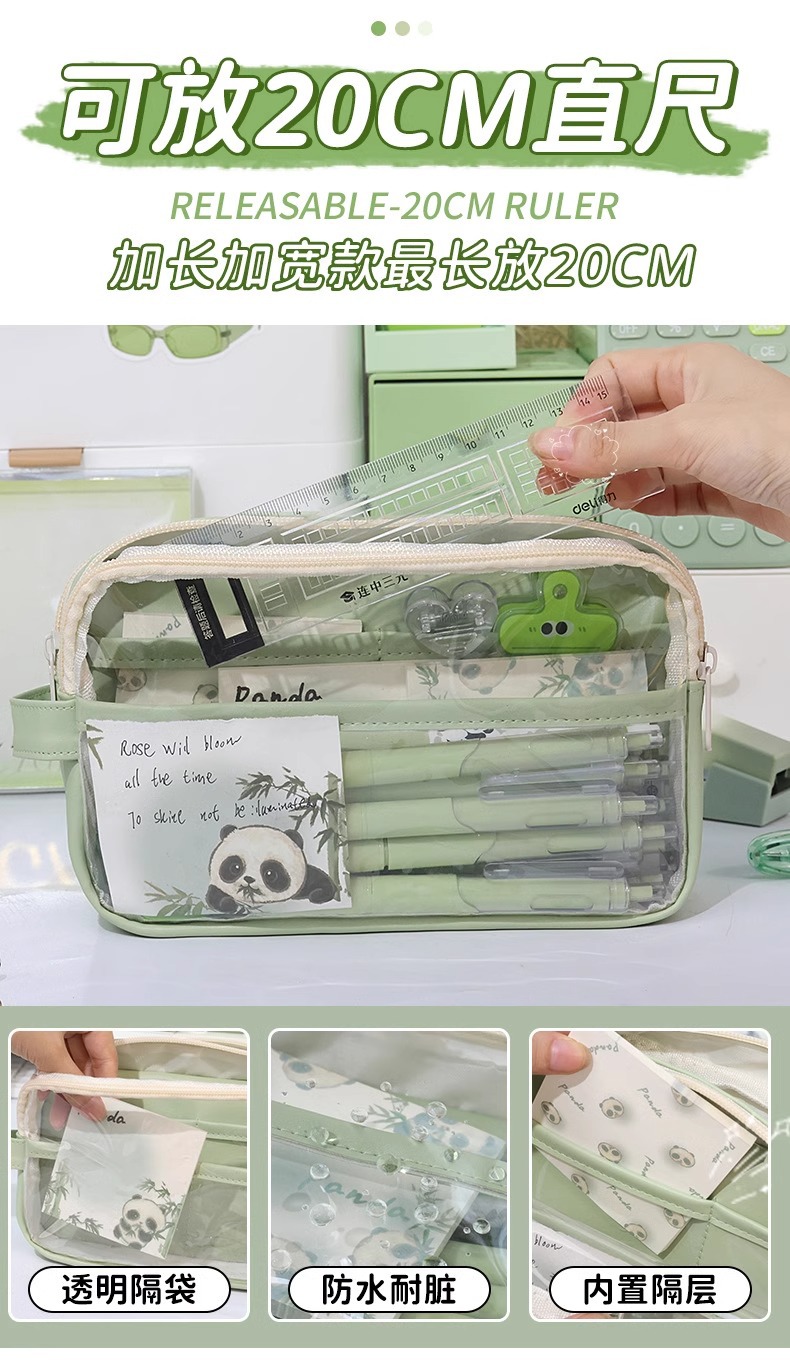 Tas alat tulis baru kotak pensil panda kotak pensil transparan pelajar sekolah dasar kapasitas besar kotak alat tulis 2024 anak laki-laki perempuan