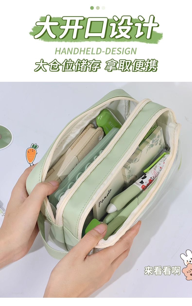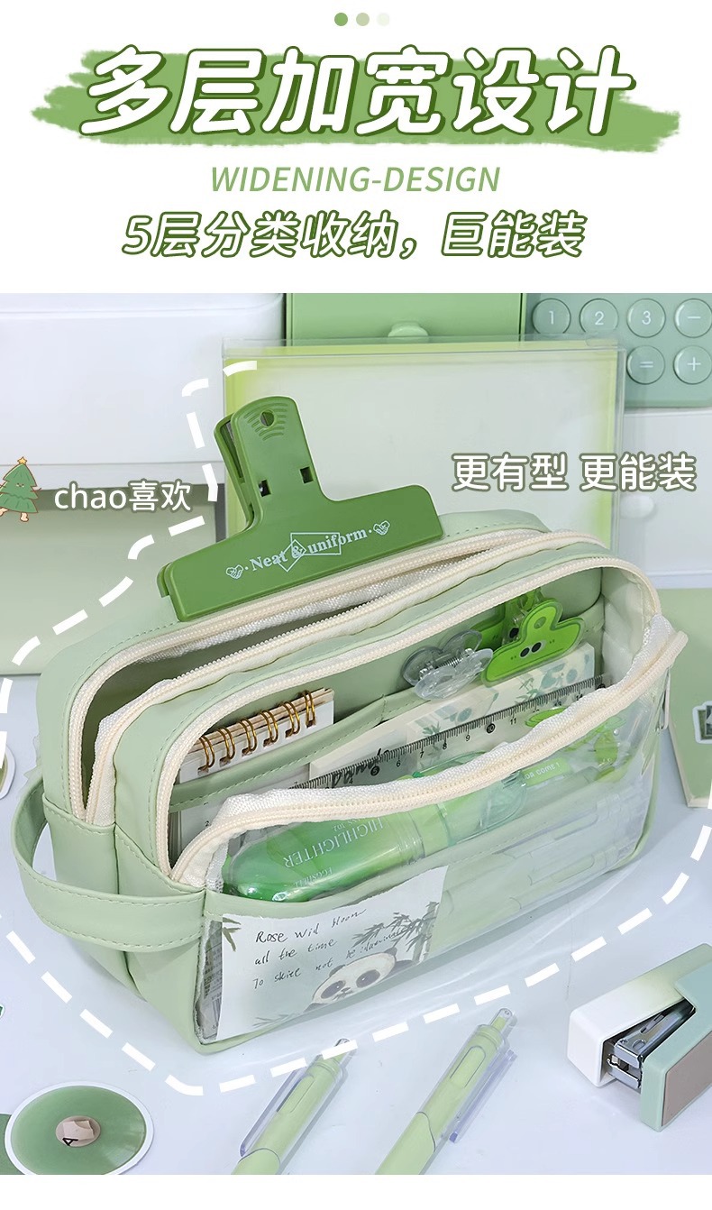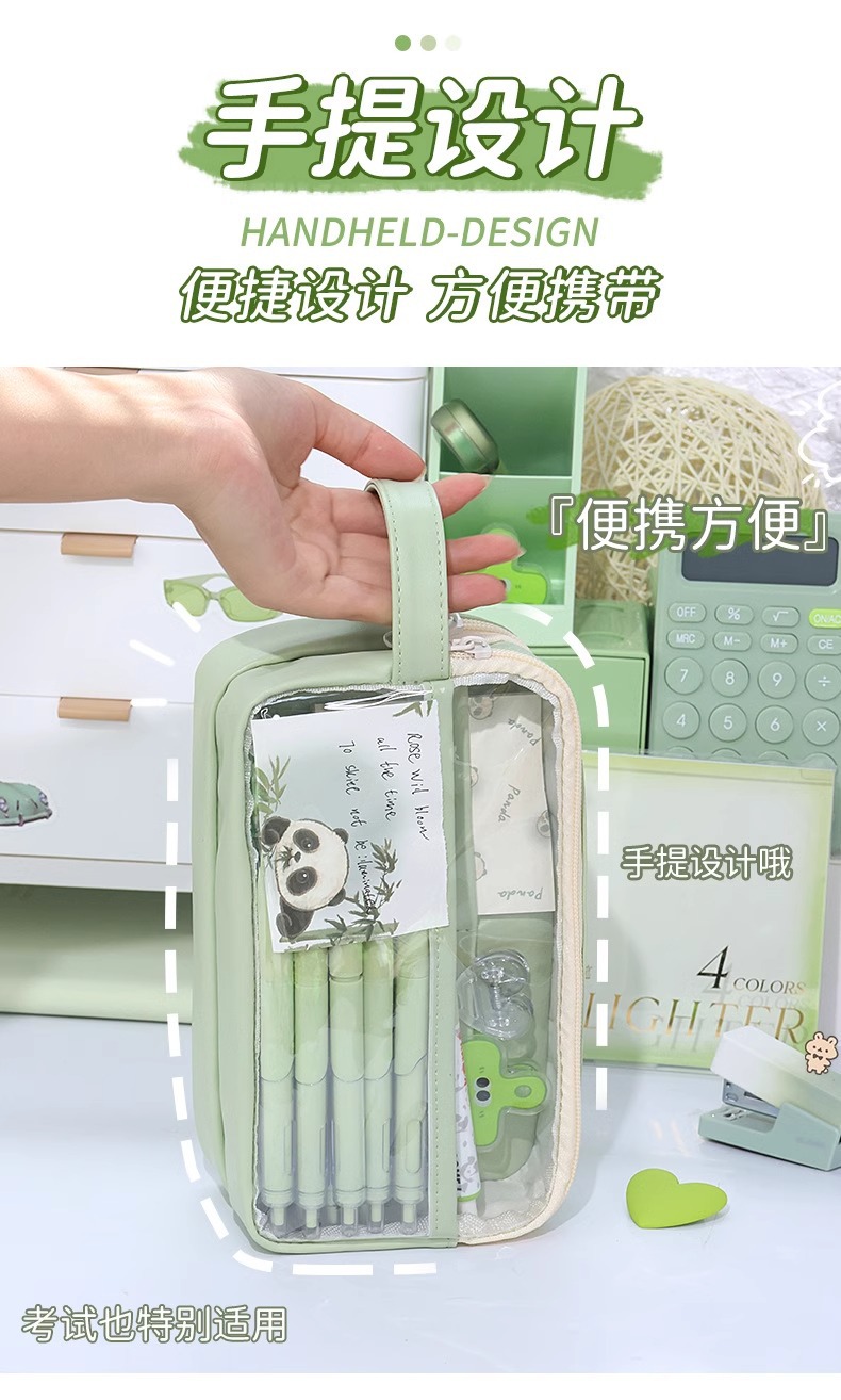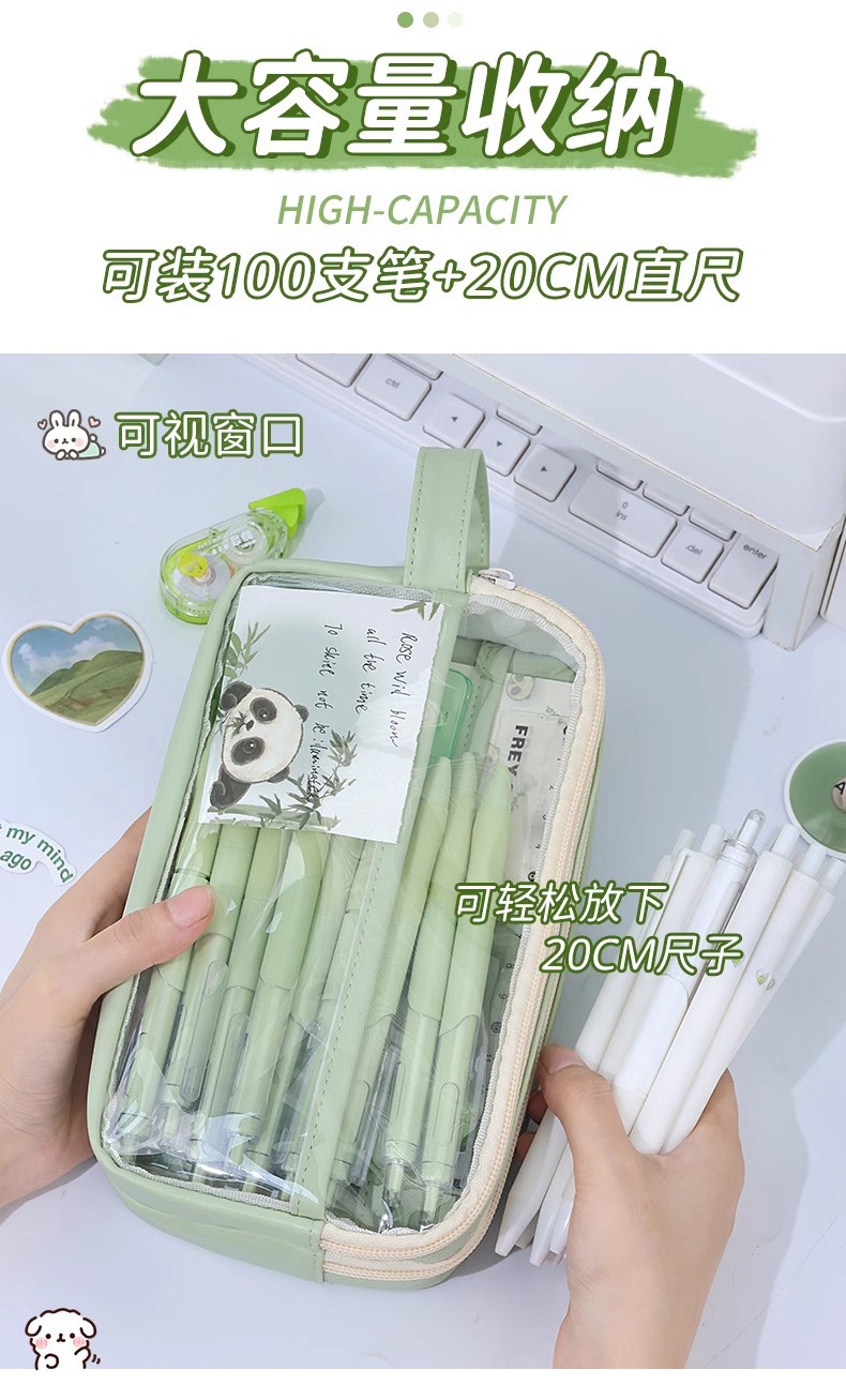 Tas alat tulis baru kotak pensil panda kotak pensil transparan pelajar sekolah dasar kapasitas besar kotak alat tulis 2024 anak laki-laki perempuan